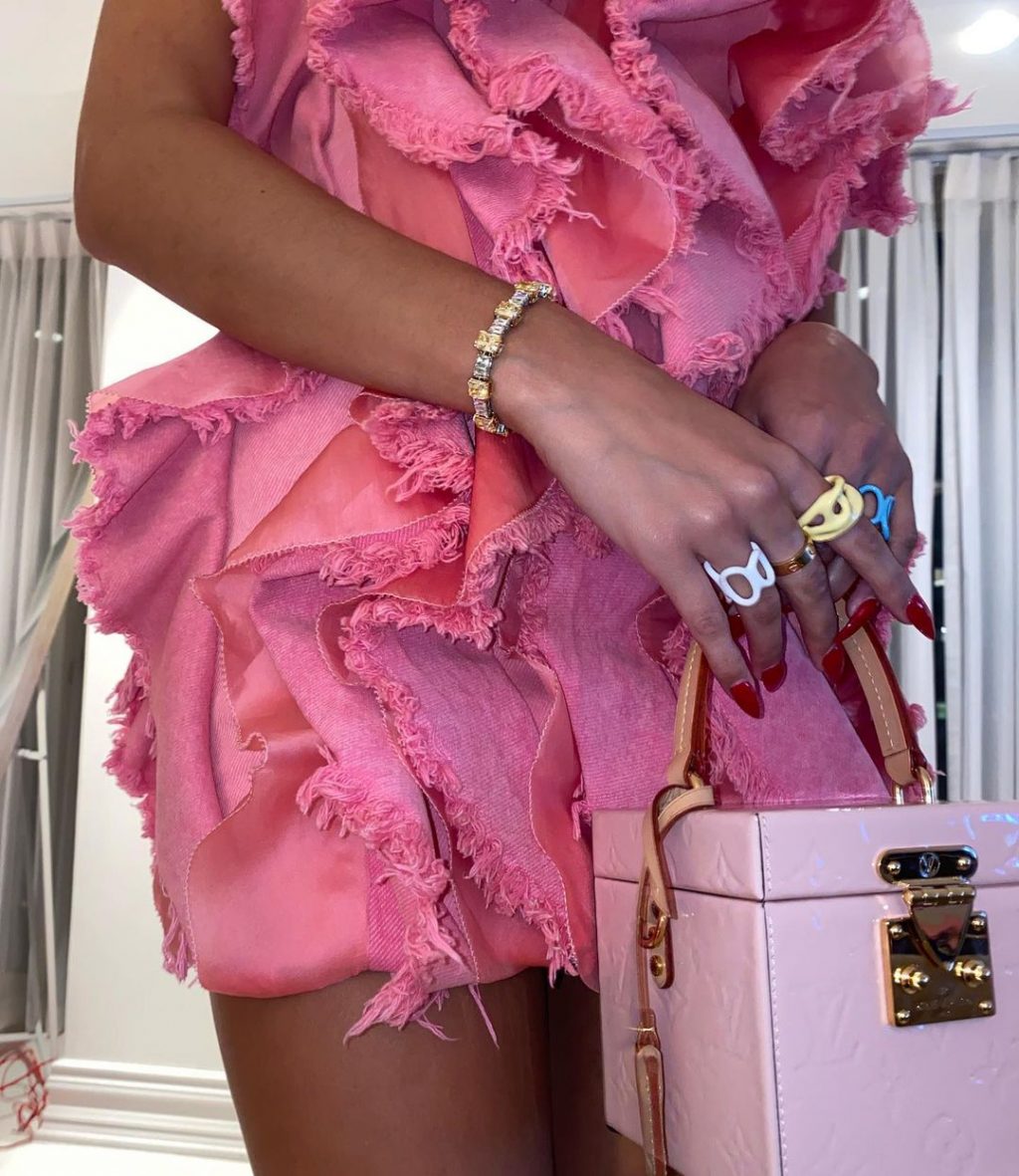 La cantante Pia Mia Perez muestra sus piernas delgadas, vistiendo un vestido de “piña rosa”.