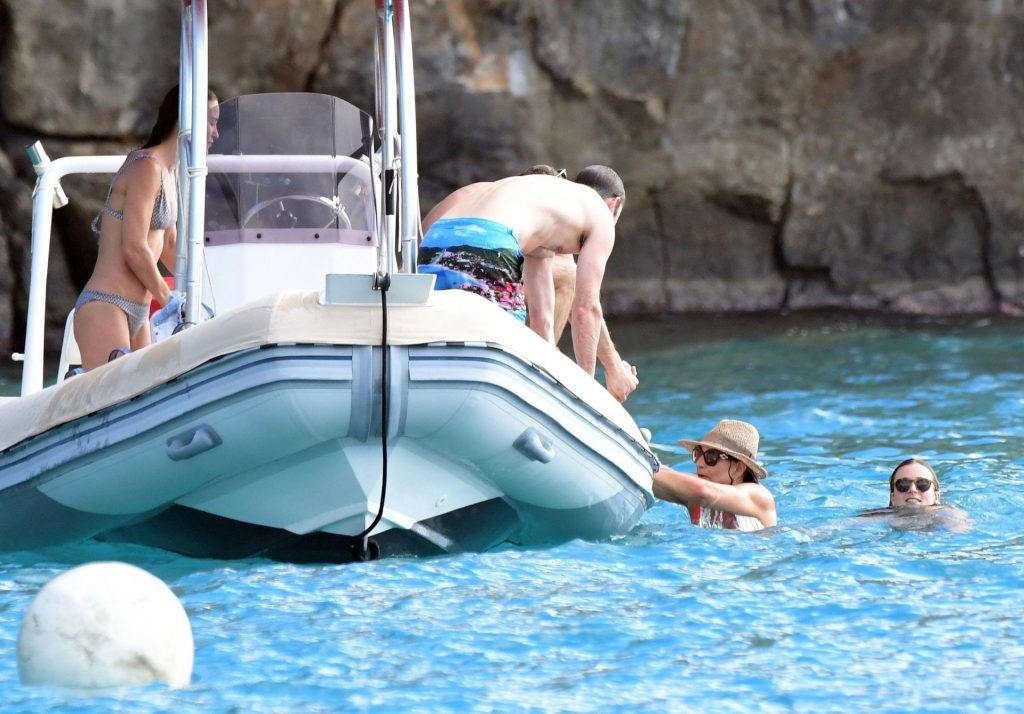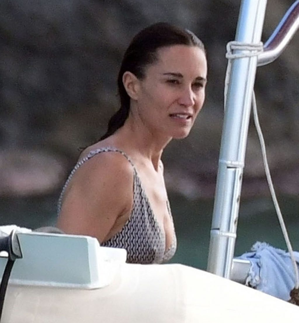 La socialité Pippa Middleton, su hermano James Middleton y su esposo James Matthews, disfrutan de un paseo en barco a bordo de una pequeña embarcación en St. Barths, 30/12/2019.