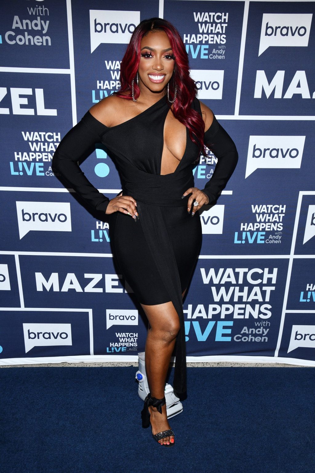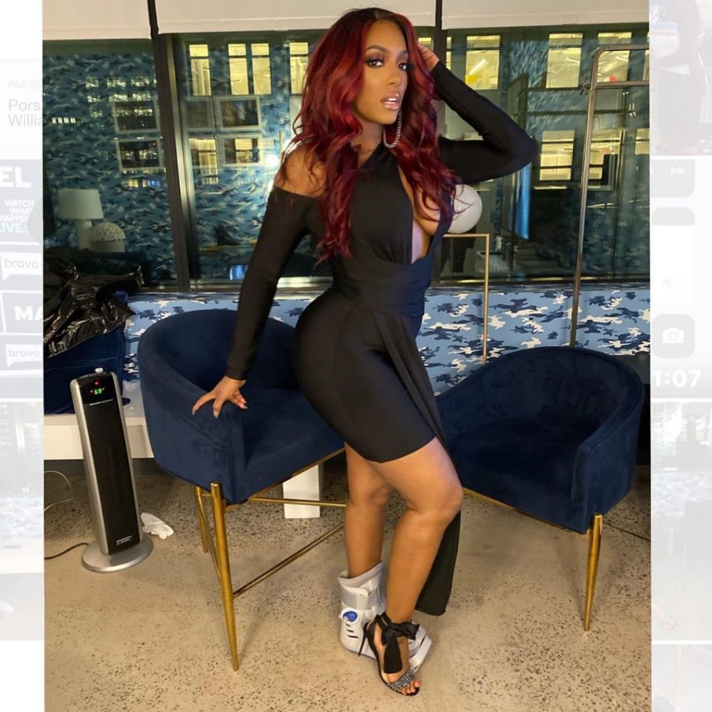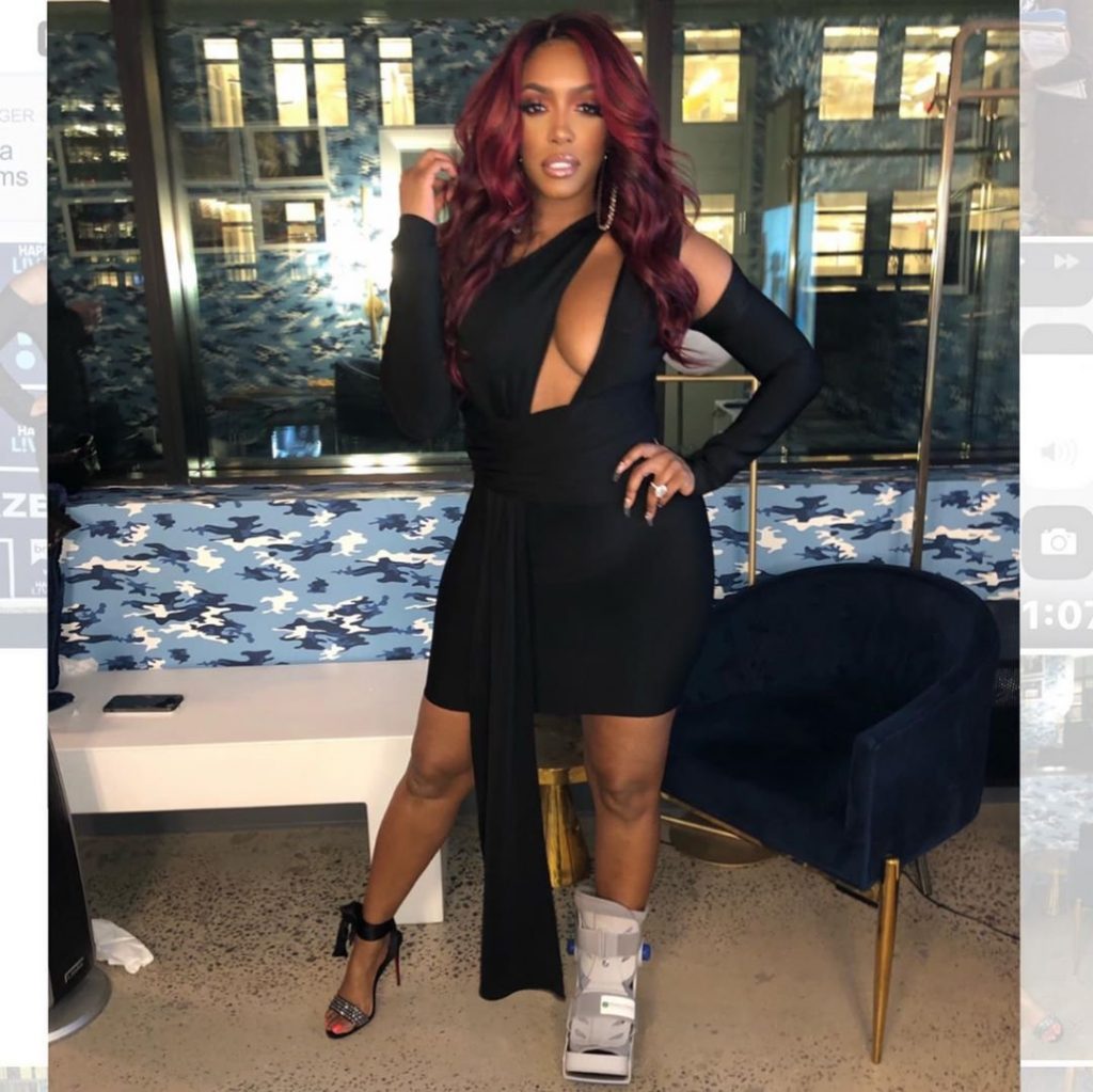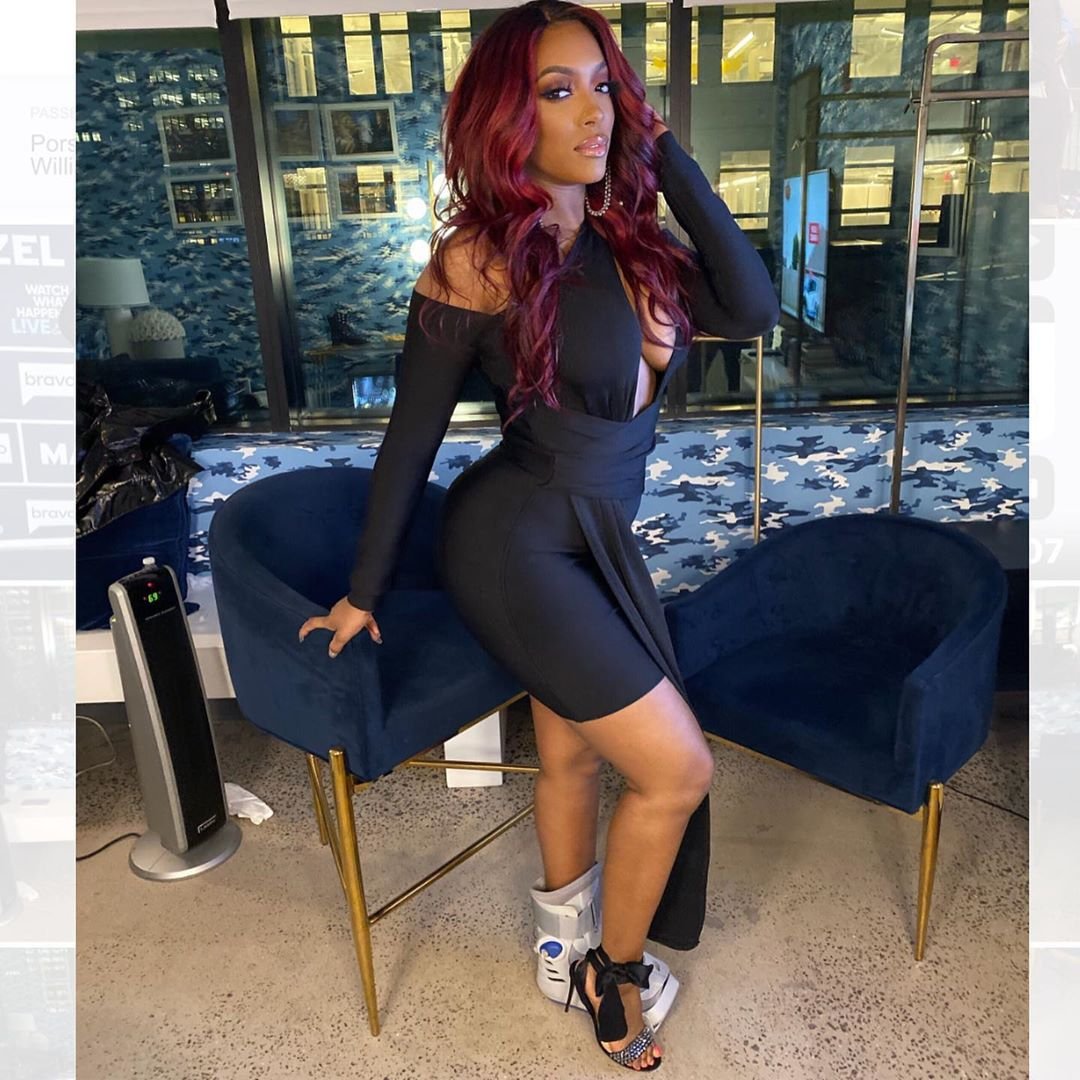 Busty personalidad de la televisión estadounidense, modelo y actriz Porsha Williams (38) fue fotografiada con una pierna lesionada en Watch What Happens Live With Andy Cohen – Temporada 16 en Nueva York, 01/12/2019.