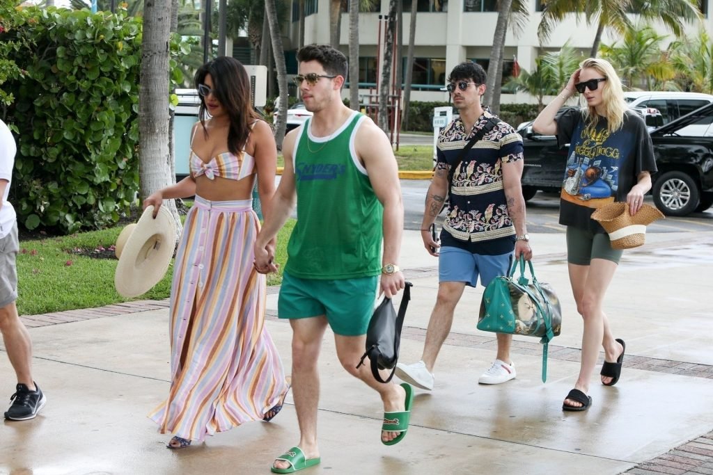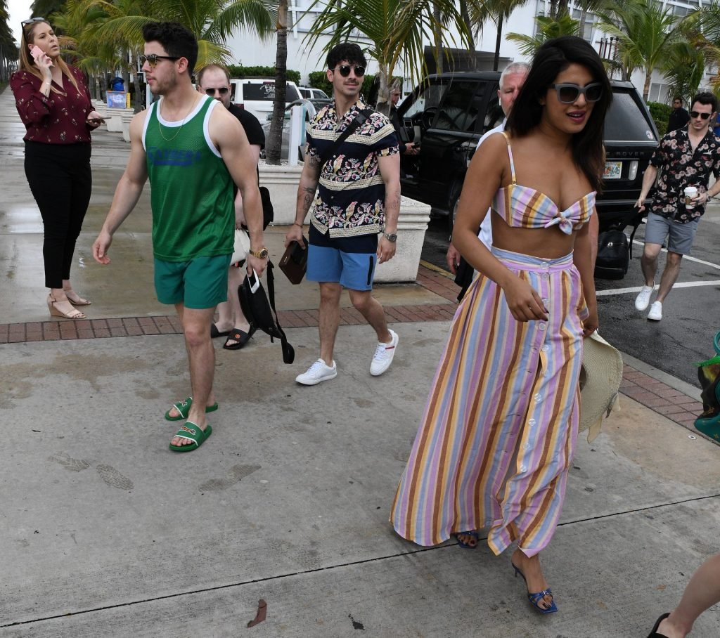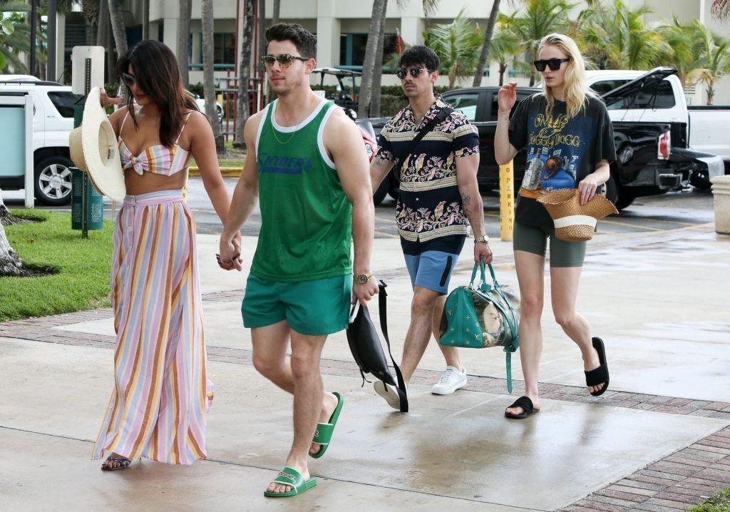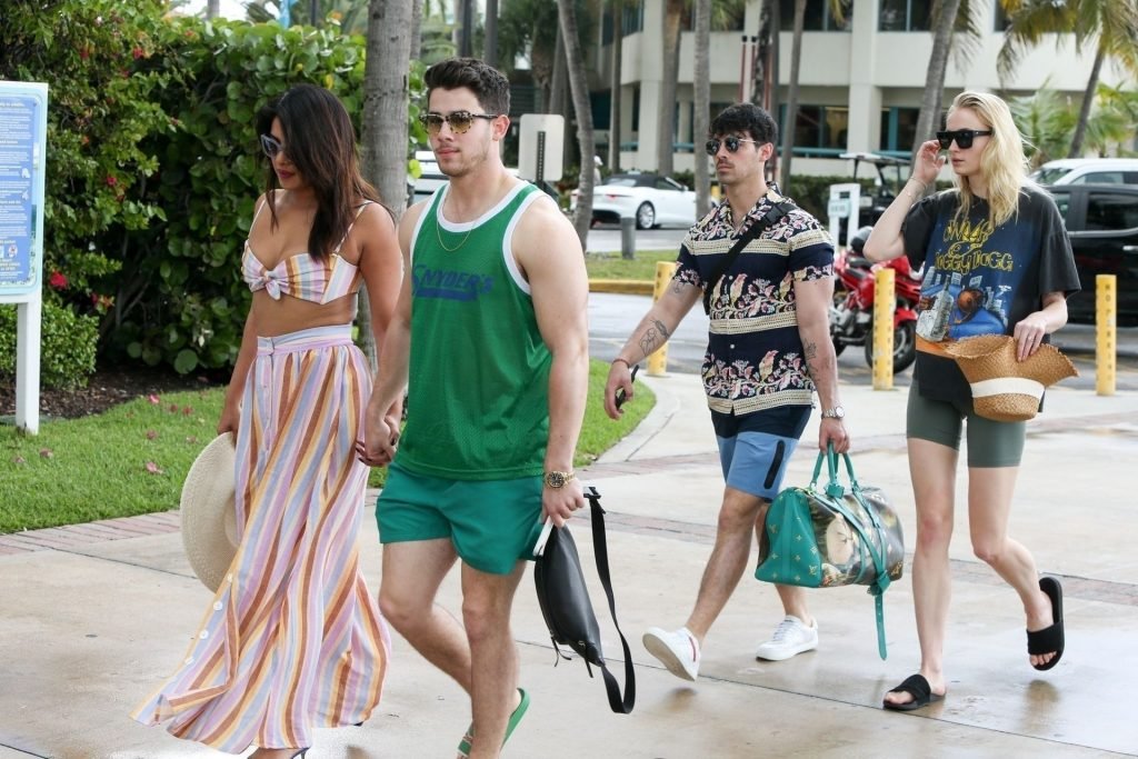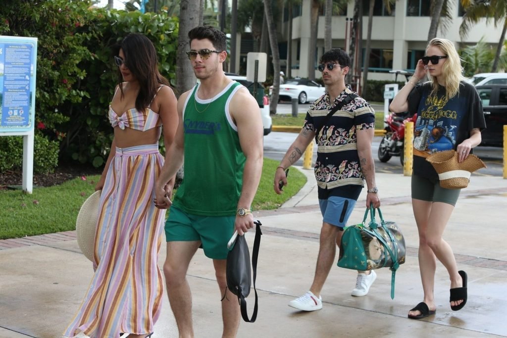 Nick y Joe Jonas dan un paseo en bote con sus esposas Priyanka Chopra y Sophie Turner. El grupo se ve casual mientras se preparan para su divertido día en el agua. También se unen Kevin Jonas y otros familiares y amigos, 25/03/2019.