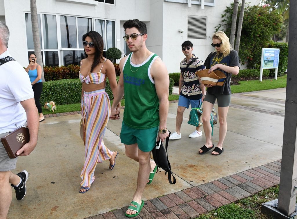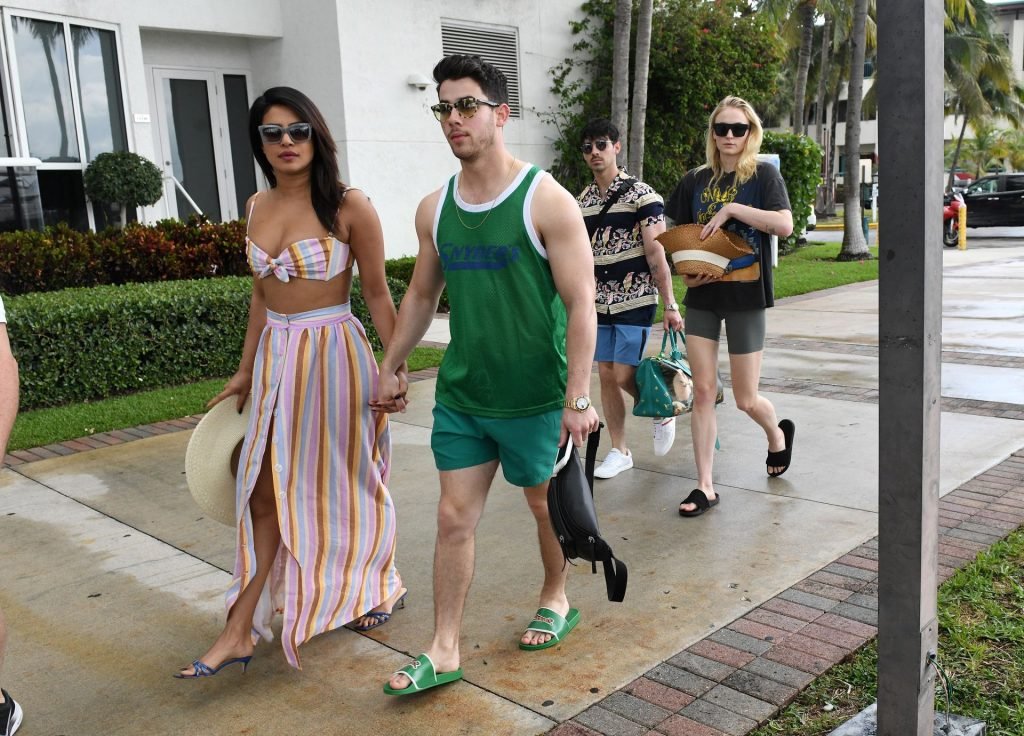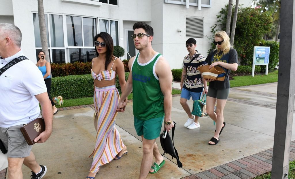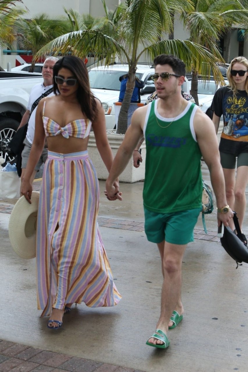 Nick y Joe Jonas dan un paseo en bote con sus esposas Priyanka Chopra y Sophie Turner. El grupo se ve casual mientras se preparan para su divertido día en el agua. También se unen Kevin Jonas y otros familiares y amigos, 25/03/2019.