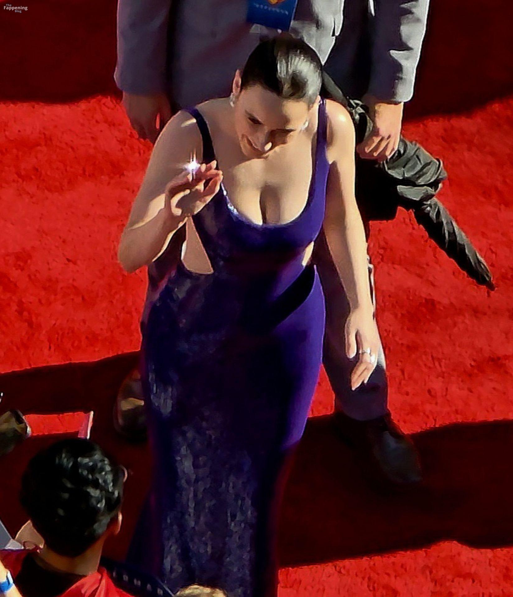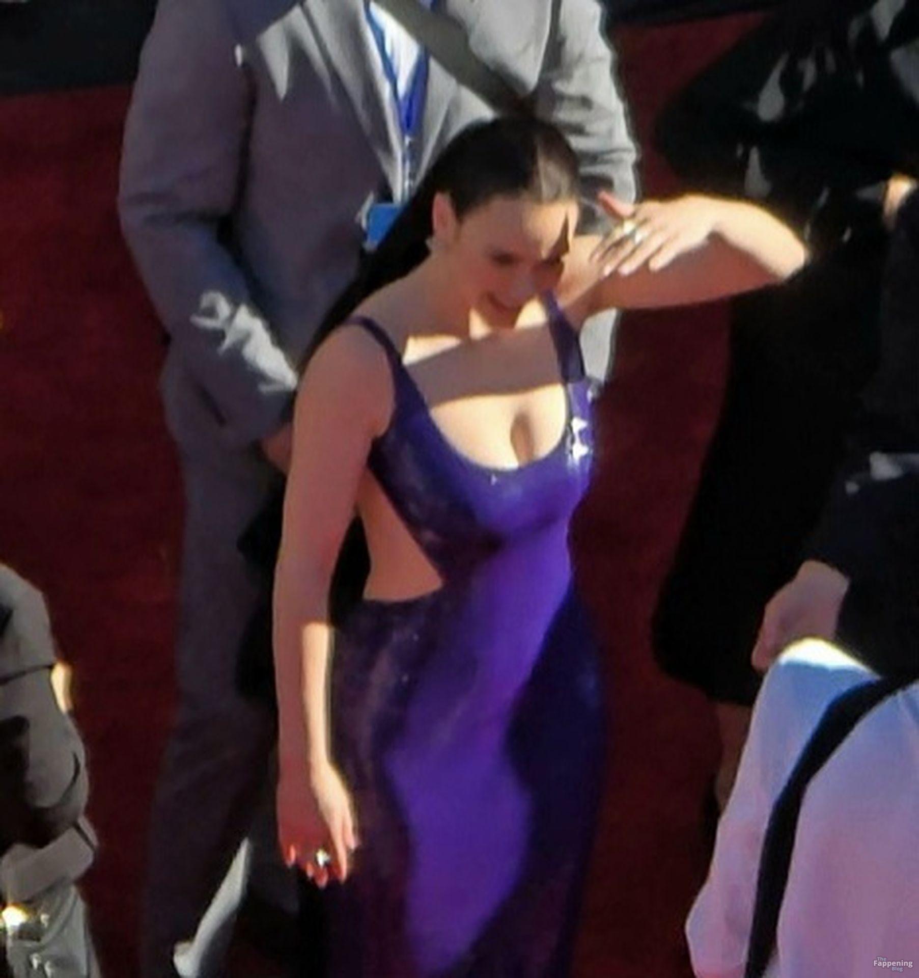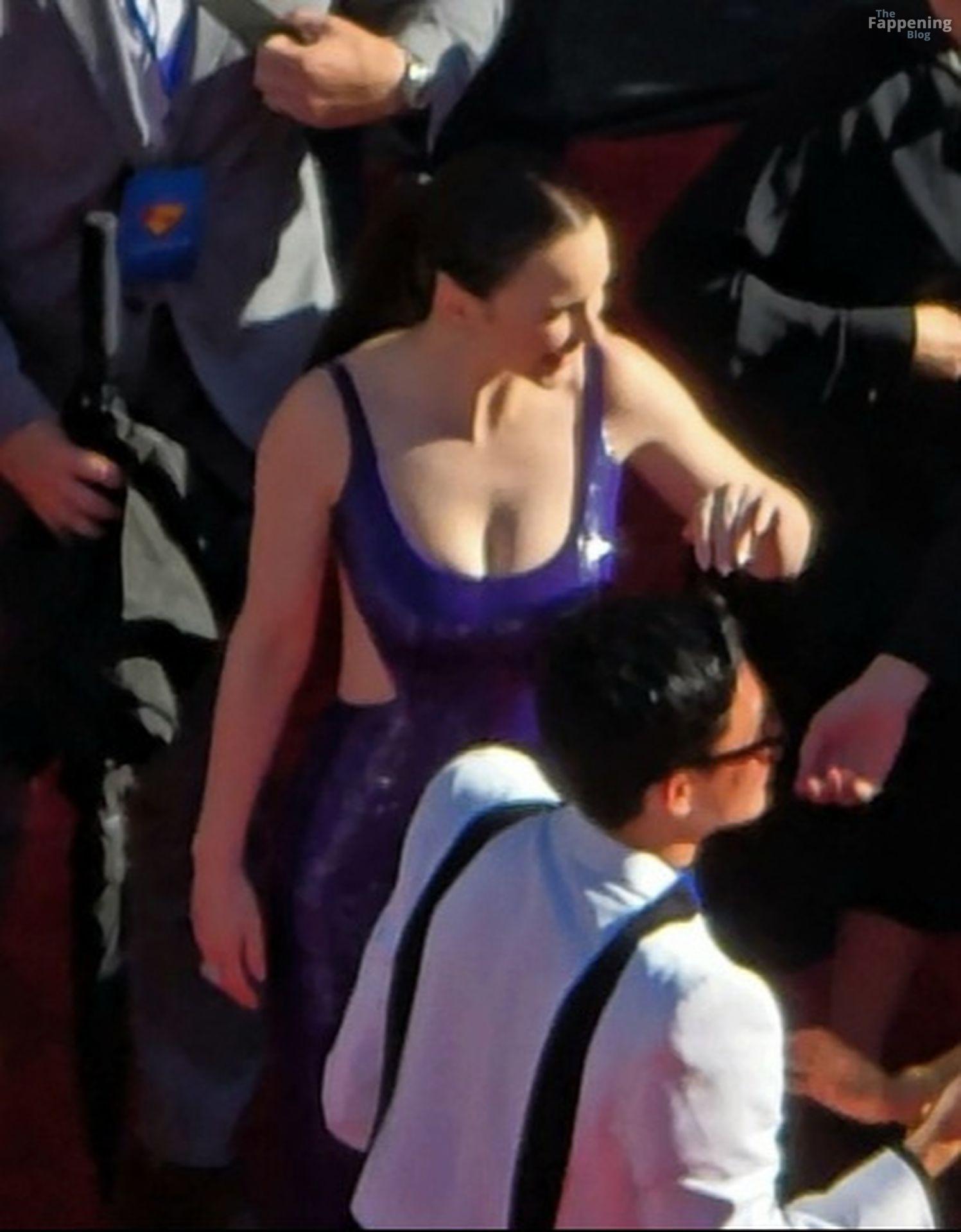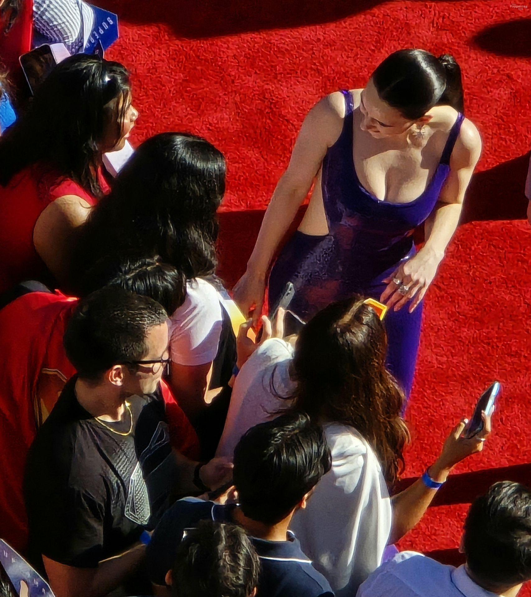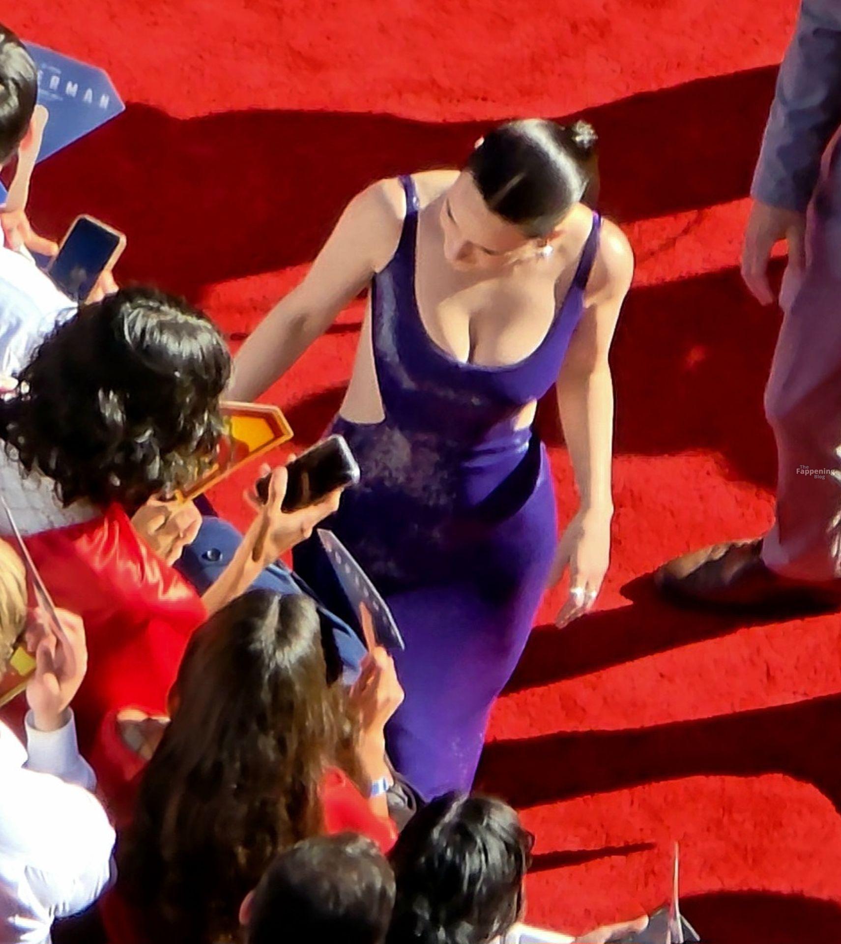 Rachel Brosnahan fue fotografiada en el estreno de “Superman” en el Teatro Chino TLC en Los Ángeles con ese audaz vestido púrpura ajustado.