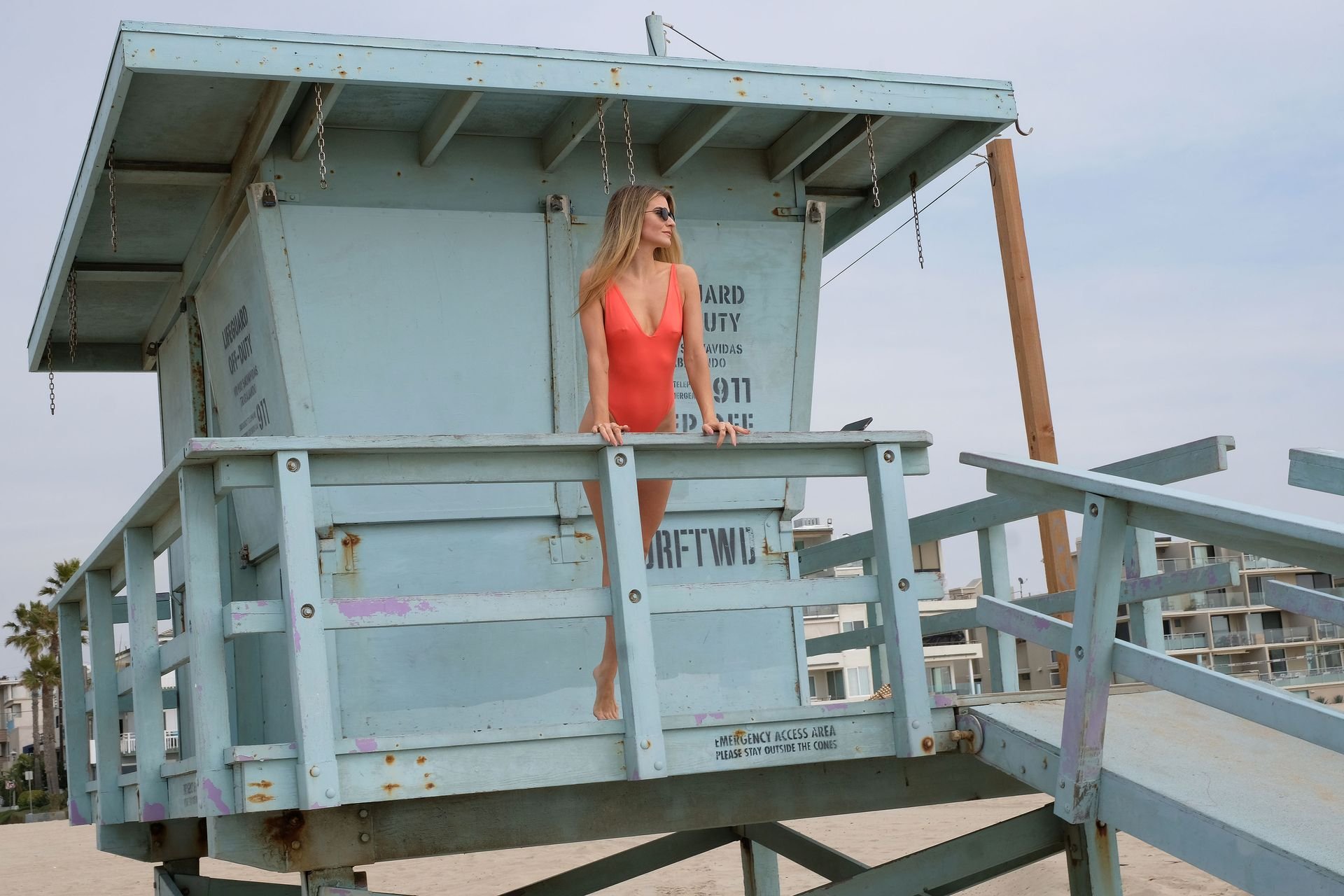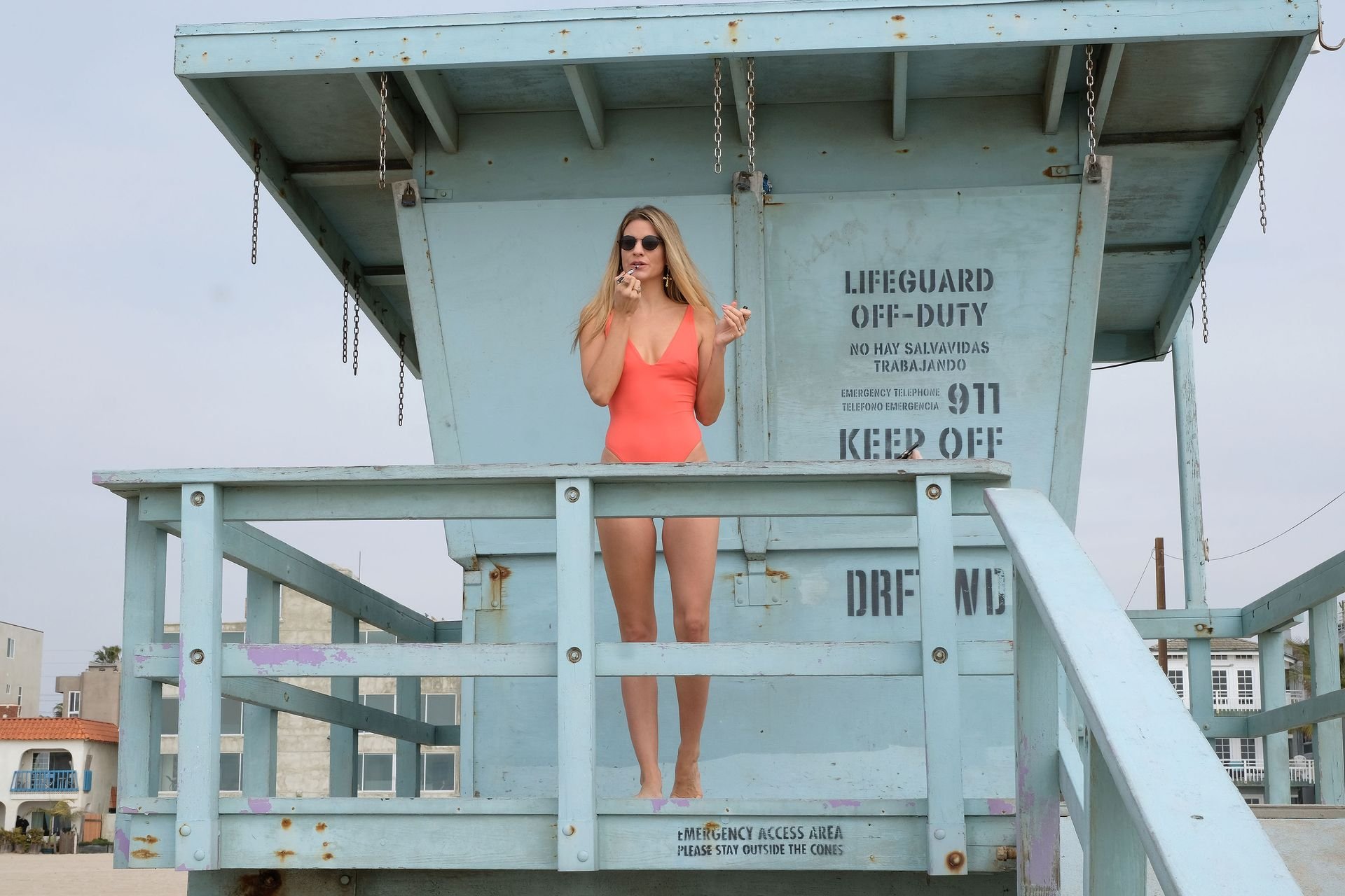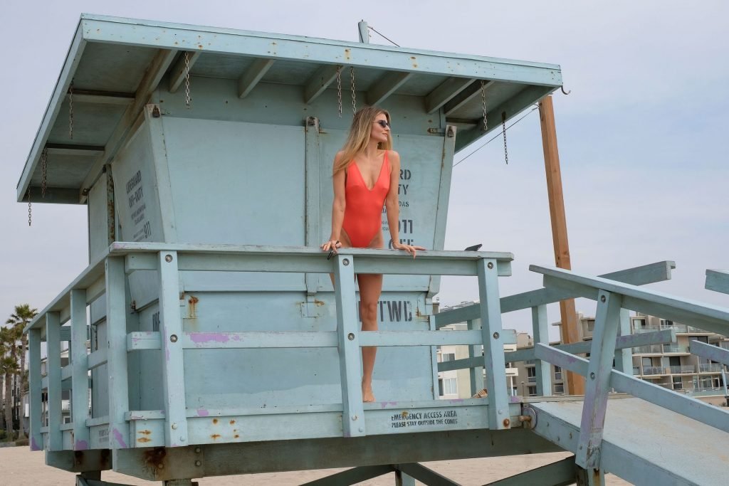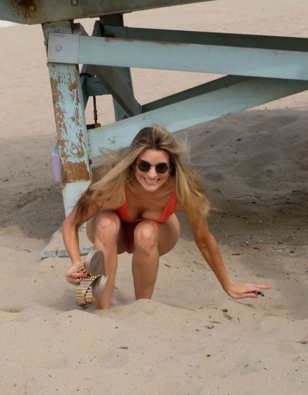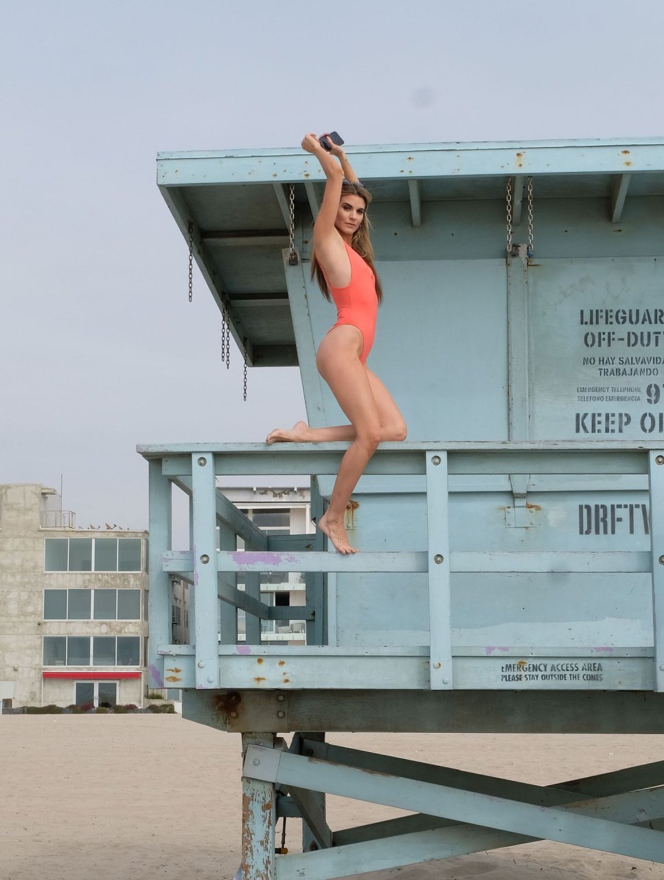 Rachel McCord fue vista disfrutando de la mañana en la playa de Venice, 20/07/2019. La influencer de 29 años mostró su cuerpo delgado con un traje de baño rojo de una pieza.
