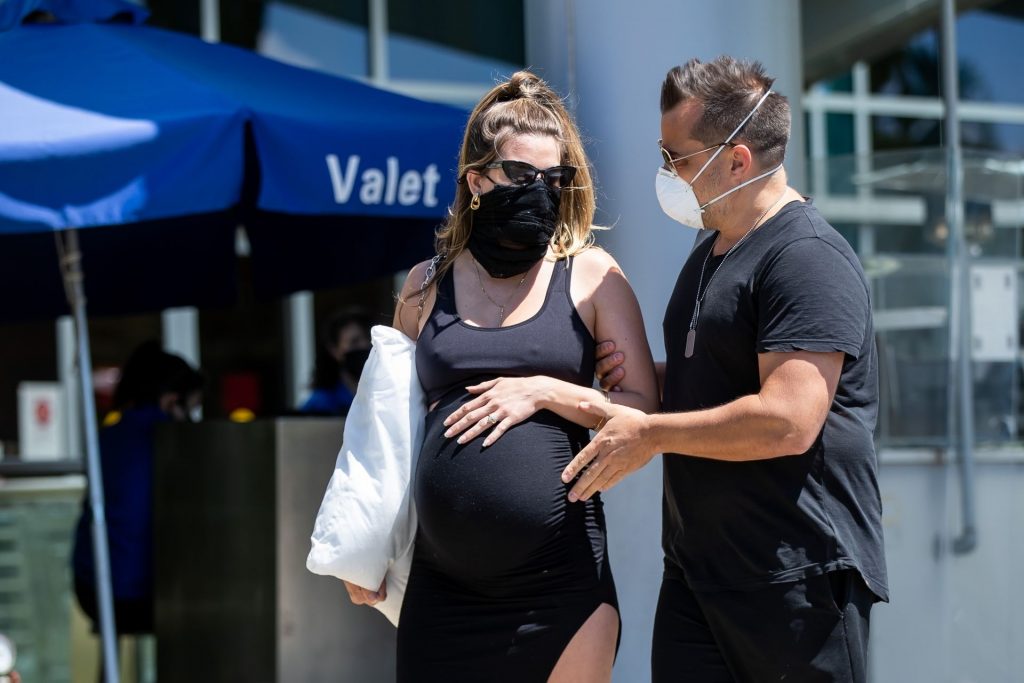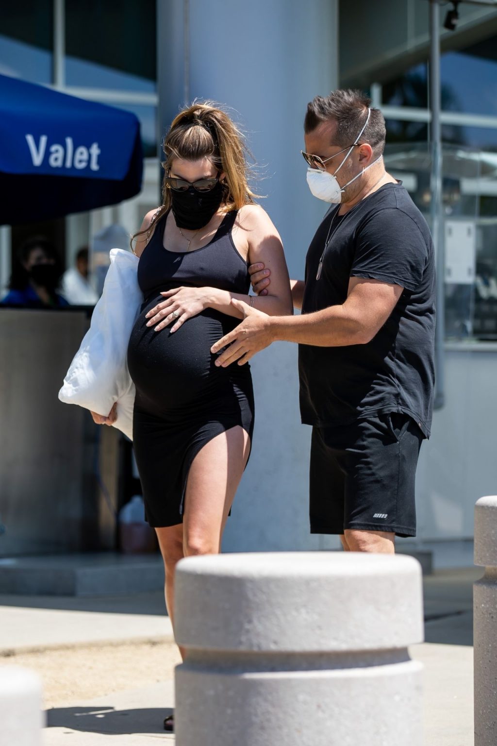 Rachel McCord embarazada fue vista en Providence St. John’s en Santa Mónica para una visita al médico usando una mascarilla protectora durante la pandemia de COVID-19, 13/05/2020.