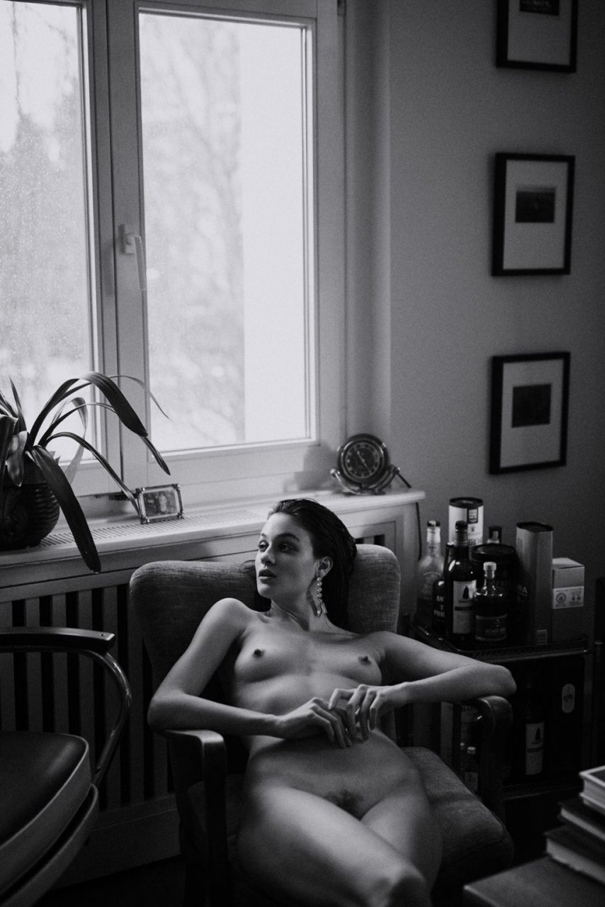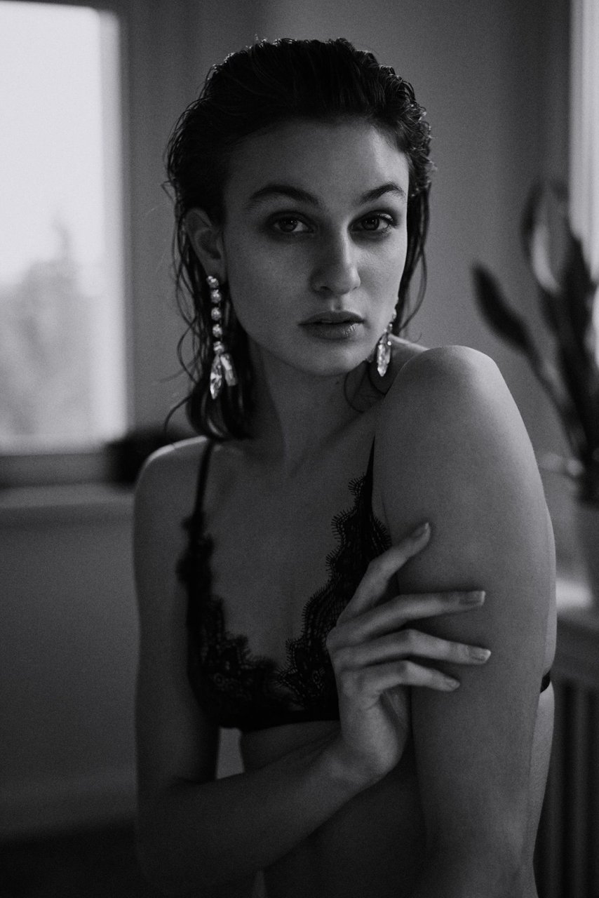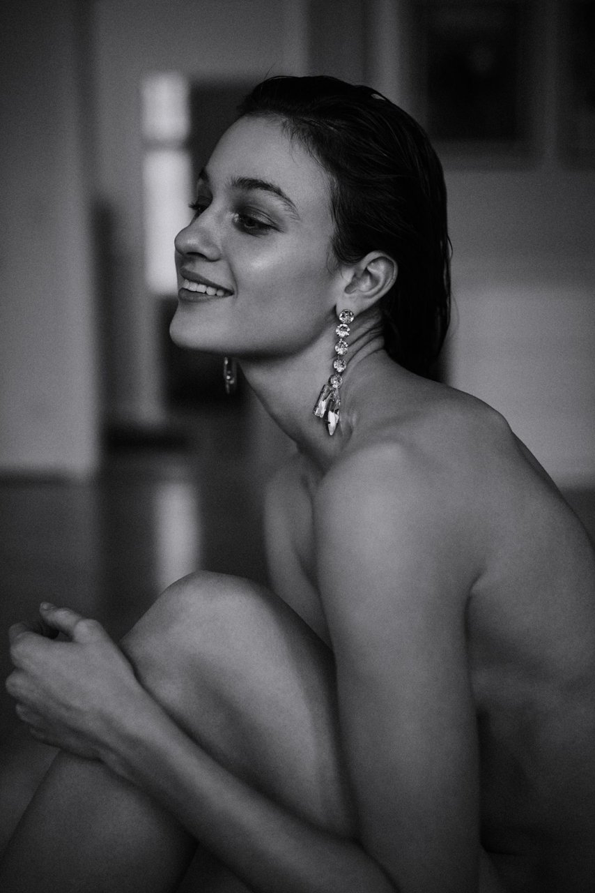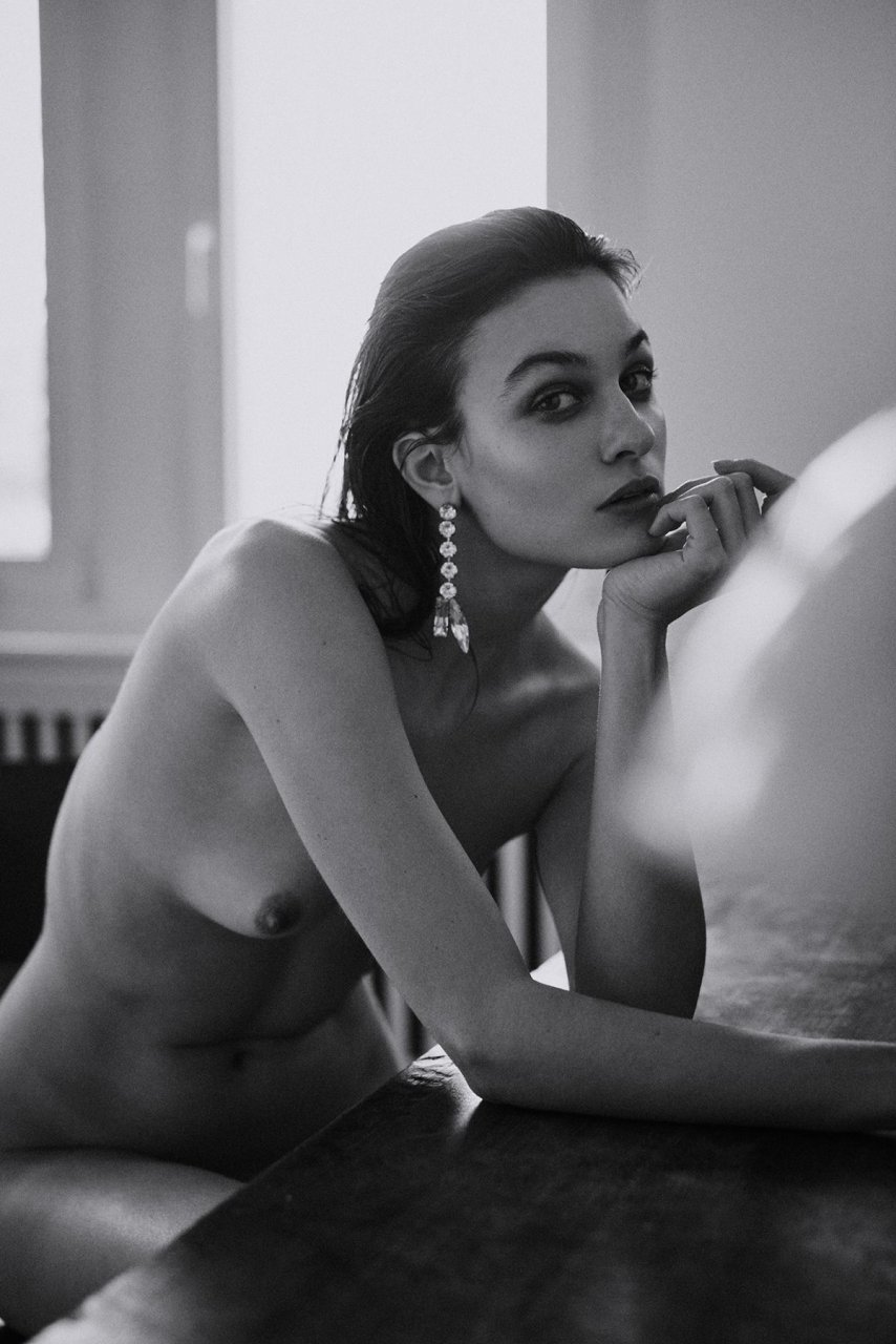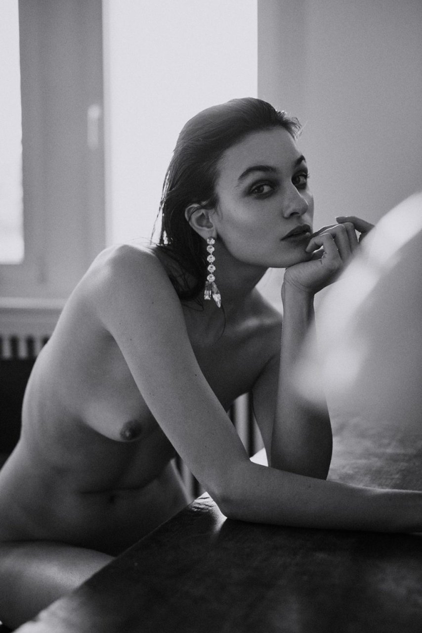 Joven y deslumbrante modelo Rachel Samstag mostró su amor por los diamantes y la desnudez en una nueva sesión de fotos en blanco y negro de Maximilian Motel (2019).
