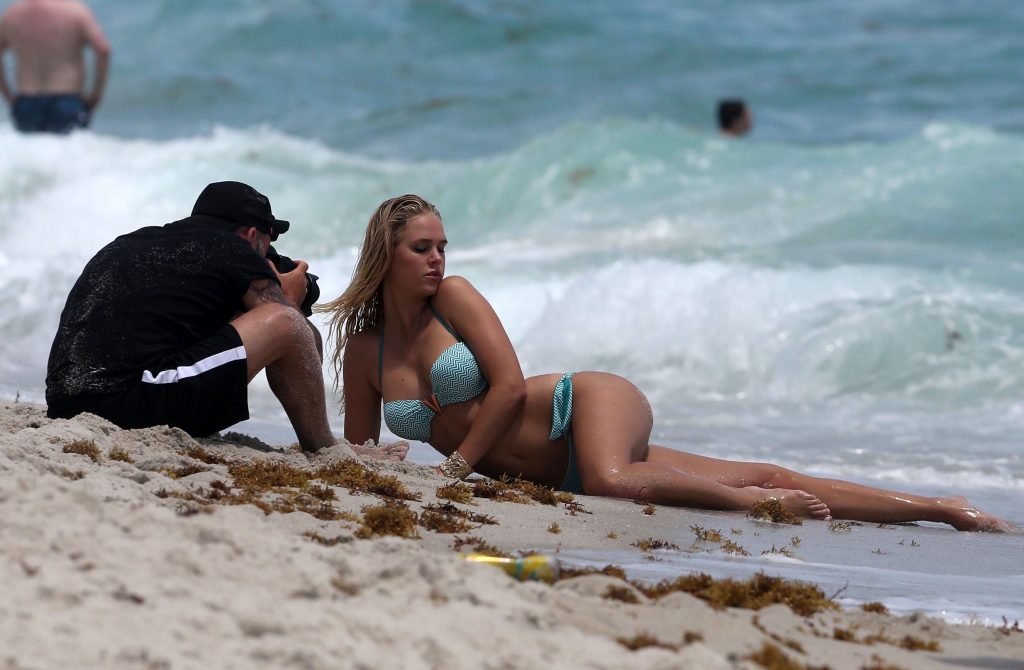 Rachel Vallori y Holly Graves posan en la playa de Miami, 19/04/2017.