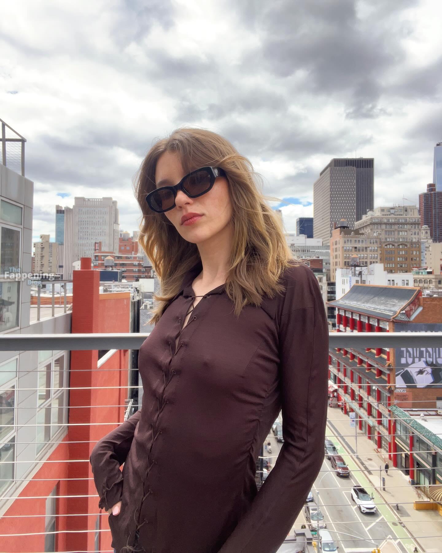 La modelo estadounidense Rachel Yampolsky posa sin sostén y muestra sus pezones marcados en Nueva York.