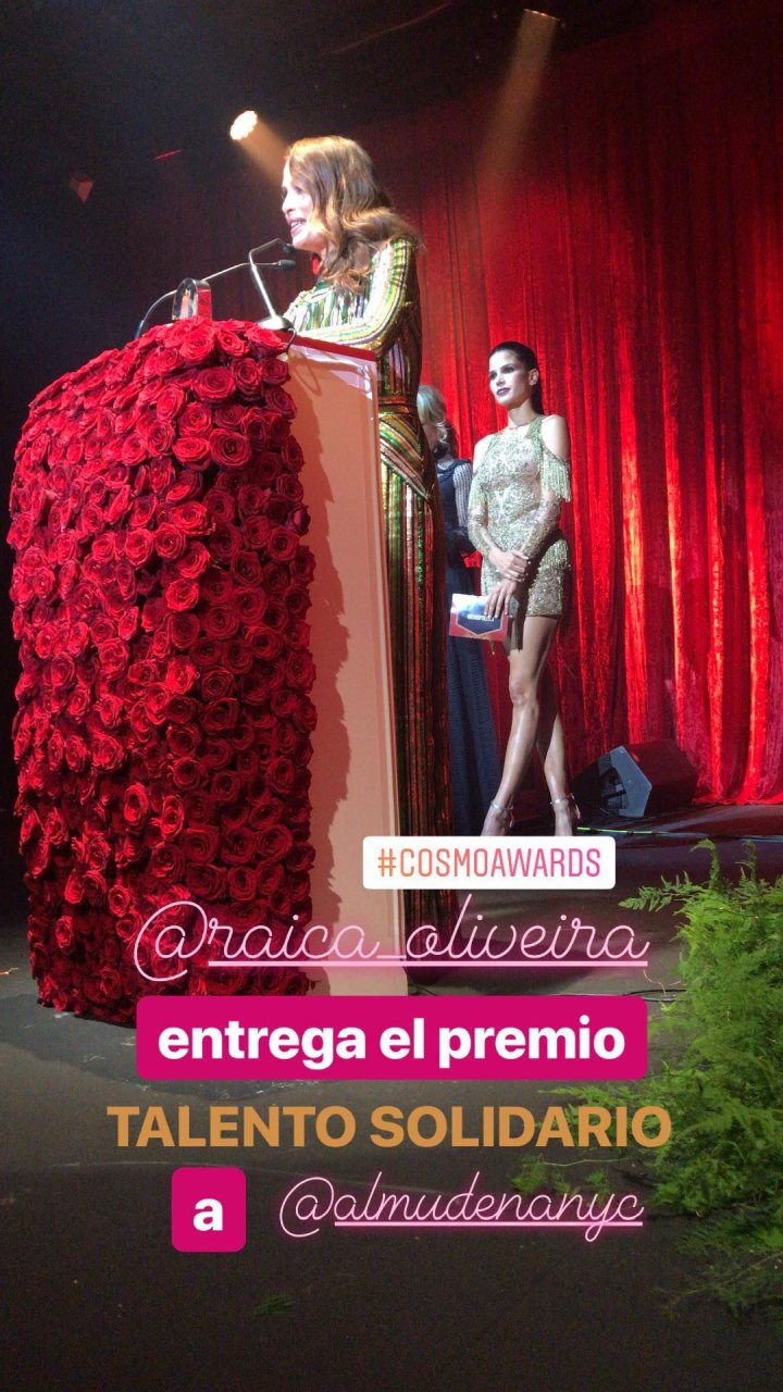 Raica Oliveira asiste a los Cosmopolitan Awards 2018 en Madrid, España, 18/10/2018. La mujer de 34 años llevaba un vestido corto dorado transparente.