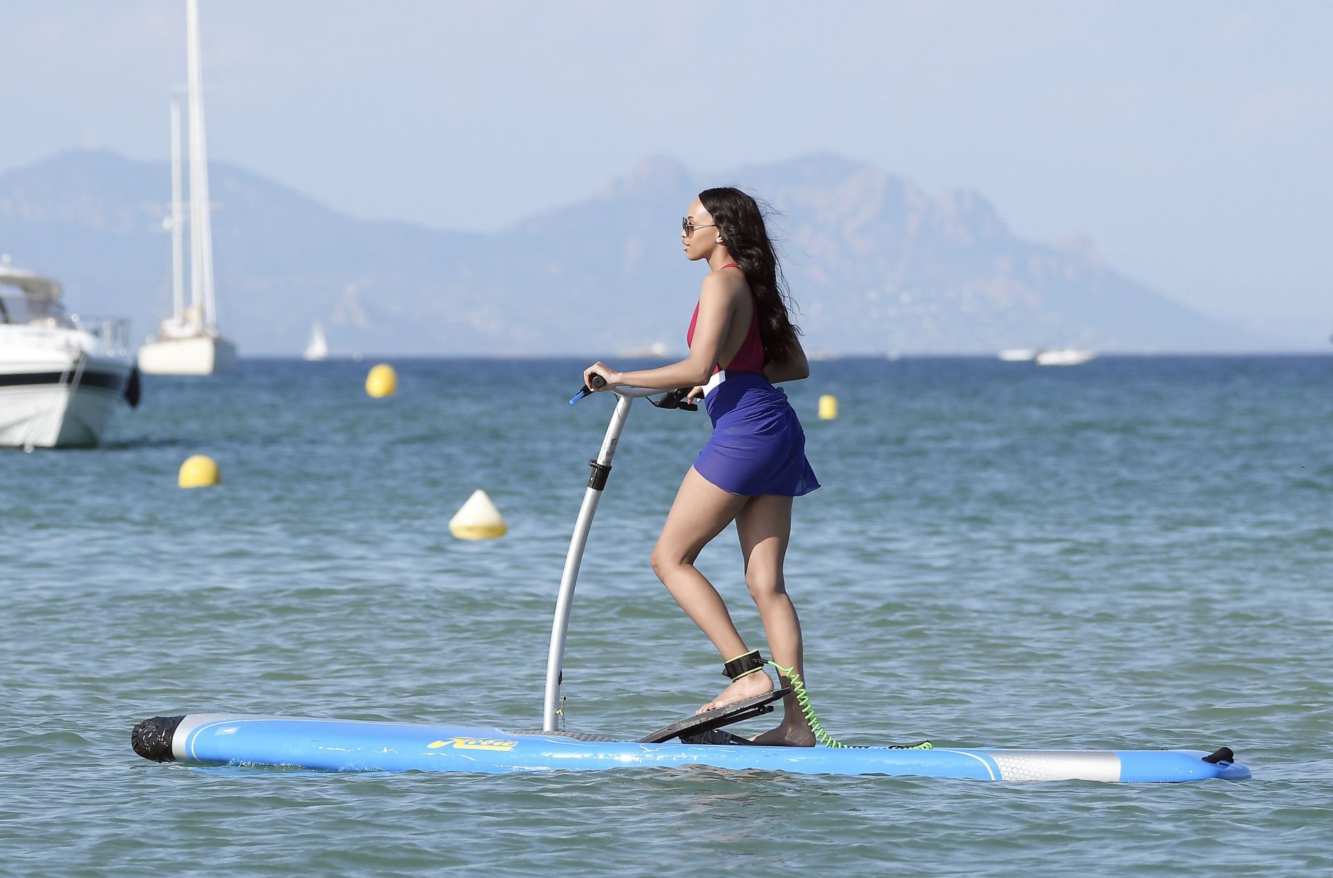 La modelo sudafricana Retha Lethoko (22) fue vista disfrutando del día en un Stand-Up Paddle en el mar en St Tropez, 10/08/2018.
