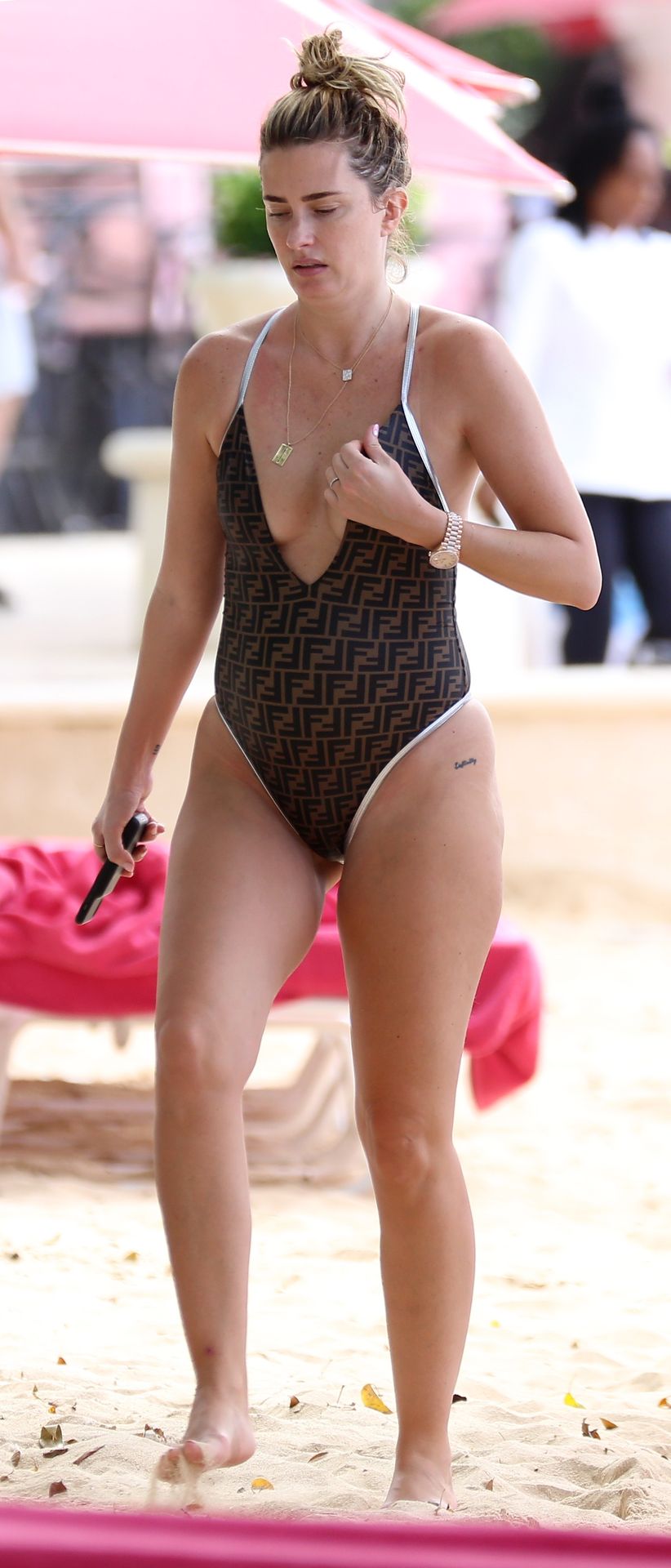 La modelo estadounidense Rhea Durham (41) fue vista usando un traje de baño de una pieza en la playa durante sus vacaciones en Barbados, 29/12/2019.