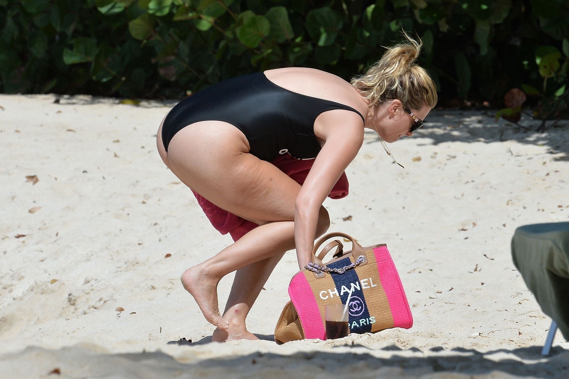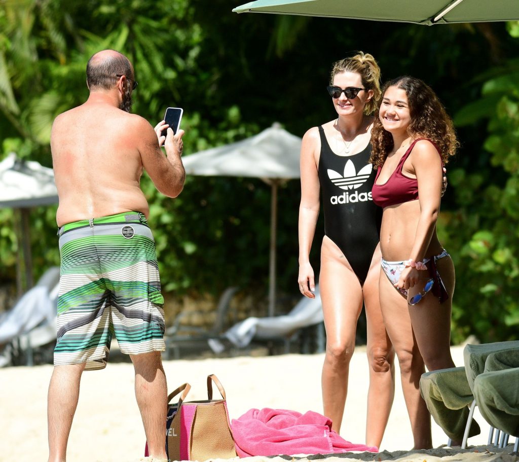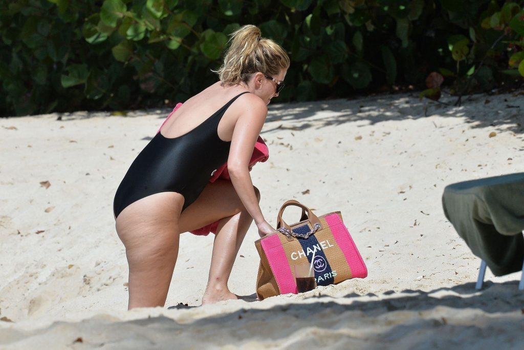Esposa del actor estadounidense Mark Wahlberg, la modelo de 41 años Rhea Durham luce increíble mostrando sus curvas sensacionales con su traje de baño negro, fotografiada disfrutando de las vacaciones de invierno en la playa de Barbados, 30/12/2019.