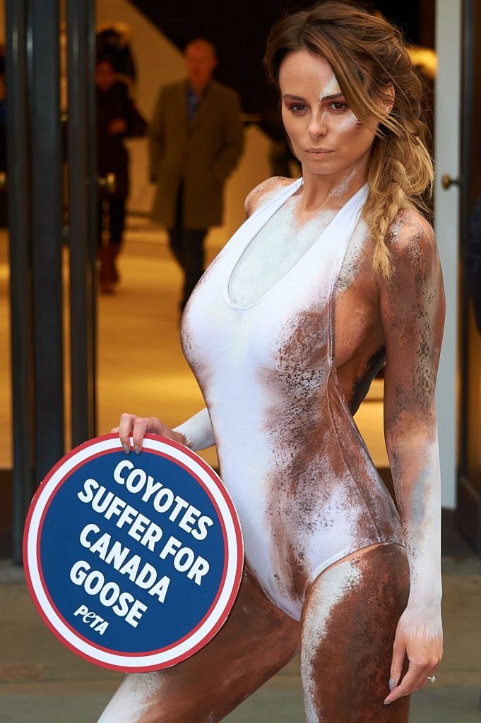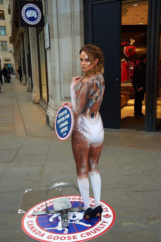 Modelo de glamour Rhian Sugden, 31, posa para la nueva campaña de PETA en Londres, 29/11/2017.