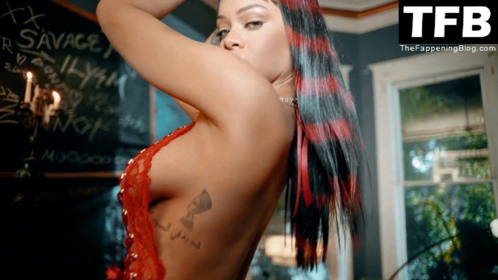La estrella de The Fappening Rihanna presenta una nueva colección de su famosa marca Savage X Fenty, mostrando su figura curvilínea (enero 2022).