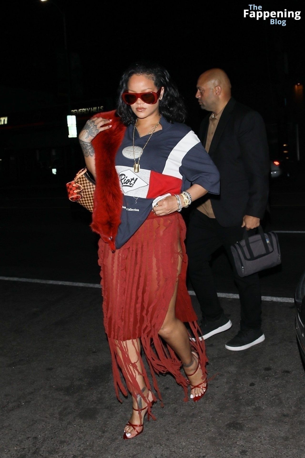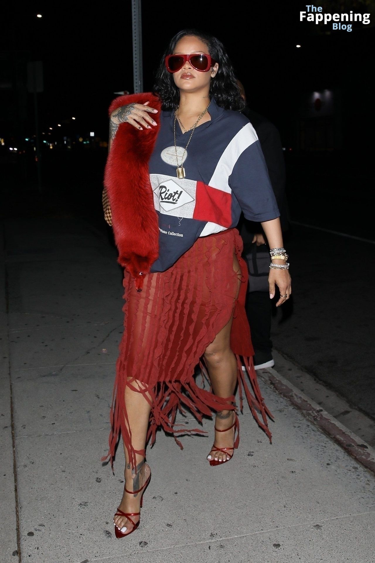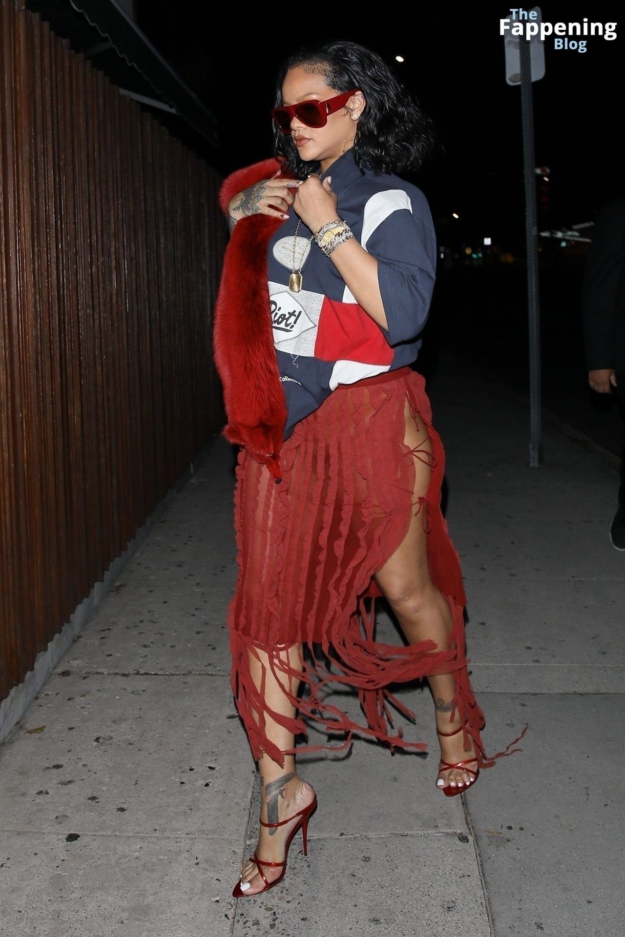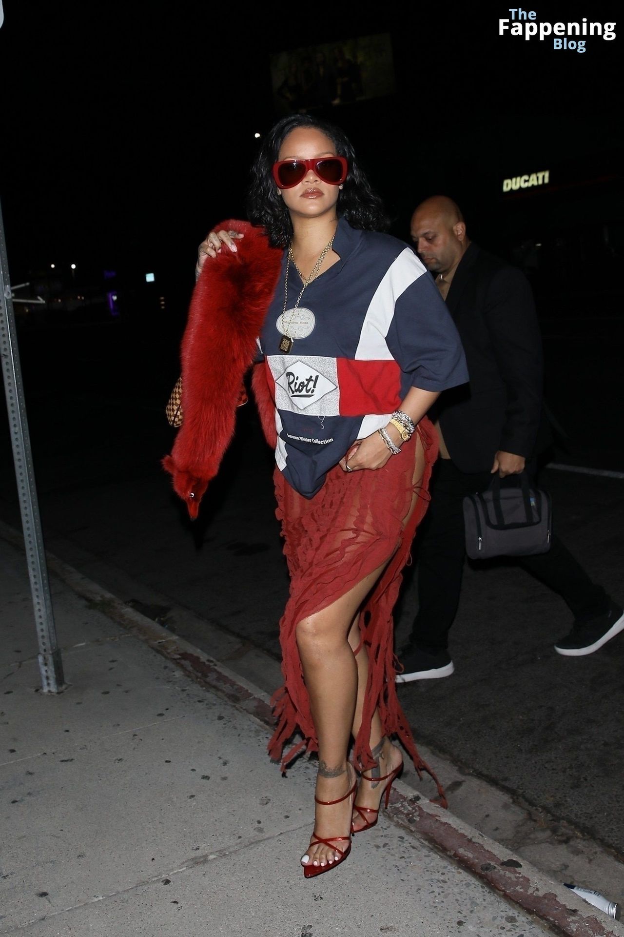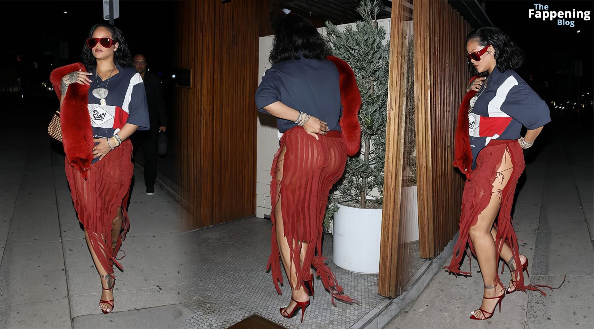 Rihanna se veía increíblemente sexy con ese atrevido conjunto mientras salía a comer en The Nice Guy. La reina de The Fappening lució un look audaz, llevando el nombre de su hijo en la camiseta, mientras salía de fiesta por la ciudad.