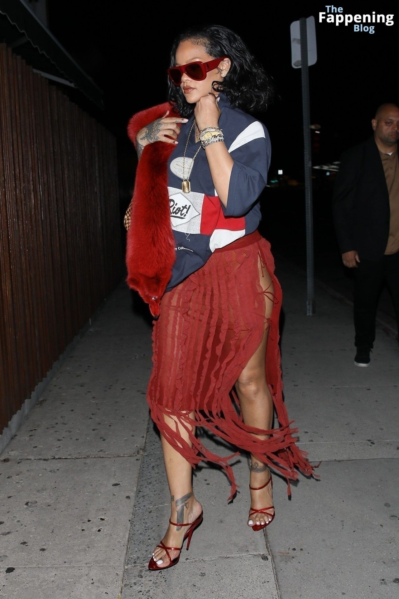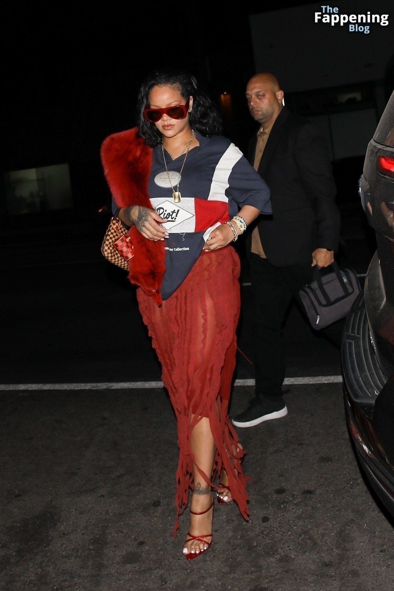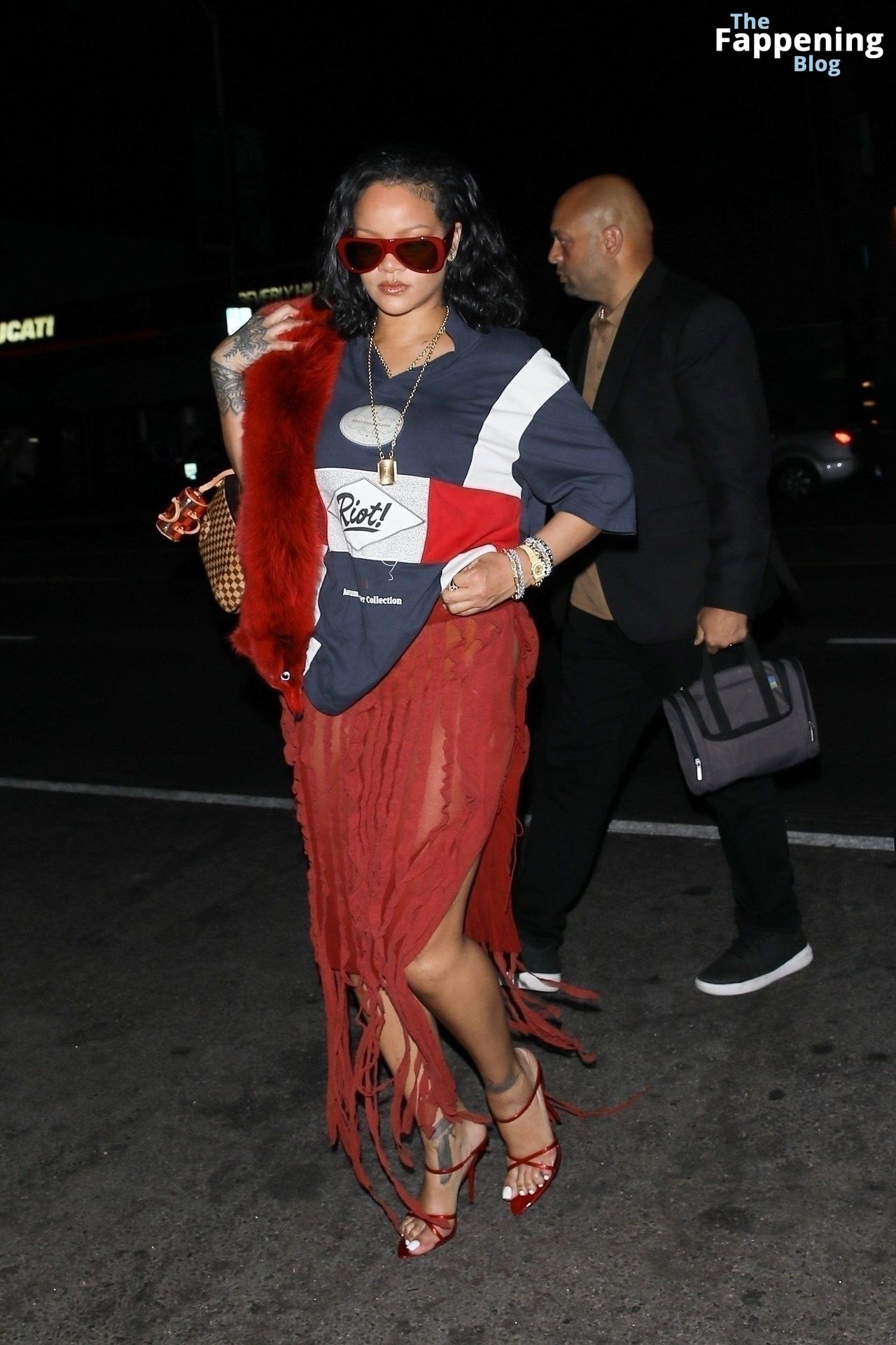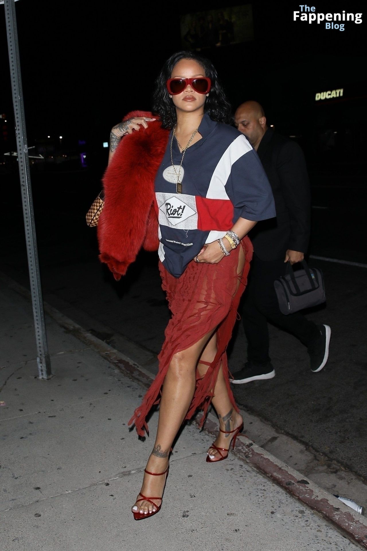 Rihanna se veía increíblemente sexy con ese atrevido conjunto mientras salía a comer en The Nice Guy. La reina de The Fappening lució un look audaz, llevando el nombre de su hijo en la camiseta, mientras salía de fiesta por la ciudad.