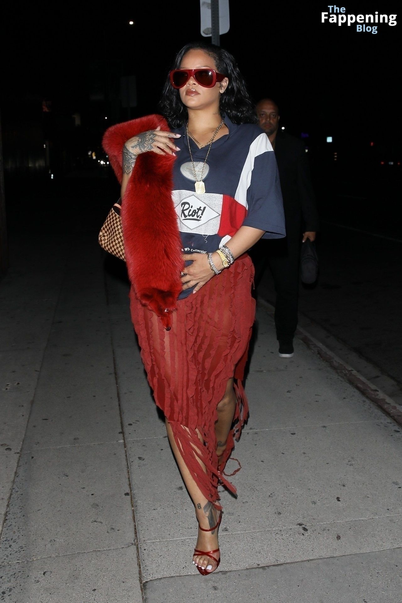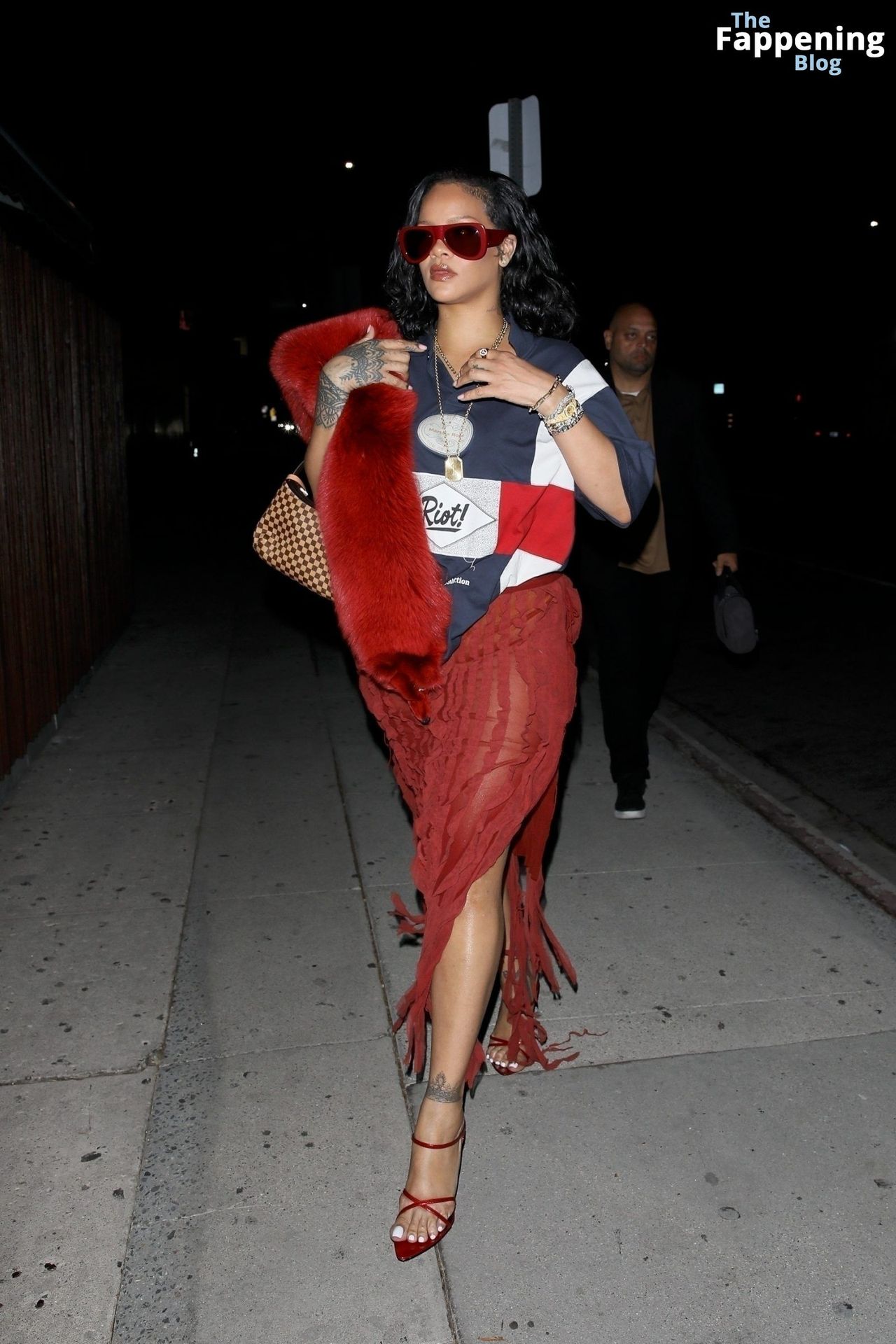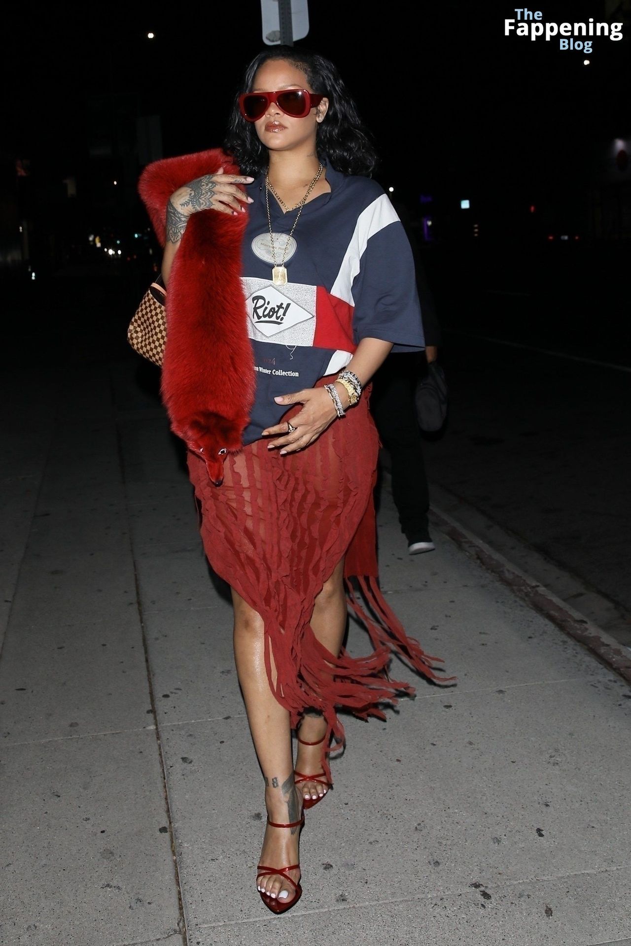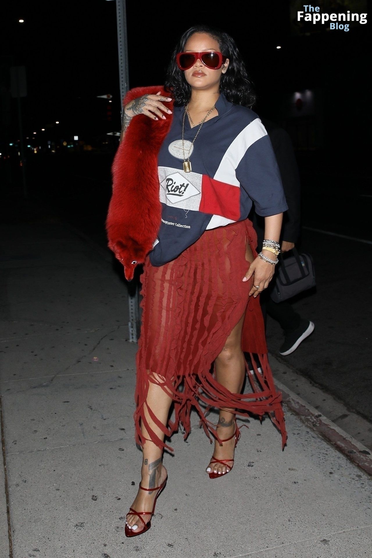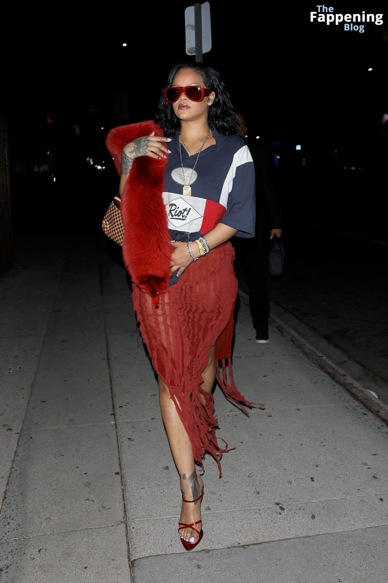 Rihanna se veía increíblemente sexy con ese atrevido conjunto mientras salía a comer en The Nice Guy. La reina de The Fappening lució un look audaz, llevando el nombre de su hijo en la camiseta, mientras salía de fiesta por la ciudad.
