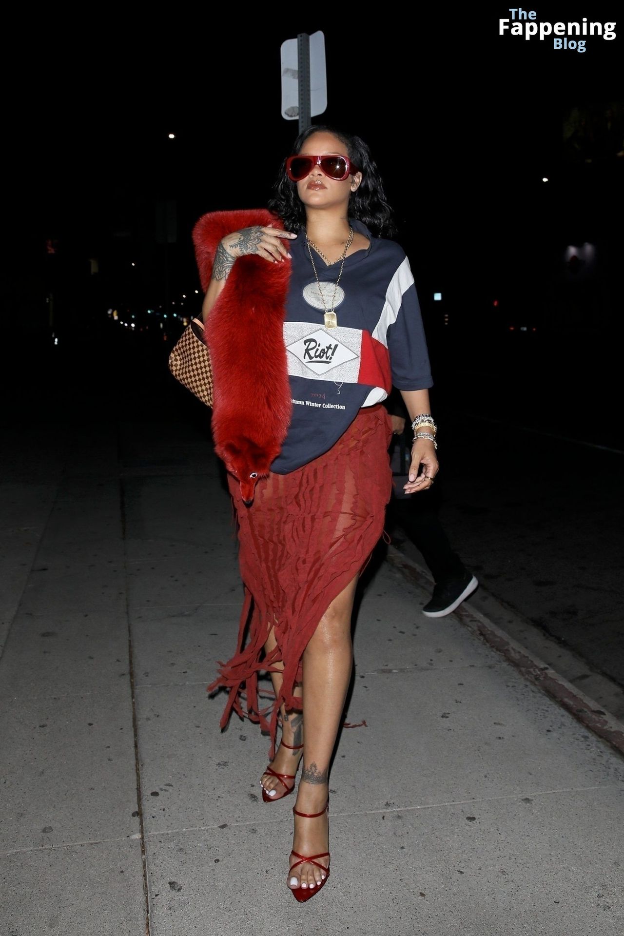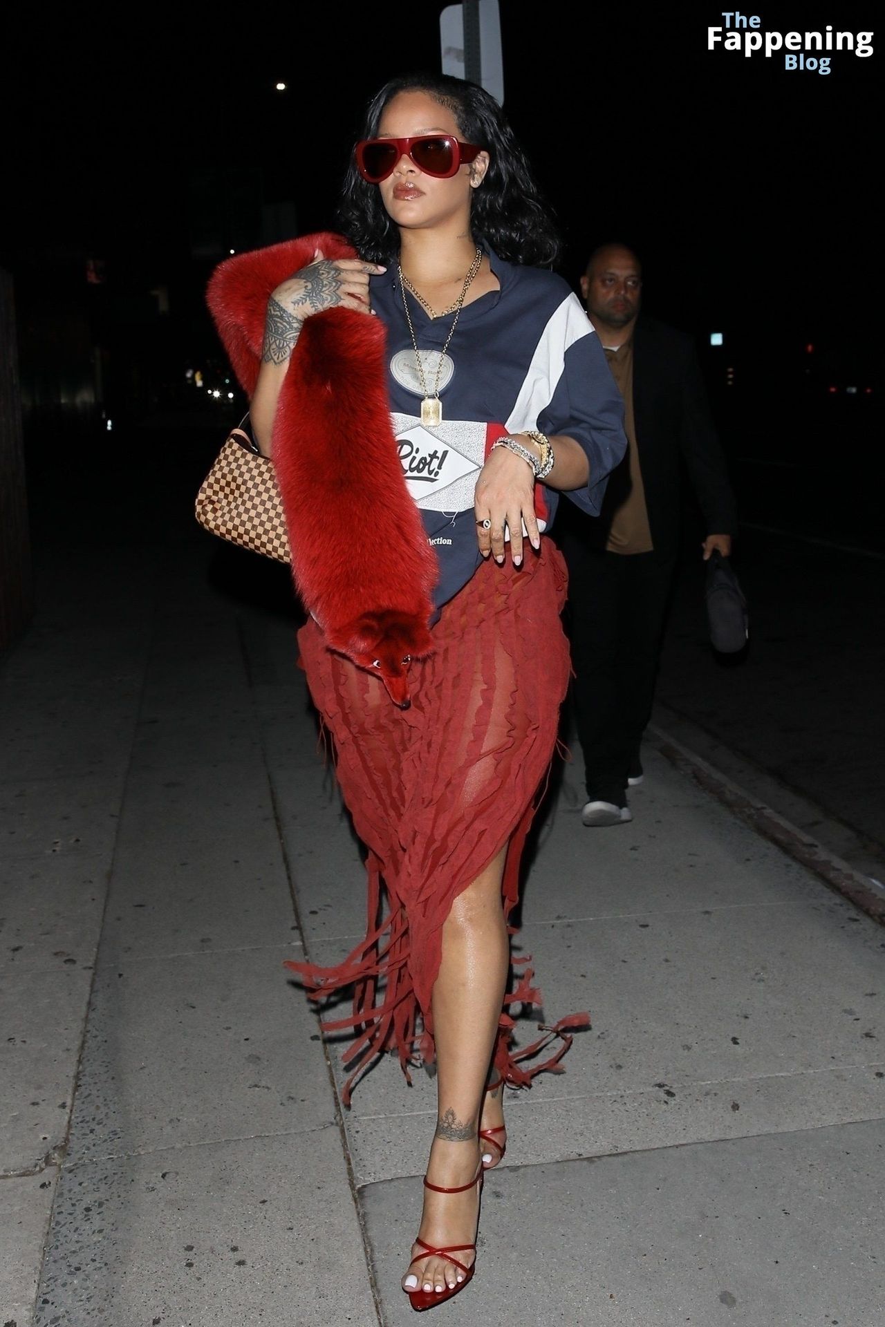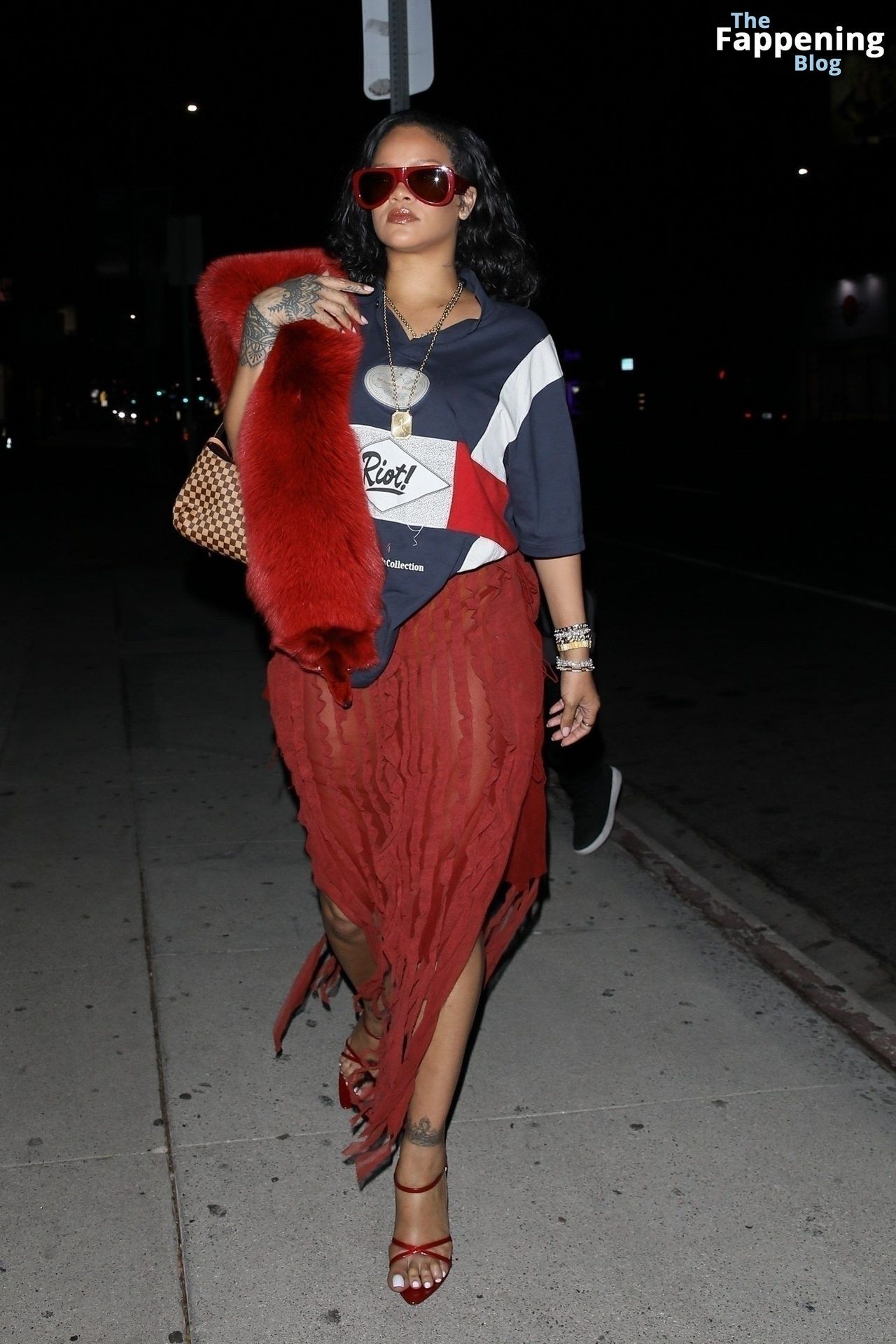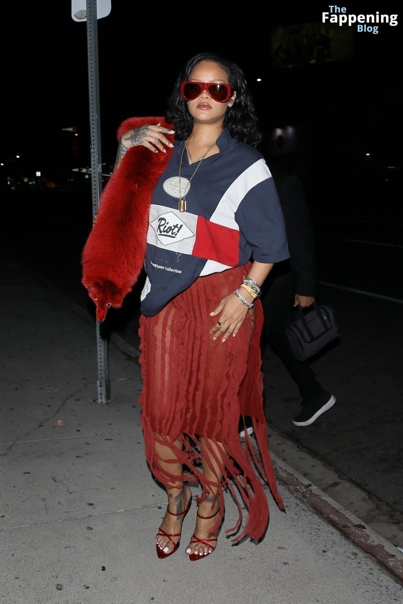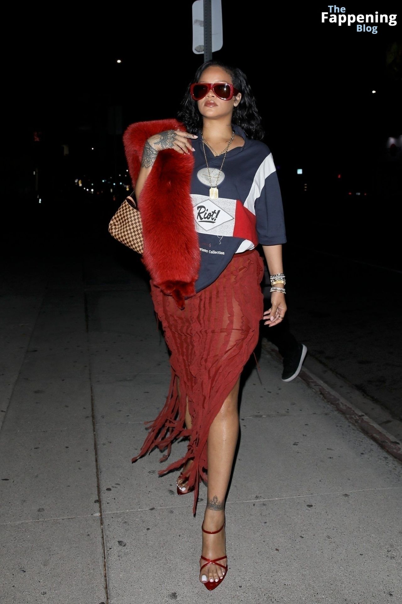 Rihanna se veía increíblemente sexy con ese atrevido conjunto mientras salía a comer en The Nice Guy. La reina de The Fappening lució un look audaz, llevando el nombre de su hijo en la camiseta, mientras salía de fiesta por la ciudad.