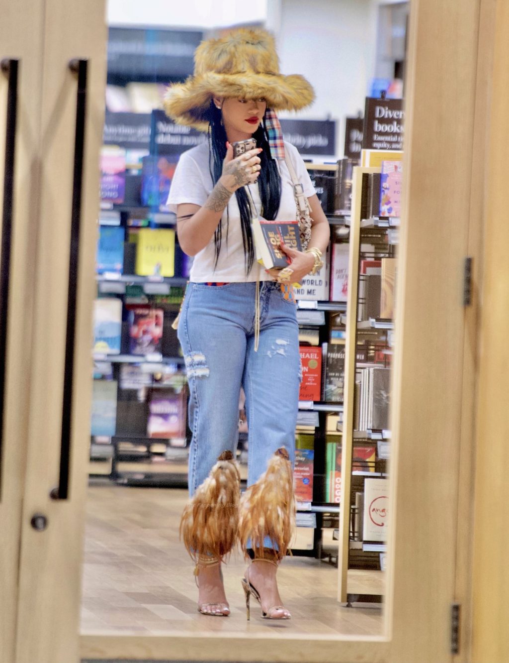 Rihanna fue vista en Los Ángeles el miércoles por la noche, mientras visitaba una librería ubicada en un centro comercial.