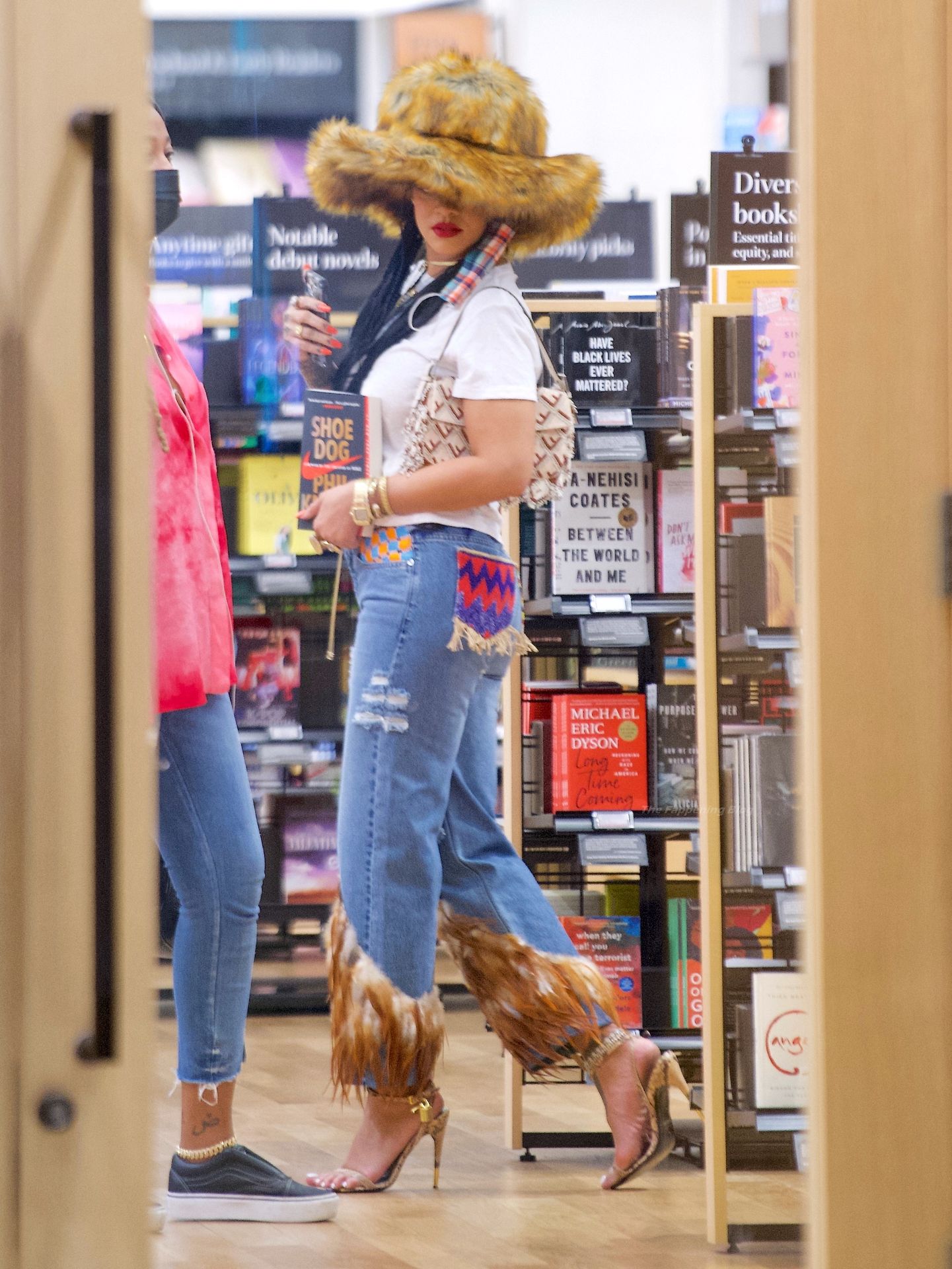 Rihanna fue vista en Los Ángeles el miércoles por la noche, mientras visitaba una librería ubicada en un centro comercial.