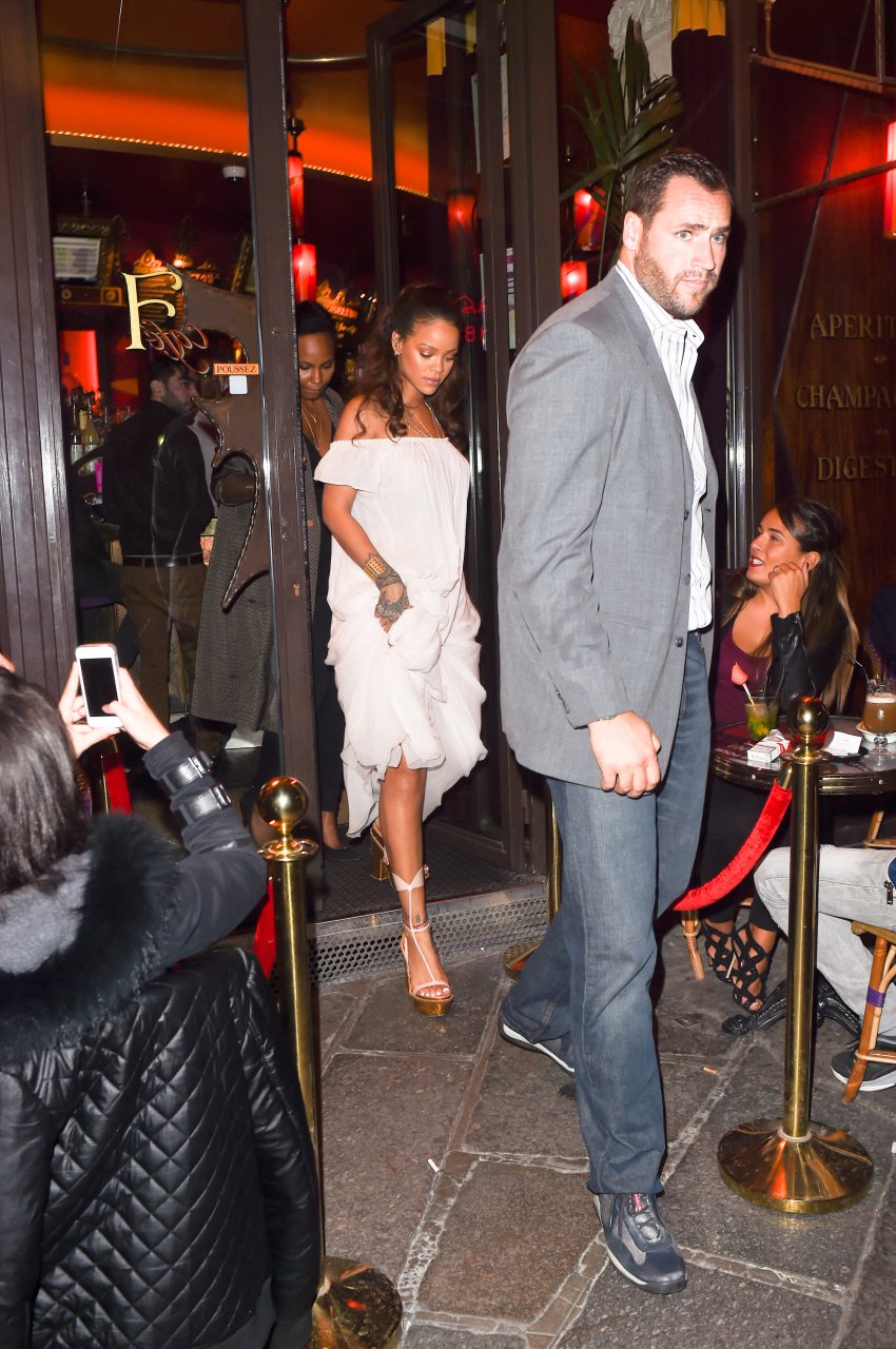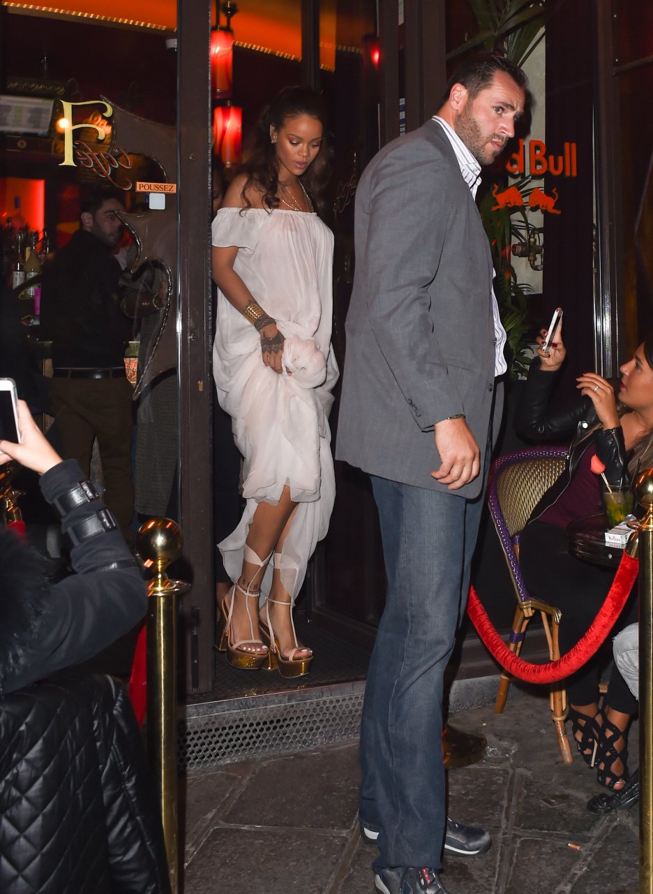 Nuevas fotos de paparazzi de Rihanna saliendo de un bar en París (03.10.2015). Rihanna es una cantante y diseñadora de moda estadounidense. Edad 27 (20 de febrero de 1988)