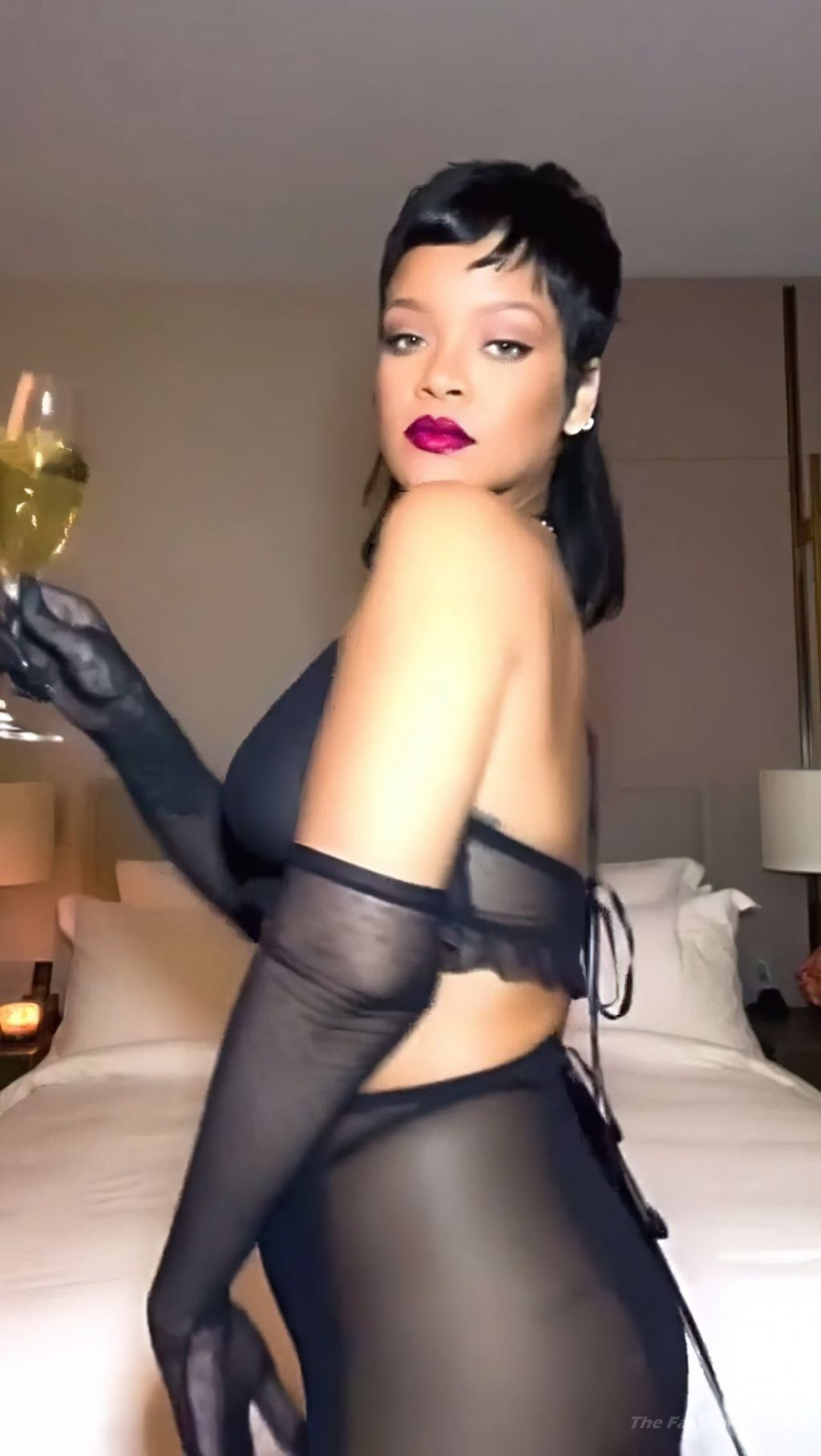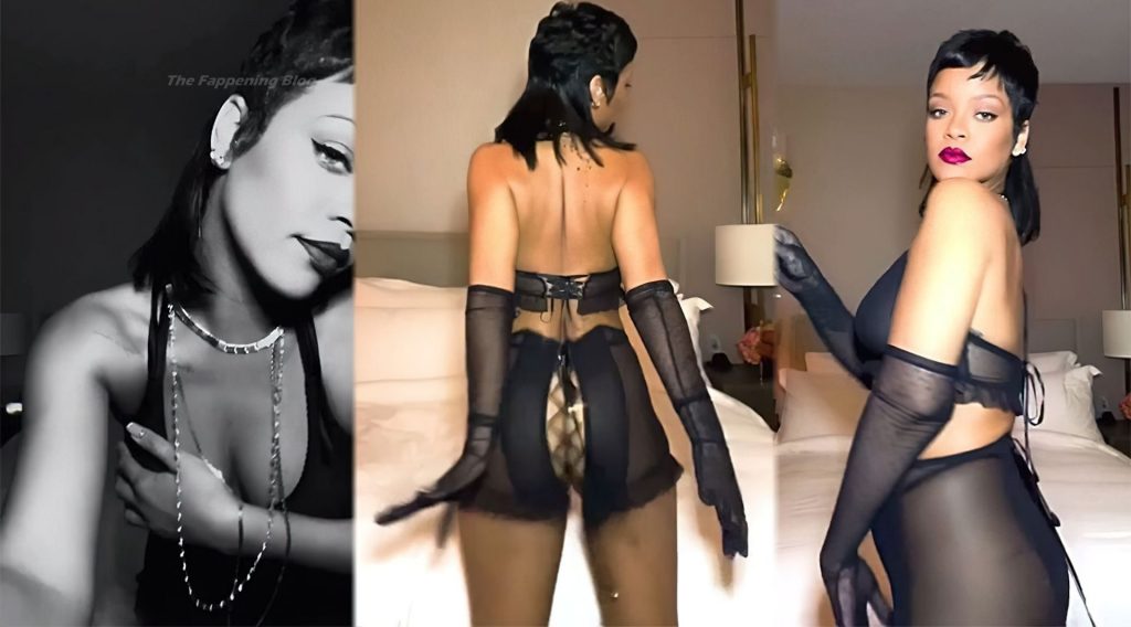 Cantante y The Fappening Rihanna muestra su hermoso cuerpo vistiendo lencería erótica transparente en el video Cupid Day Countdown para la colección de San Valentín Savage X Fenty (2021).