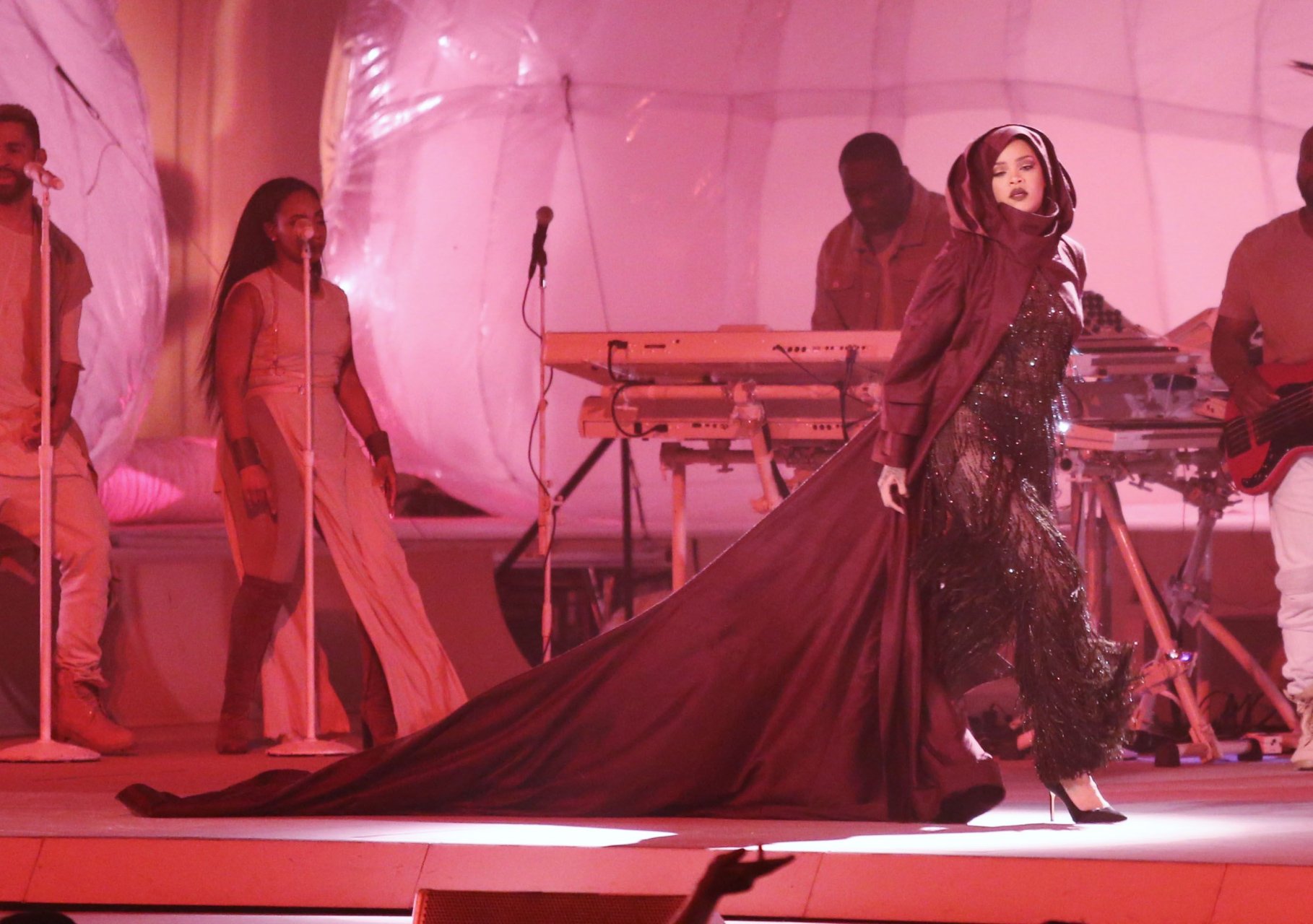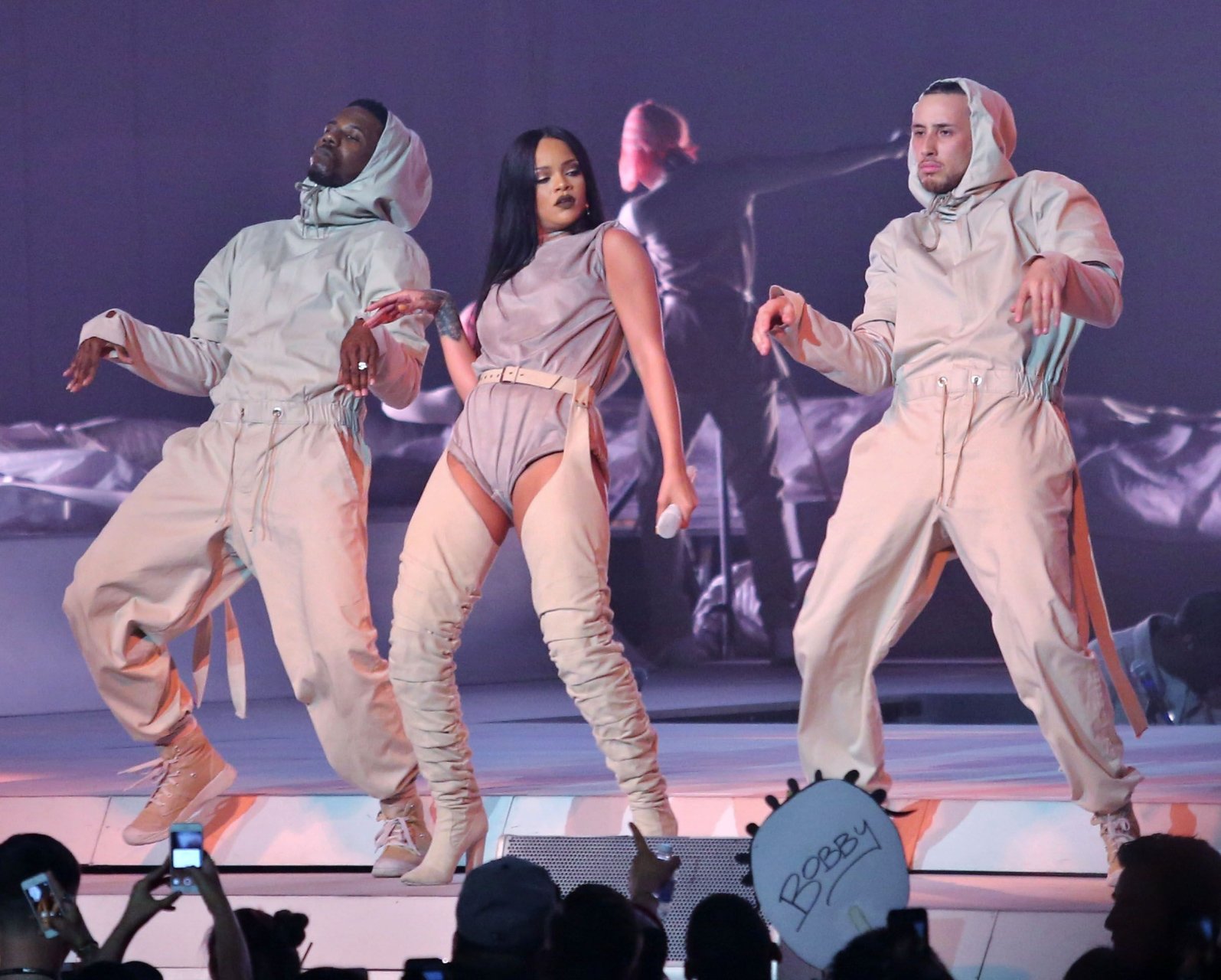 Rihanna actuando en Rogers Arena en Vancouver, 23/04/16. ¡Actuación caliente! Rihanna es una cantante y diseñadora de moda estadounidense. Edad: 28 (20 de febrero de 1988).