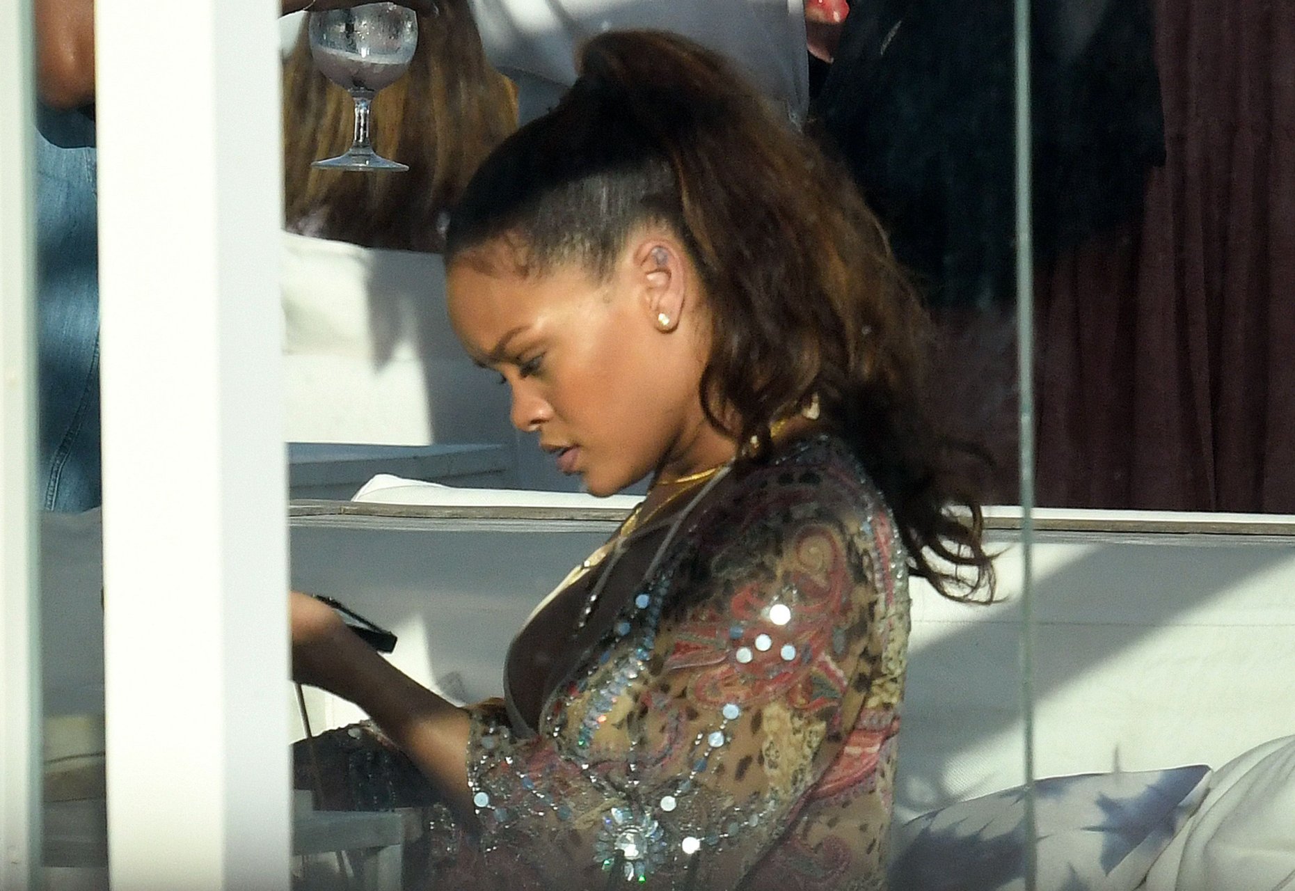 Rihanna presume su escote y su enorme jeta de nueve cabezas
