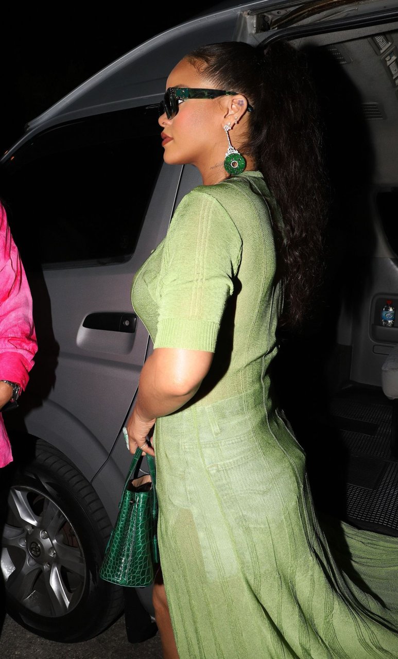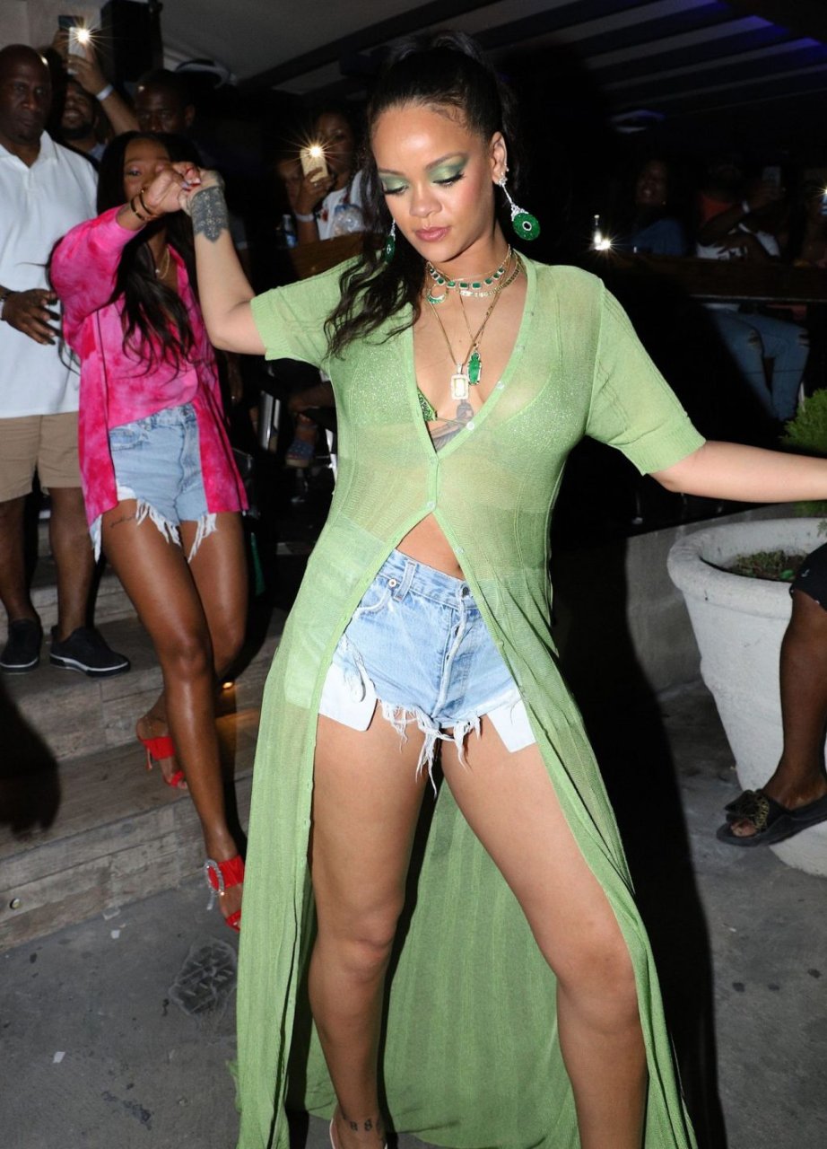 Rihanna (31) llega con estilo y con retraso (2:00 AM) para apoyar la fiesta de su hermano, Rorrey (programada para las 9:00 PM) en Jamestown Bar, Bridgetown Barbados, y es un espectáculo para contemplar mientras muestra su increíble figura, 27/04/2019. Saluda a su hermano con una gran sonrisa antes de entrar al club para pasar una noche de fiesta.