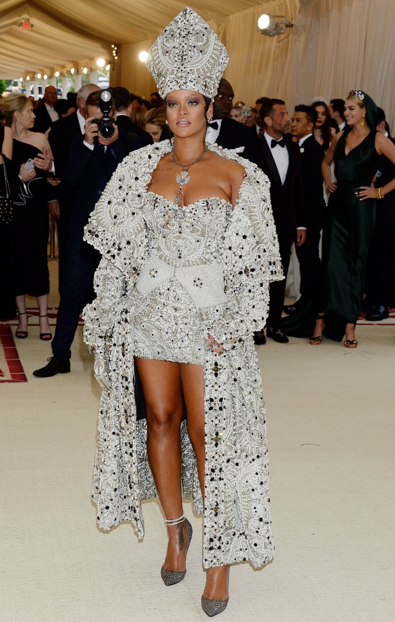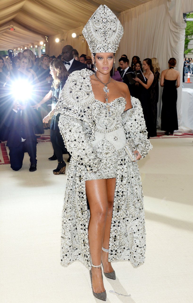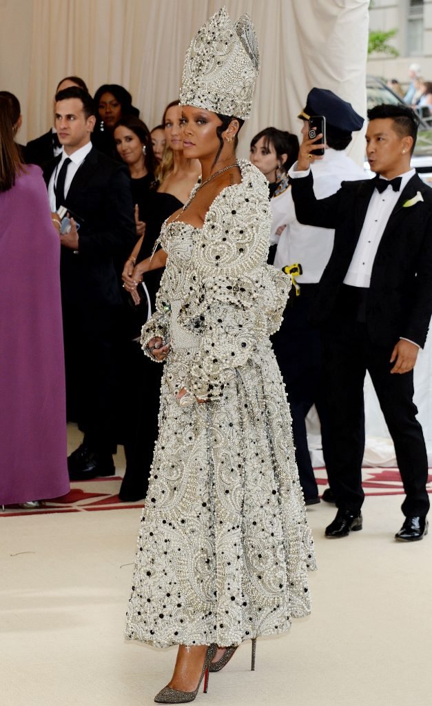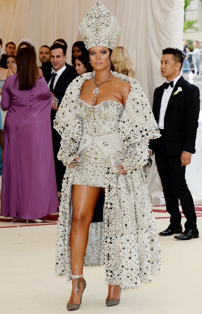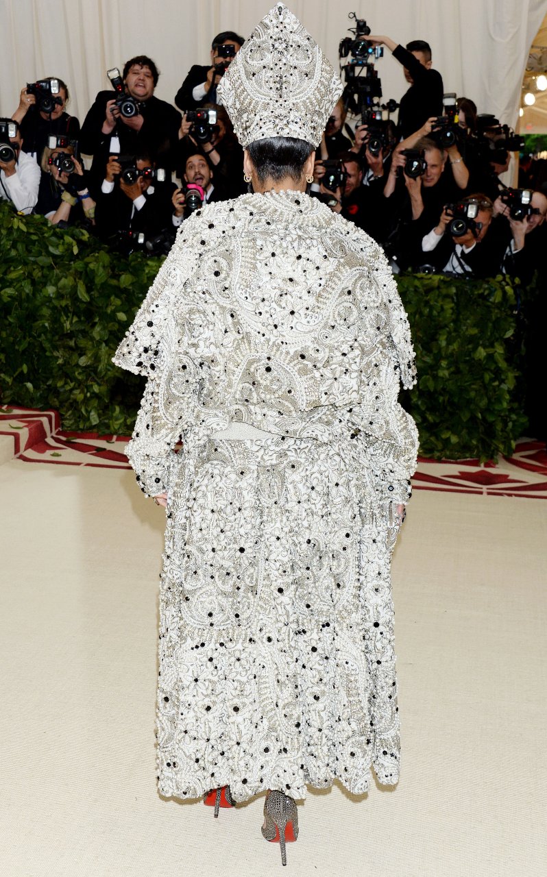 El atuendo de Rihanna fue uno de los más comentados en las redes sociales: la cantante de 30 años llegó a la Met Gala en el Museo Metropolitano con el vestido del Papa. Se ve muy poderosa.