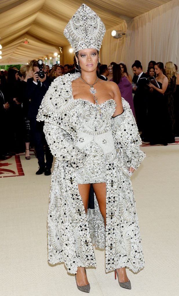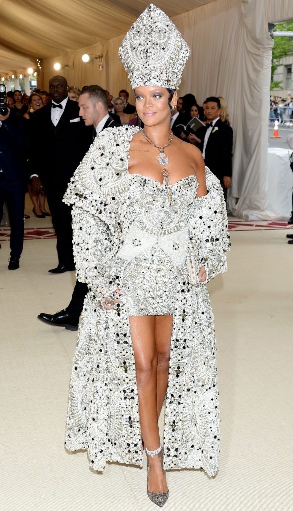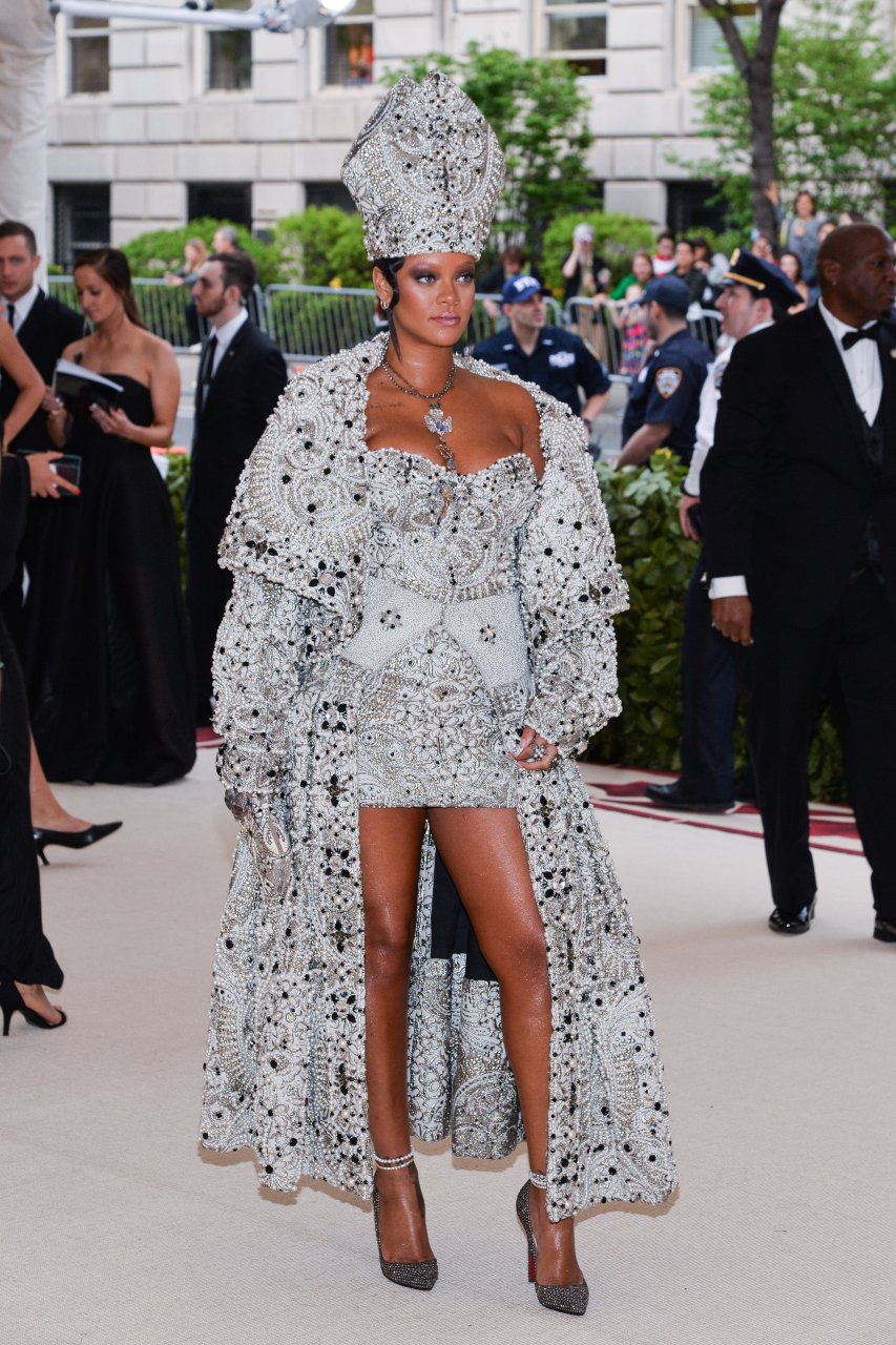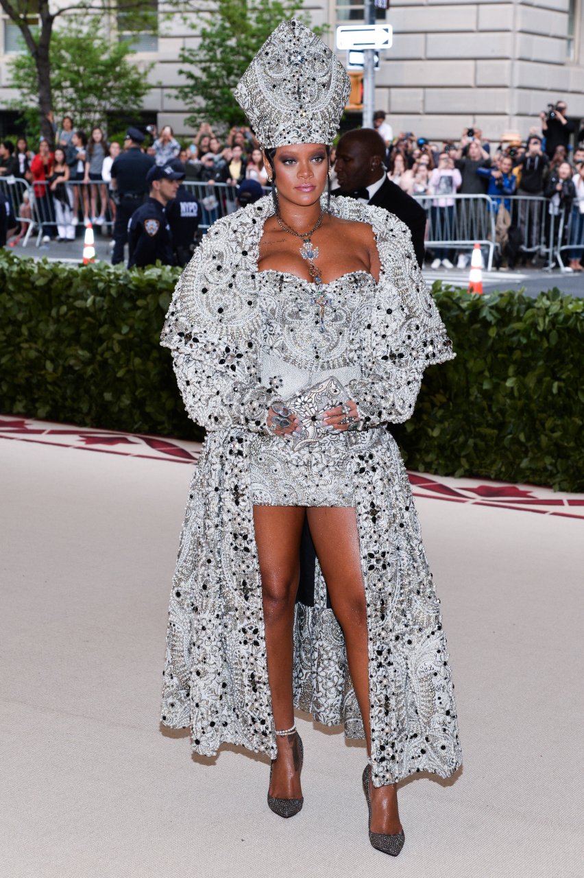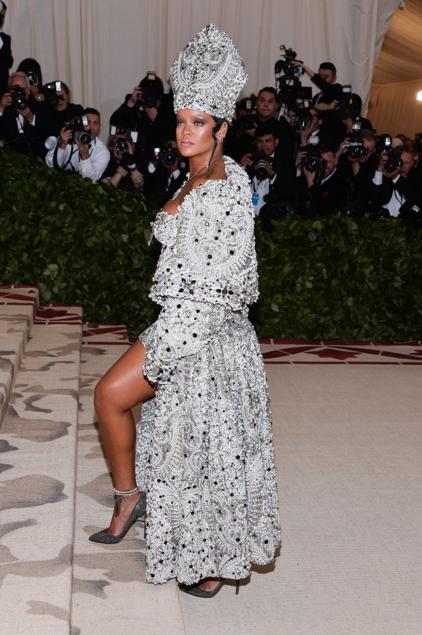 El atuendo de Rihanna fue uno de los más comentados en las redes sociales: la cantante de 30 años llegó a la Met Gala en el Museo Metropolitano con el vestido del Papa. Se ve muy poderosa.
