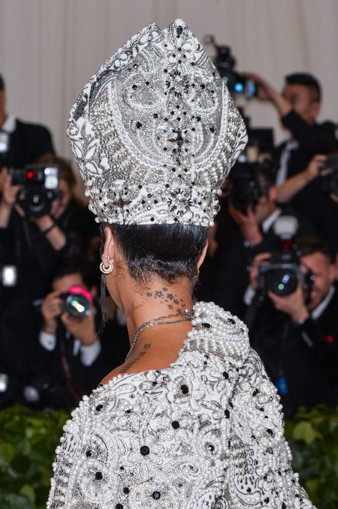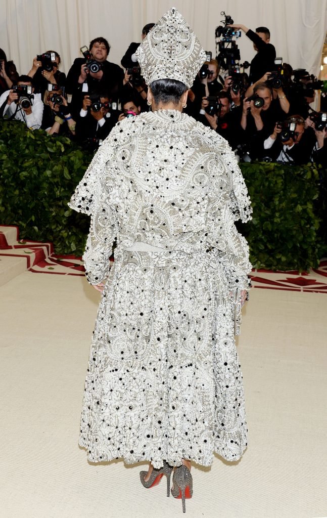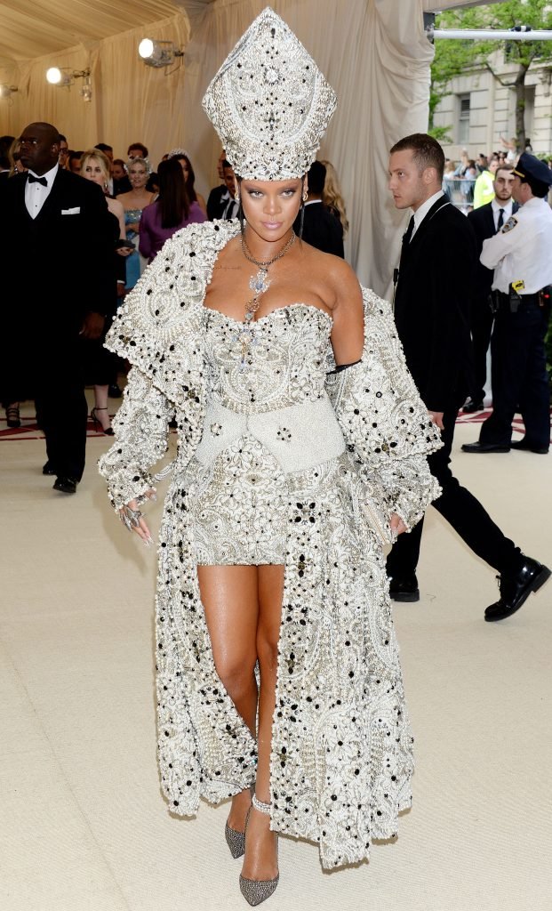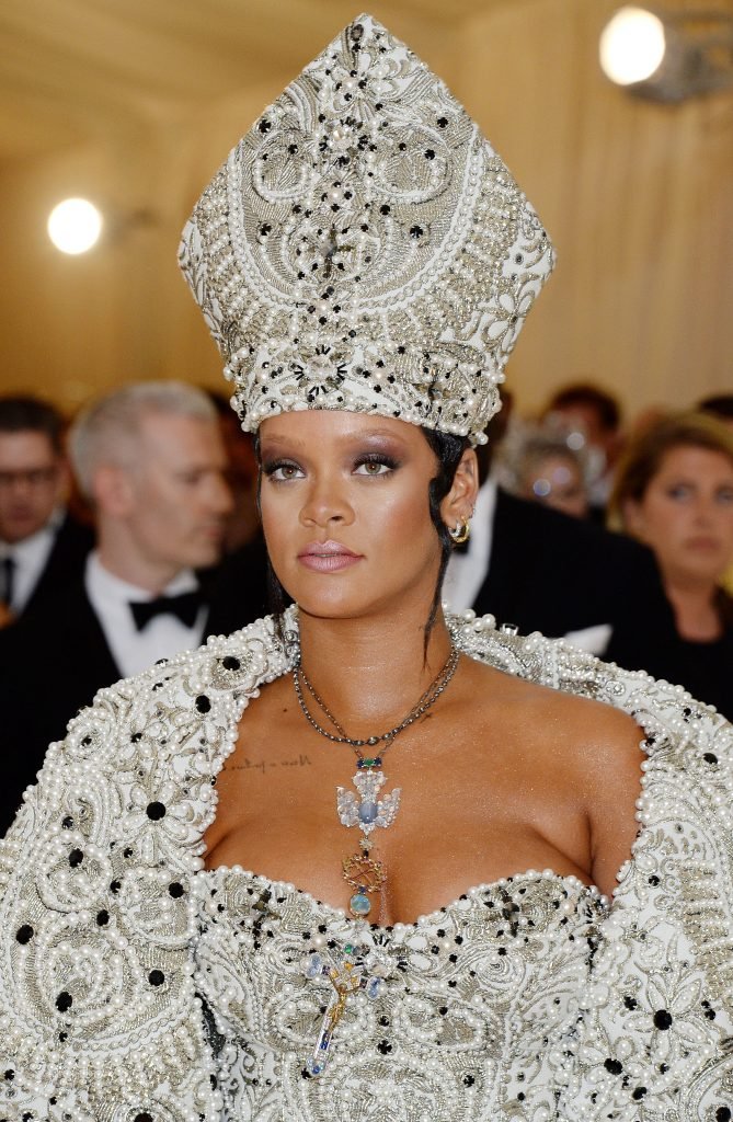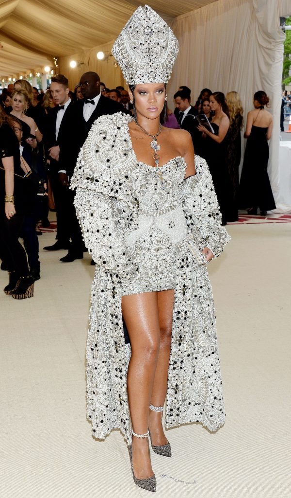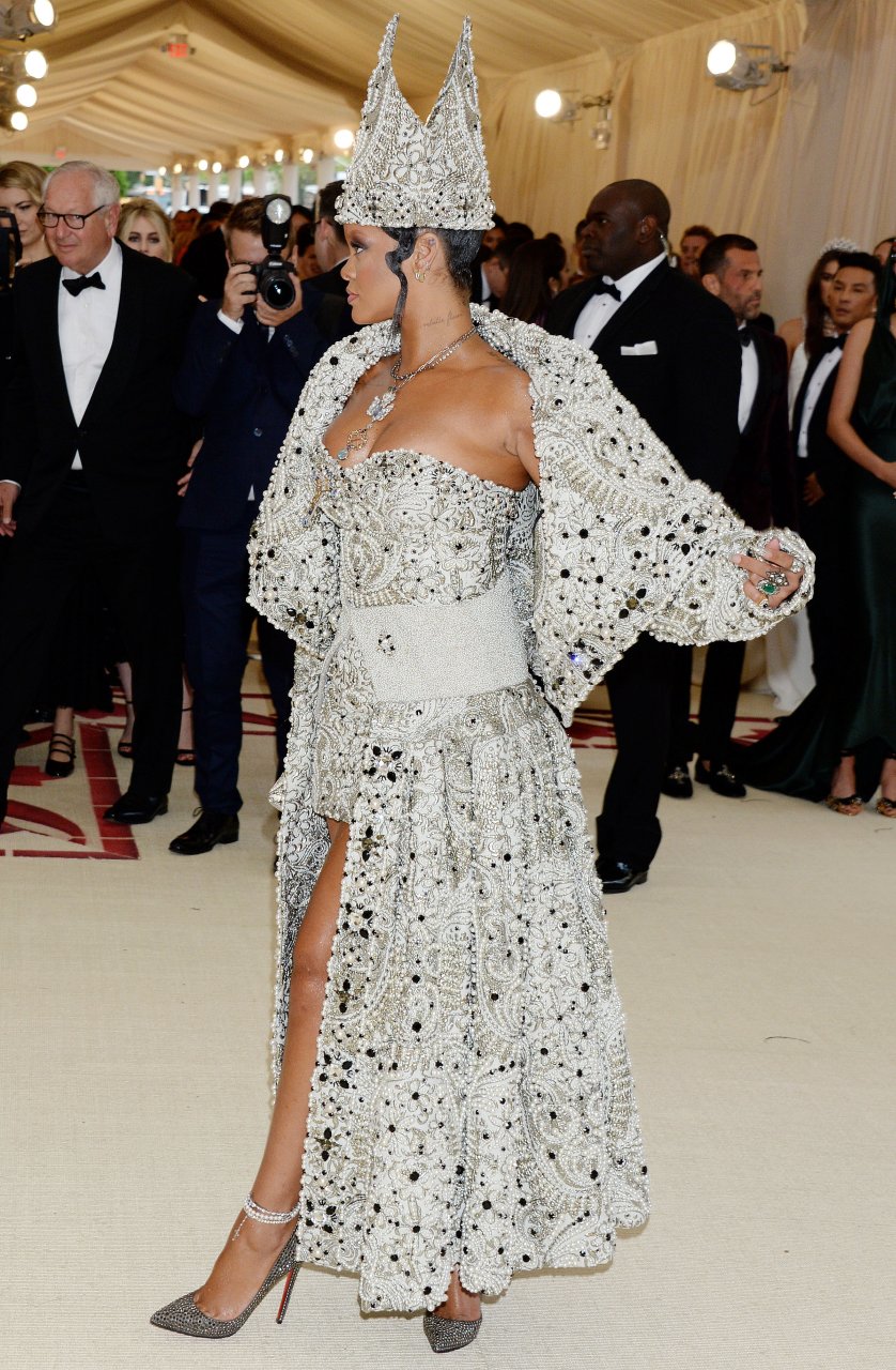 El atuendo de Rihanna fue uno de los más comentados en las redes sociales: la cantante de 30 años llegó a la Met Gala en el Museo Metropolitano con el vestido del Papa. Se ve muy poderosa.