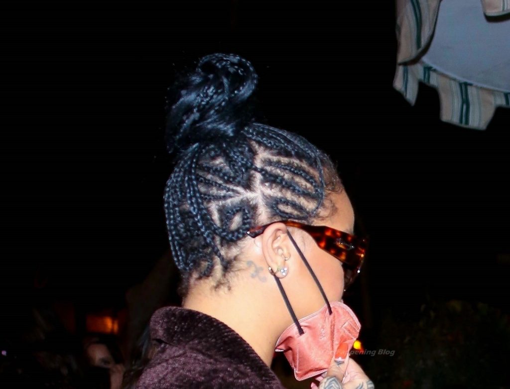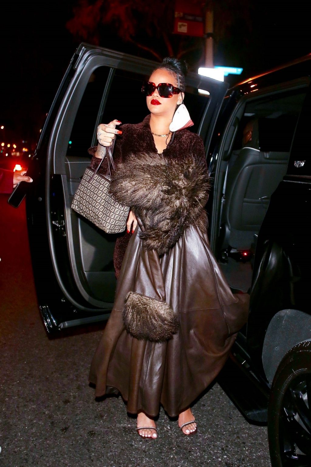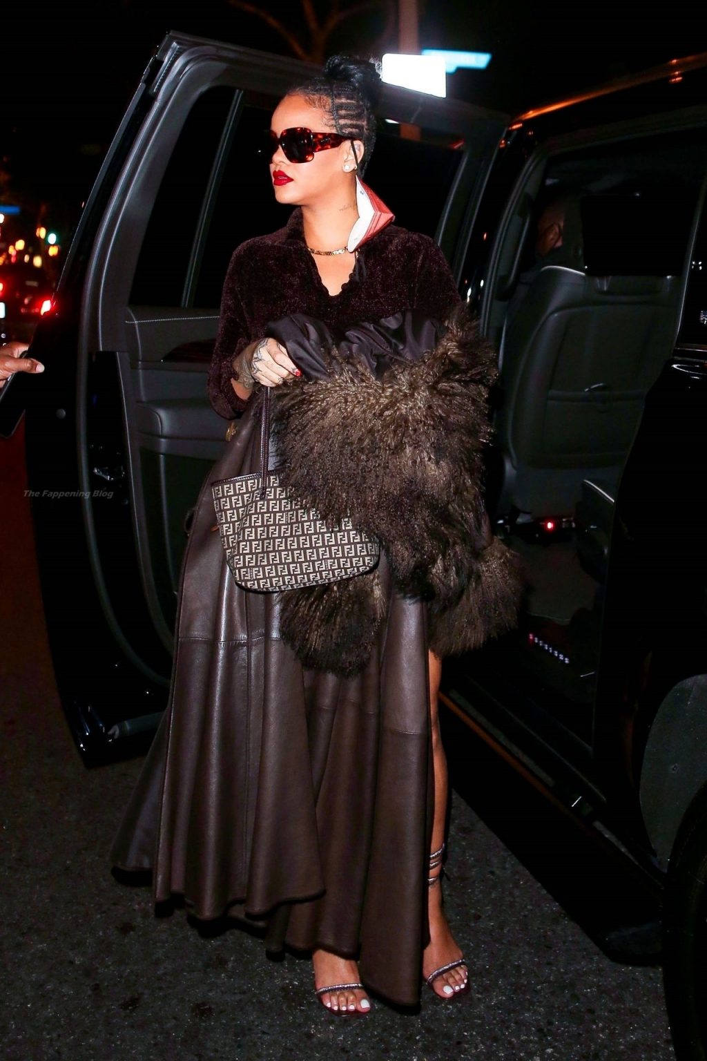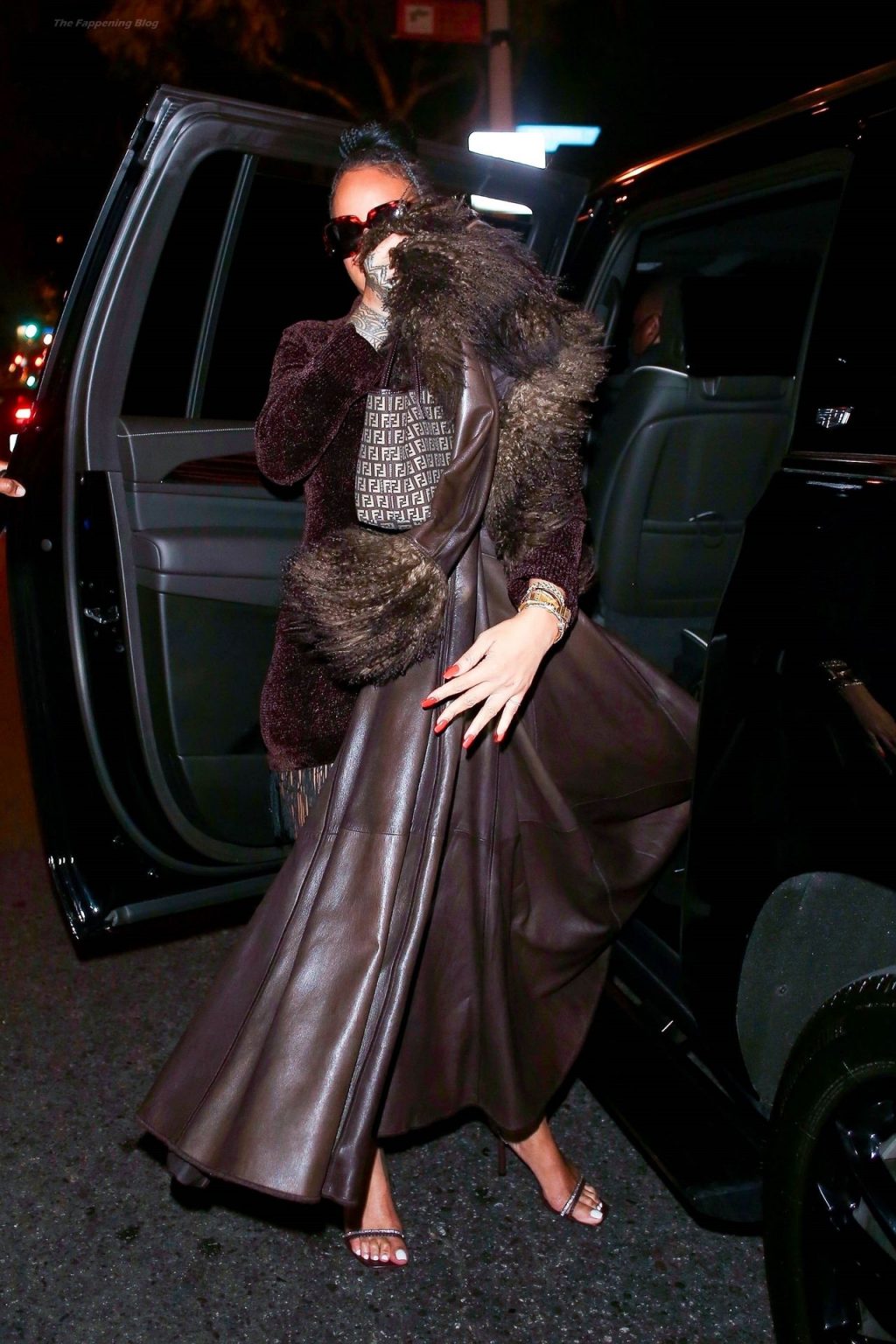 La estrella de The Fappening Rihanna destaca sus curvas bien formadas con un minivestido mientras sale de una fiesta privada con A$AP Rocky.