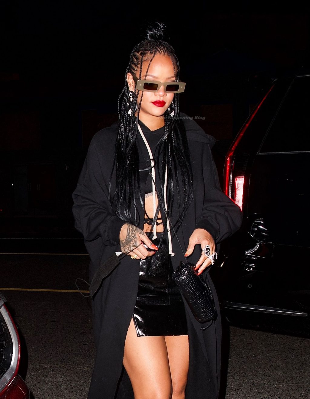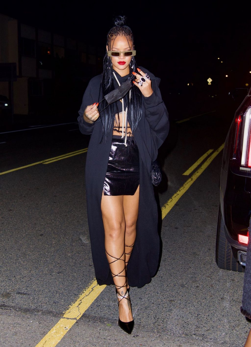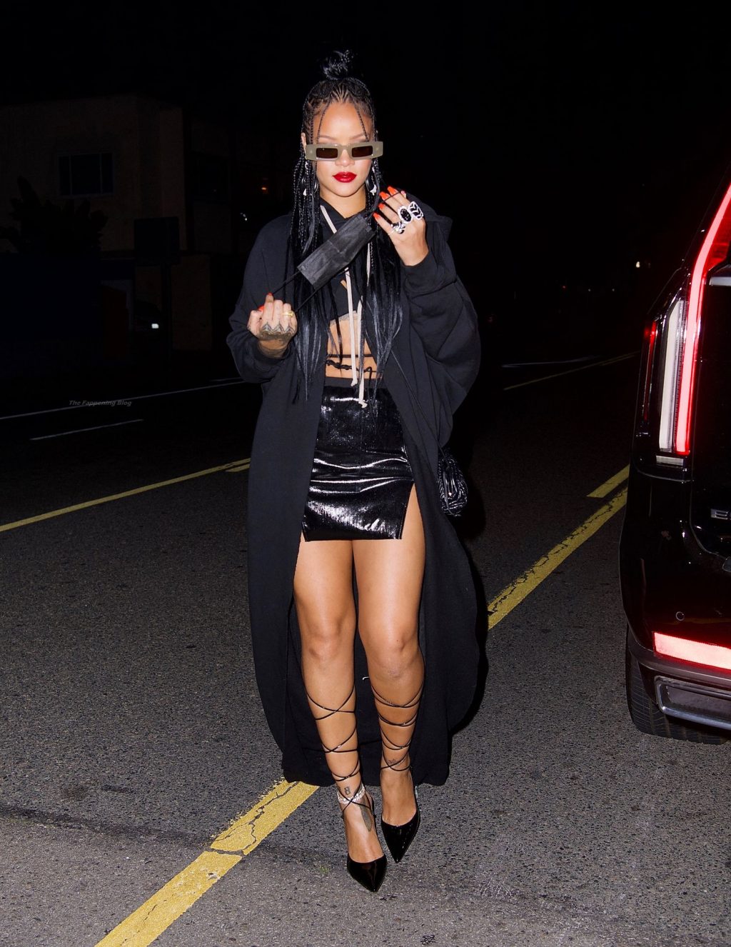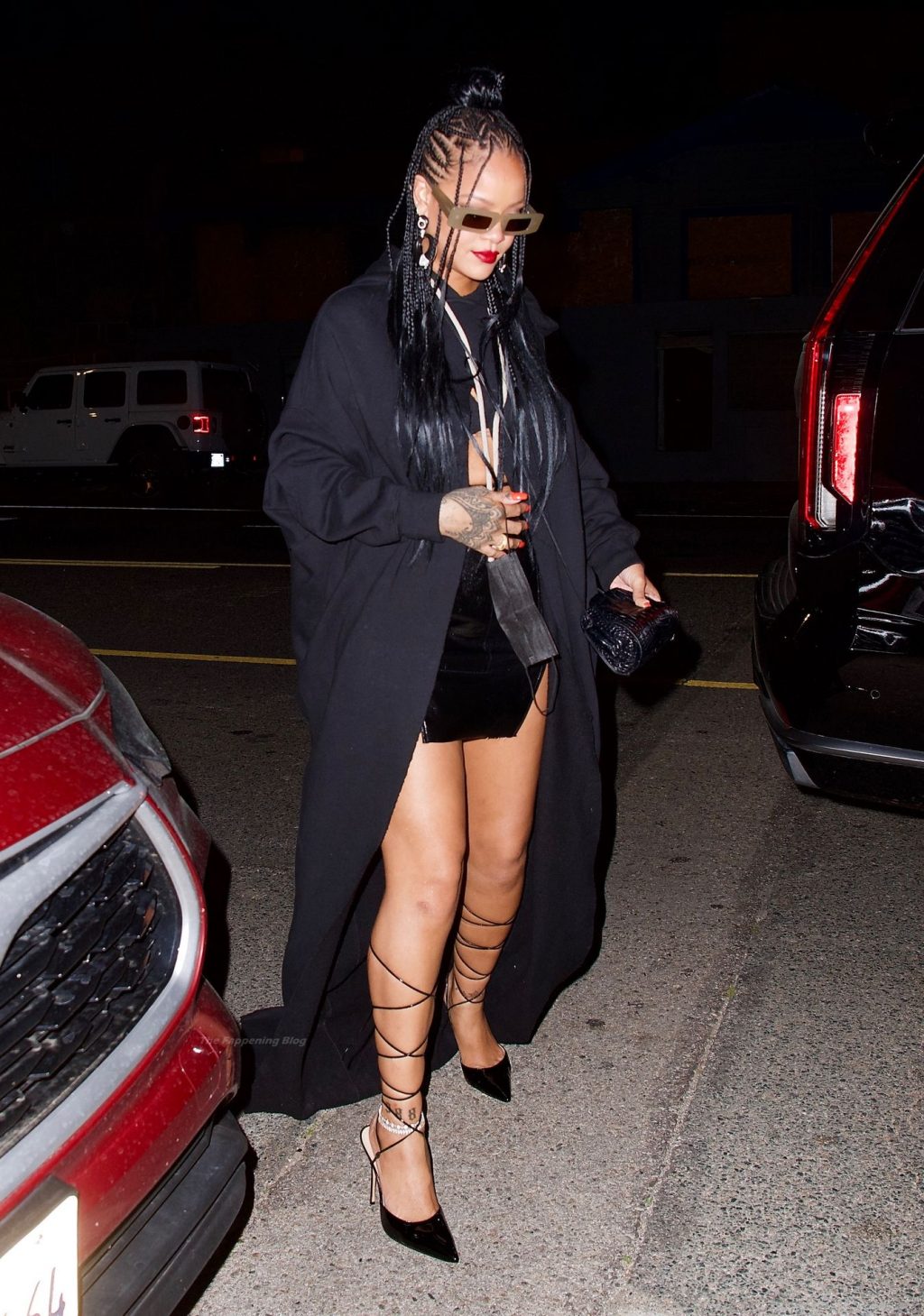 La estrella de The Fappening Rihanna muestra sus piernas con una minifalda negra mientras se dirige a cenar en Giorgio Baldi, 29/03/2021.
