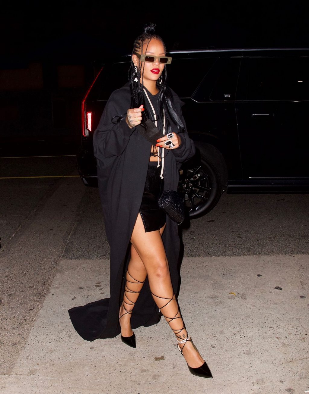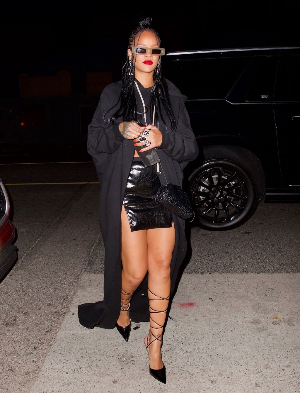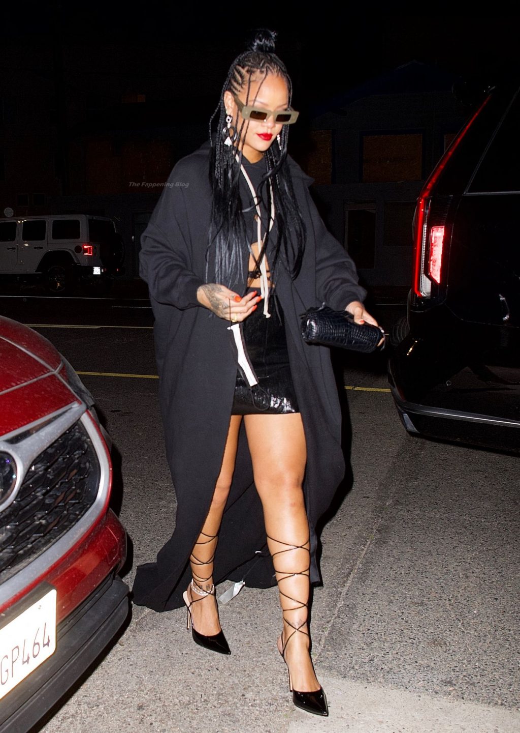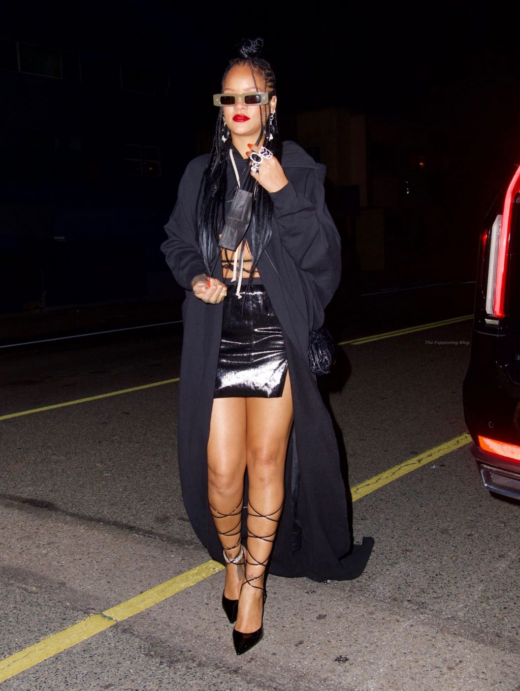 La estrella de The Fappening Rihanna muestra sus piernas con una minifalda negra mientras se dirige a cenar en Giorgio Baldi, 29/03/2021.