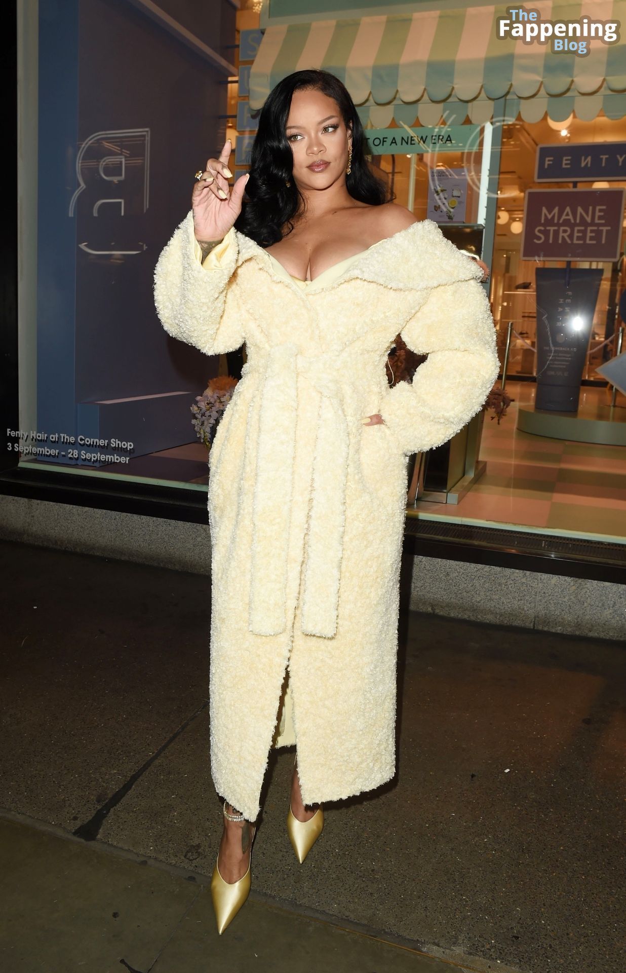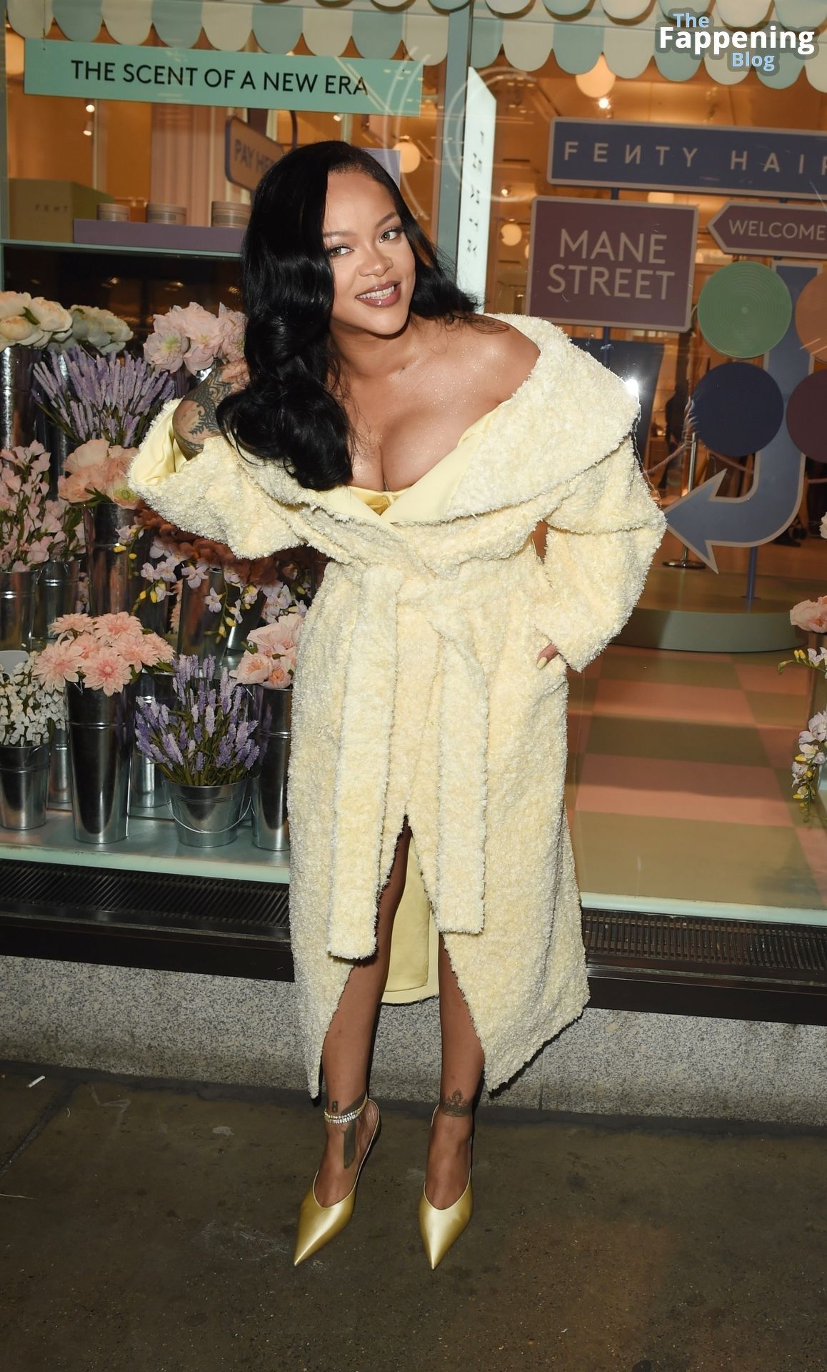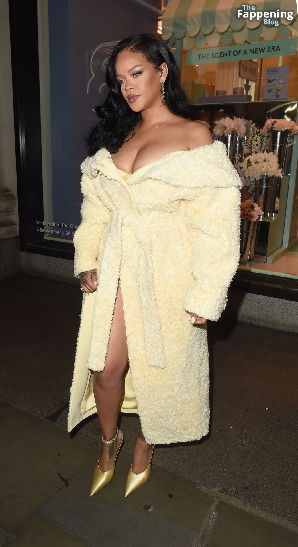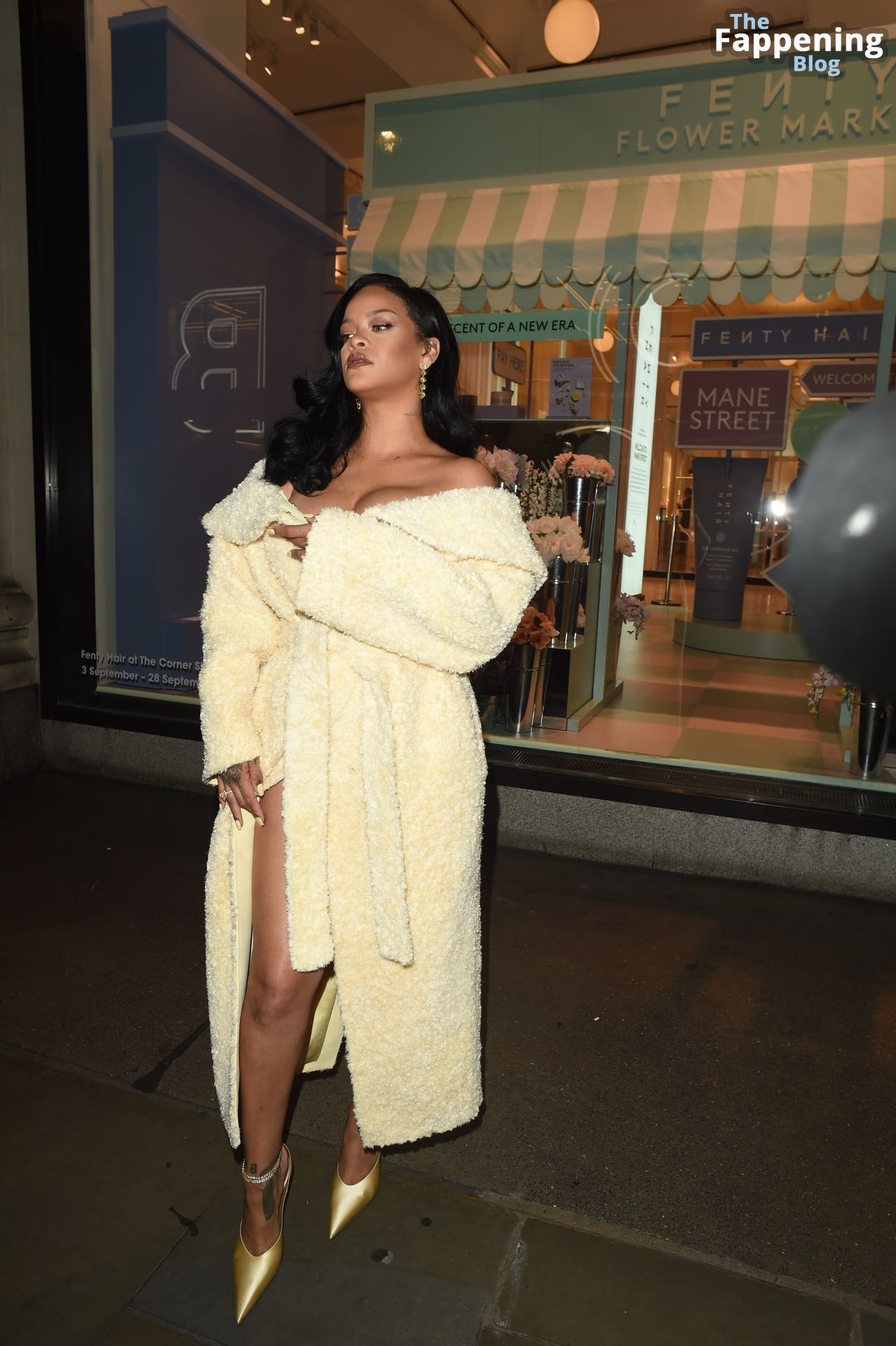 Rihanna llegó al lanzamiento en el Reino Unido de su nueva marca de cuidado capilar, Fenty Hair, en Selfridges en Londres. Hizo que toda la ciudad se emocionara con un atrevido conjunto que resaltaba su impresionante escote y sus sensuales piernas.