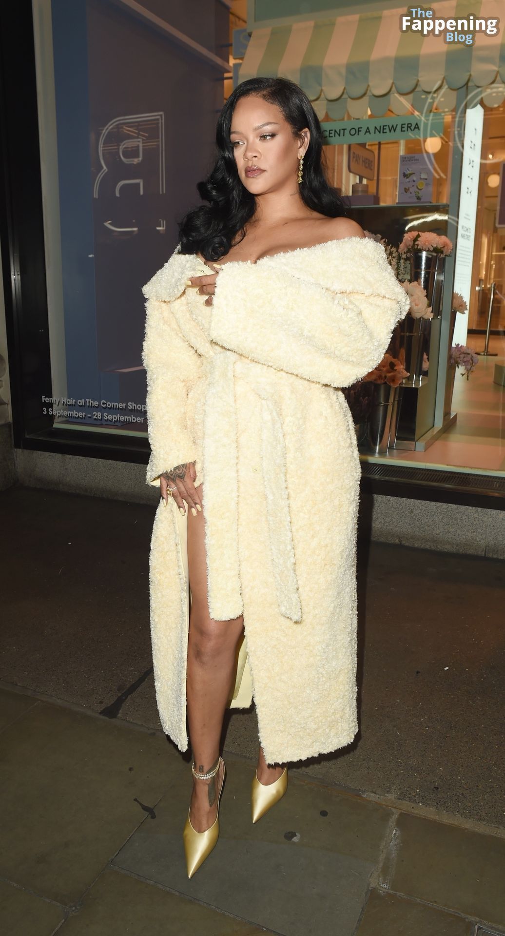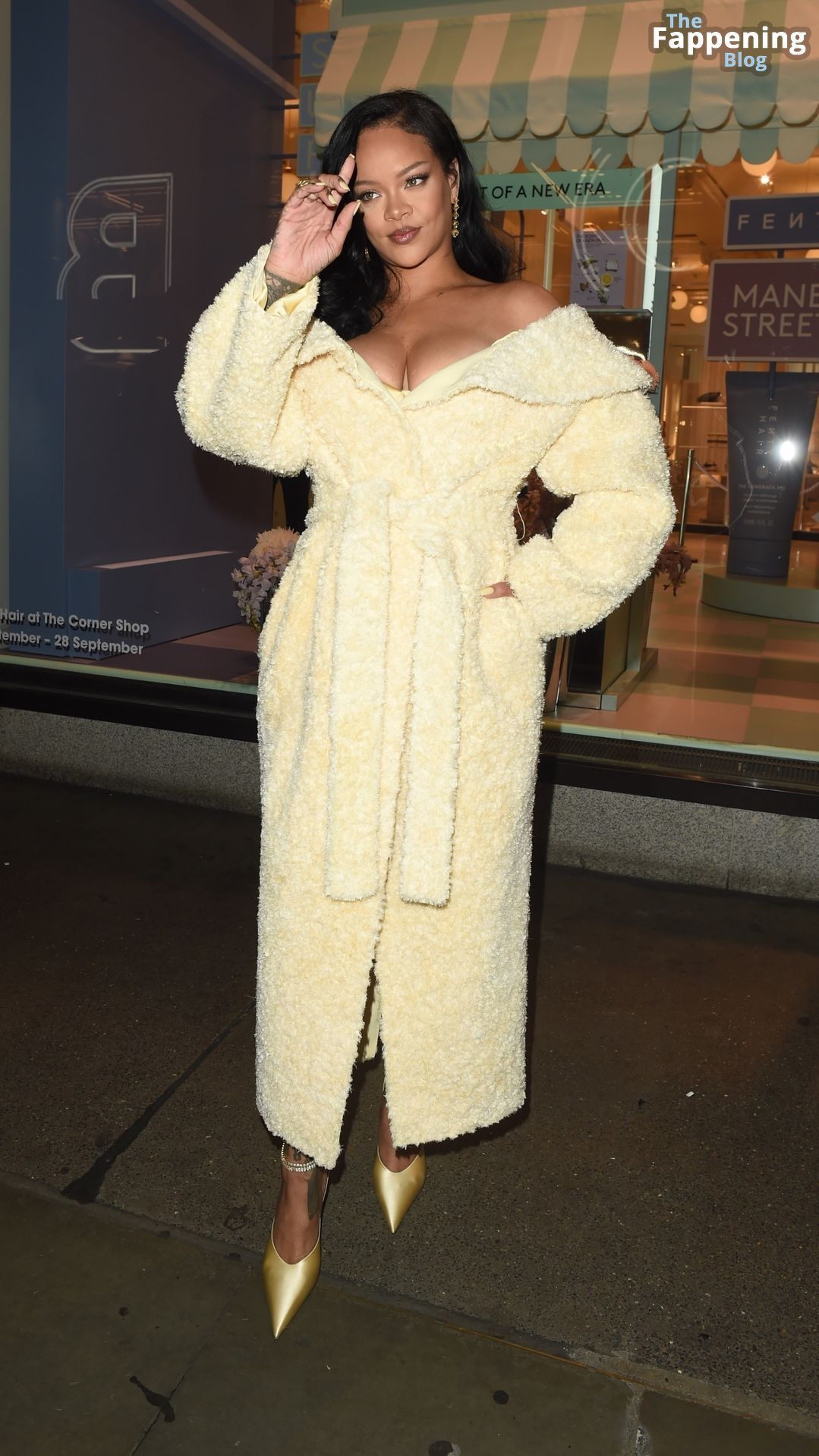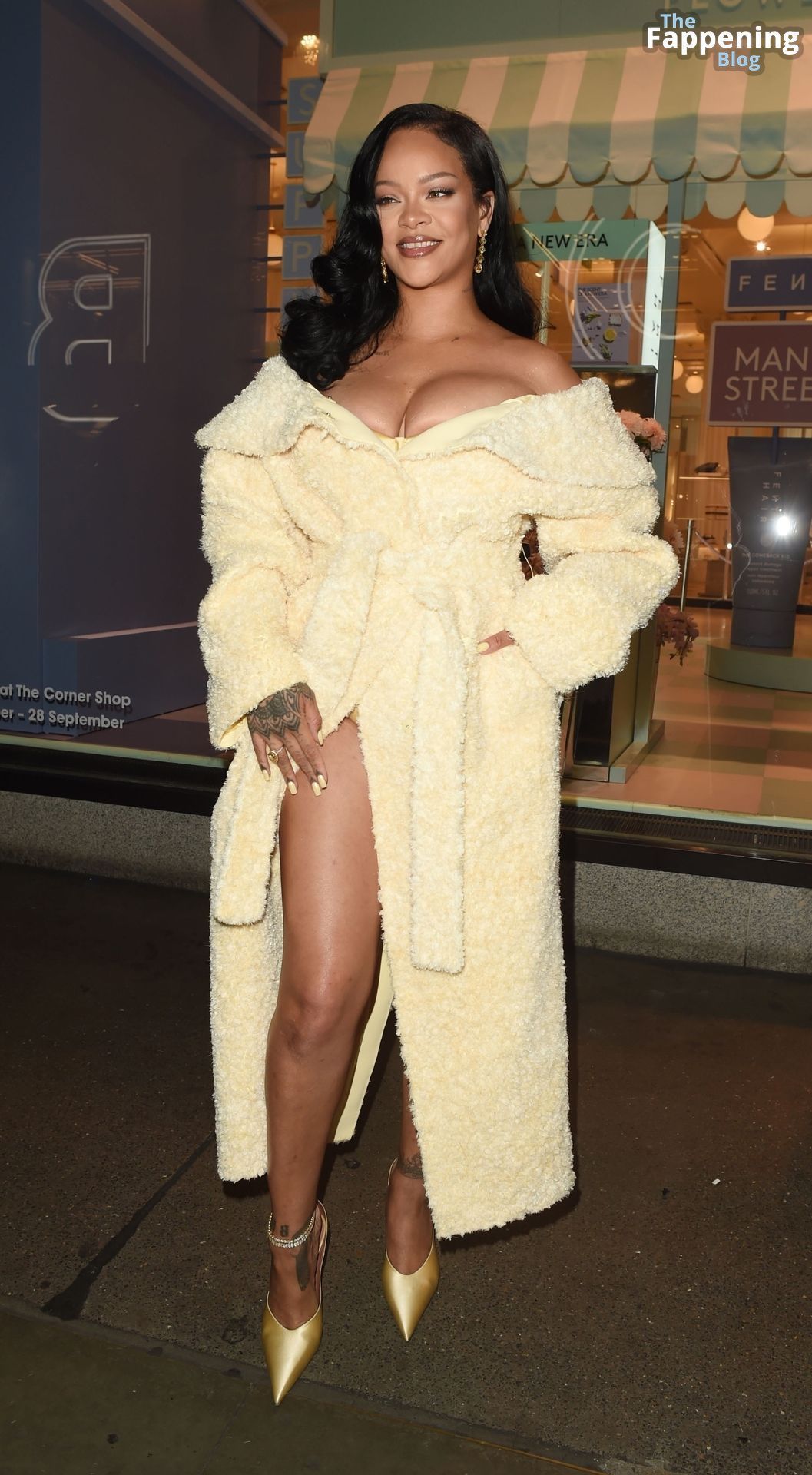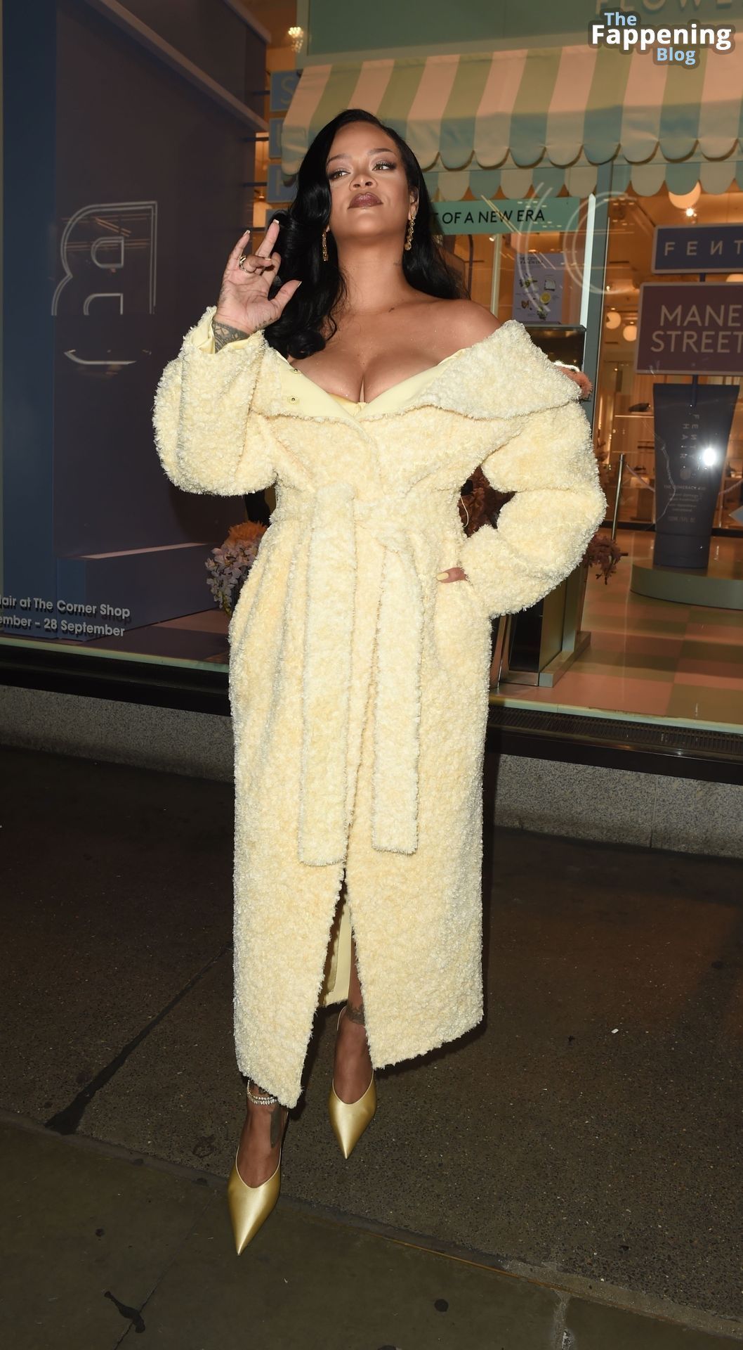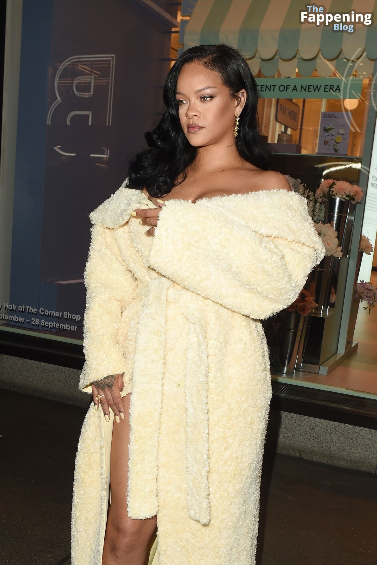 Rihanna llegó al lanzamiento en el Reino Unido de su nueva marca de cuidado capilar, Fenty Hair, en Selfridges en Londres. Hizo que toda la ciudad se emocionara con un atrevido conjunto que resaltaba su impresionante escote y sus sensuales piernas.