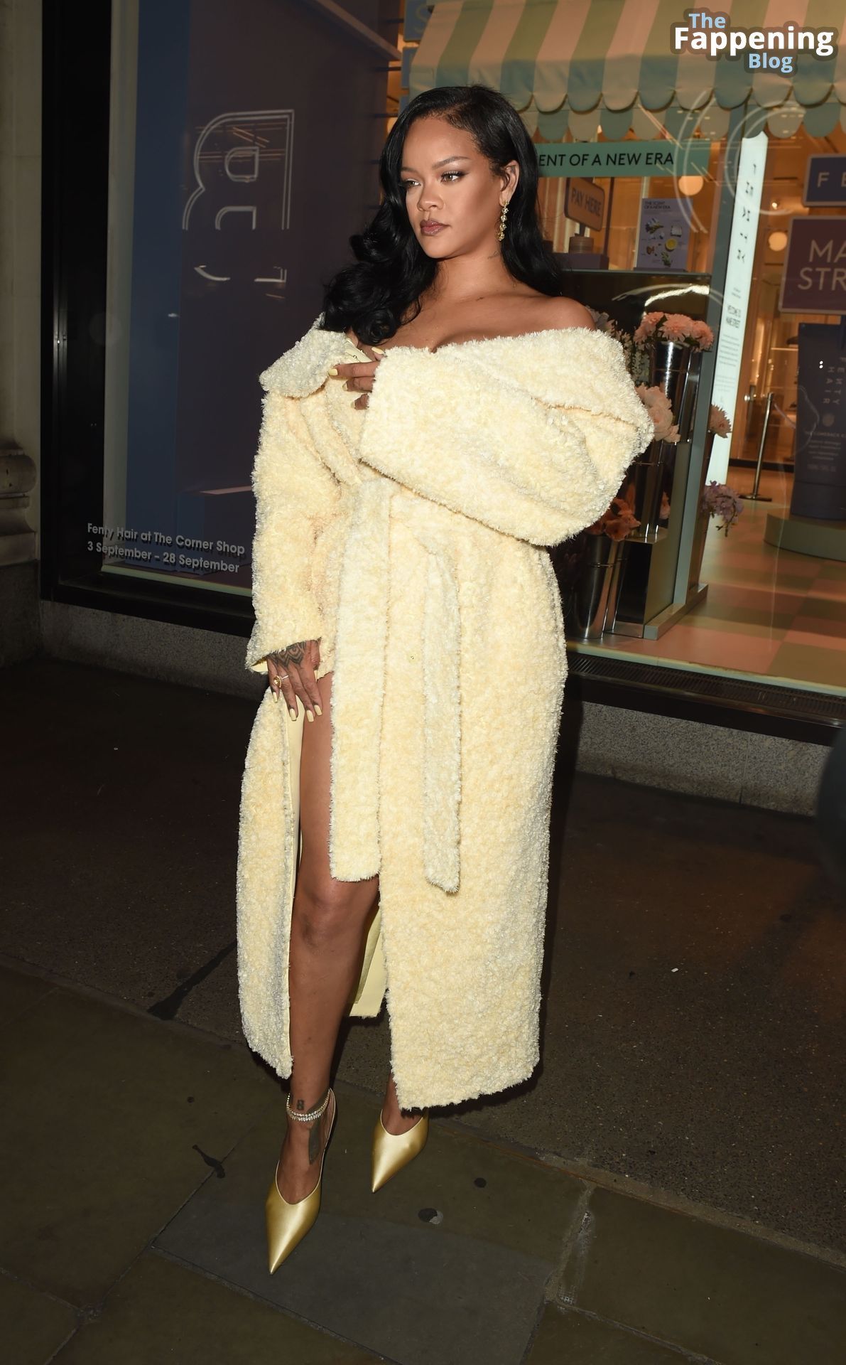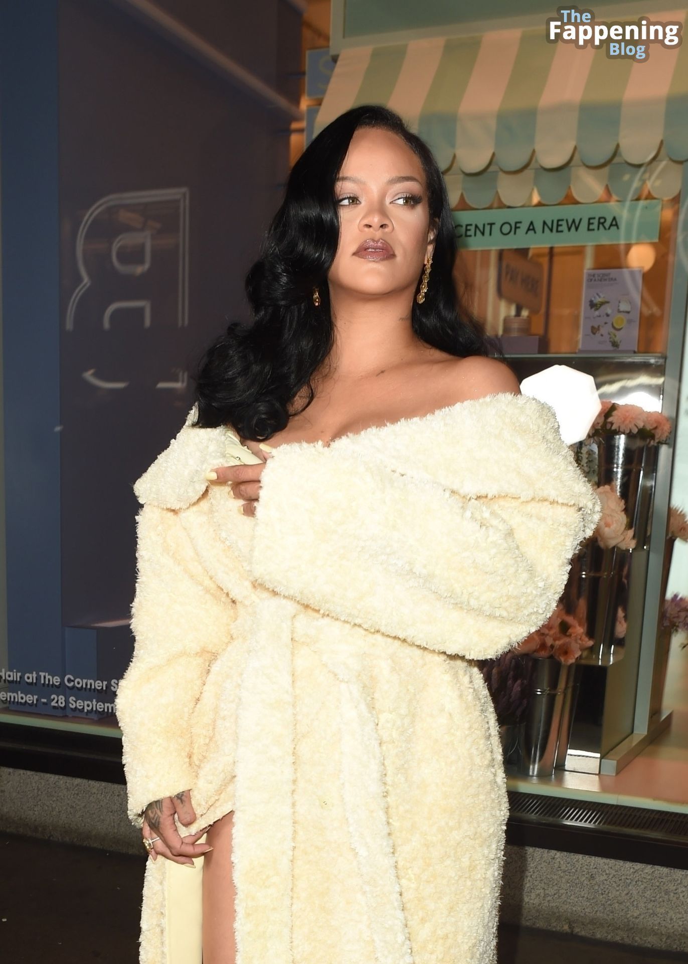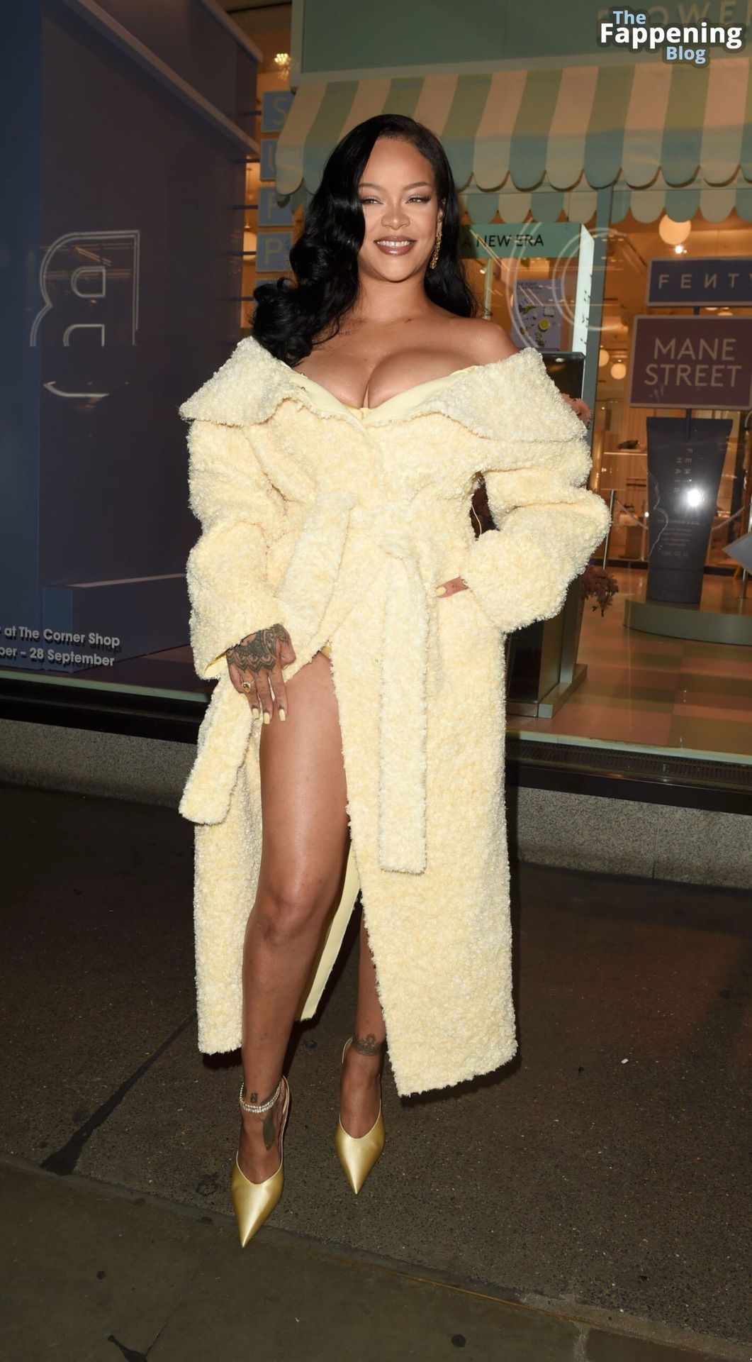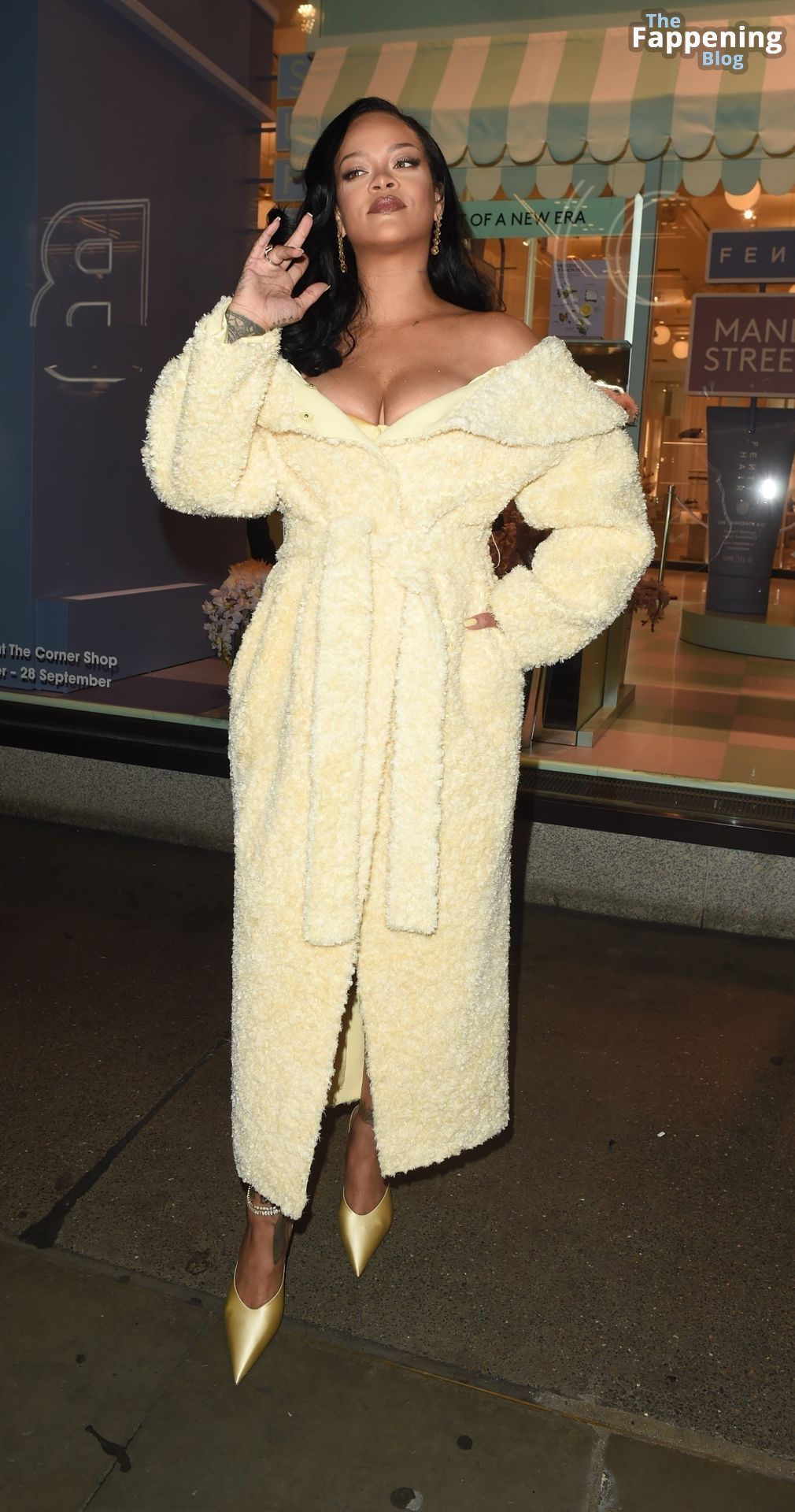 Rihanna llegó al lanzamiento en el Reino Unido de su nueva marca de cuidado capilar, Fenty Hair, en Selfridges en Londres. Hizo que toda la ciudad se emocionara con un atrevido conjunto que resaltaba su impresionante escote y sus sensuales piernas.