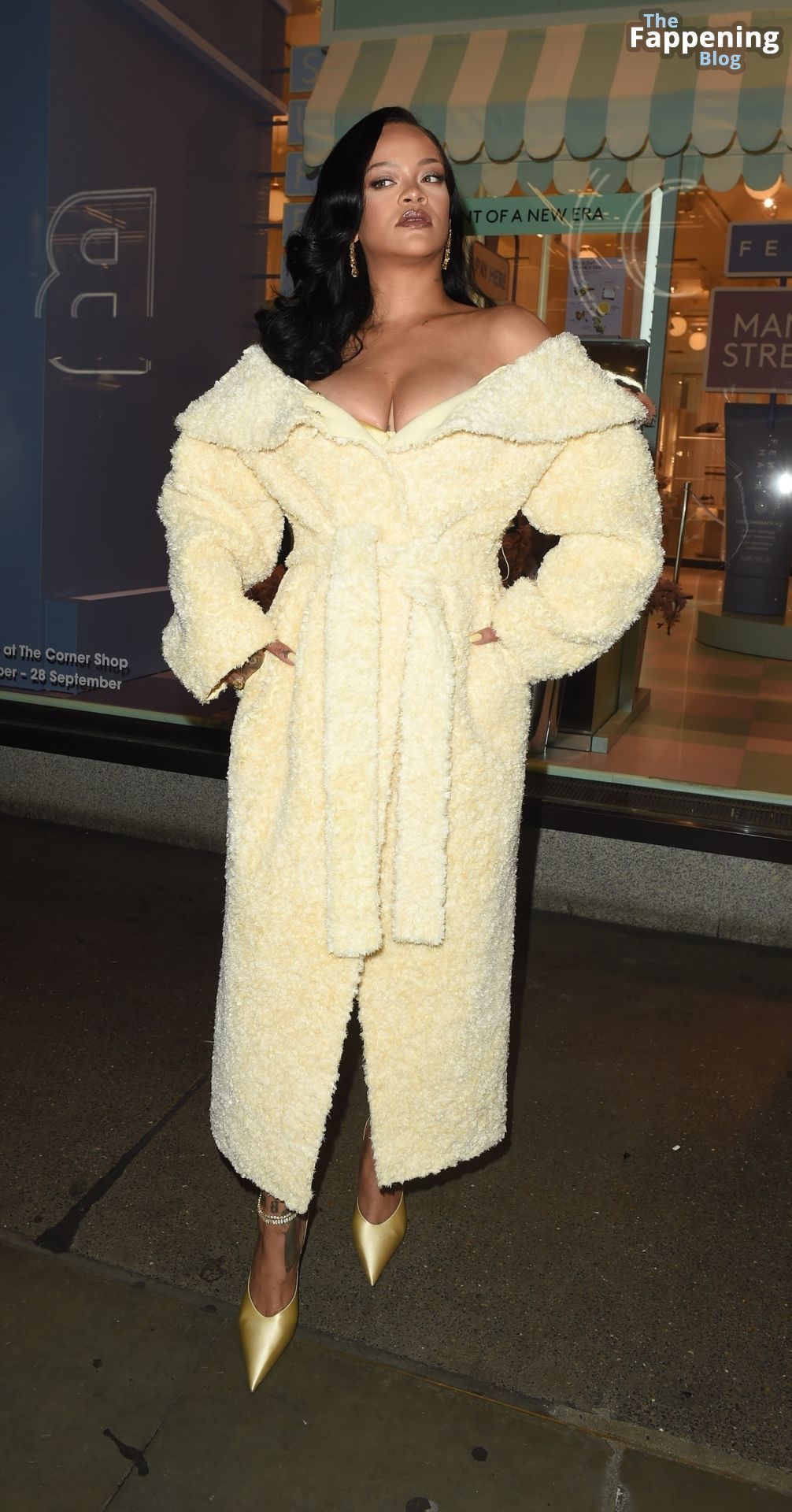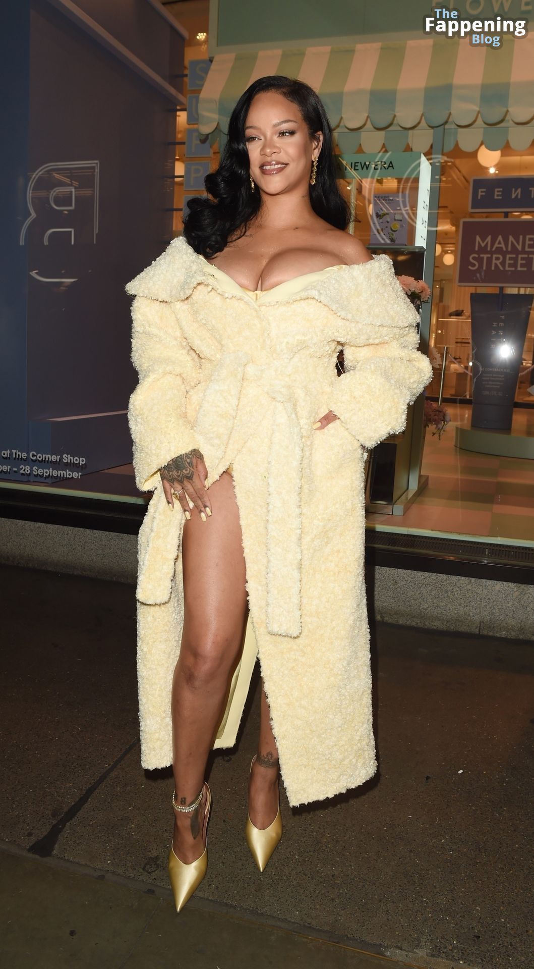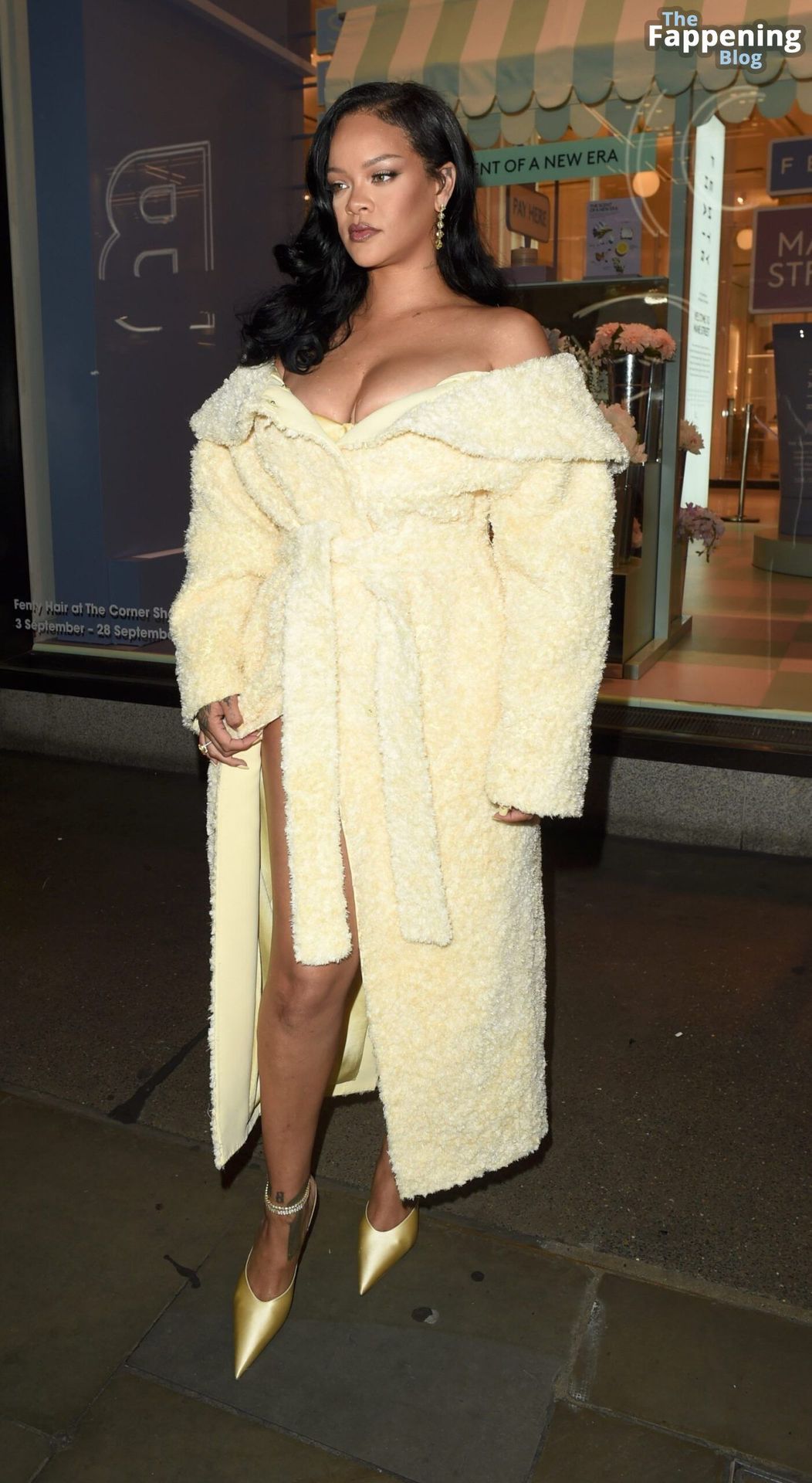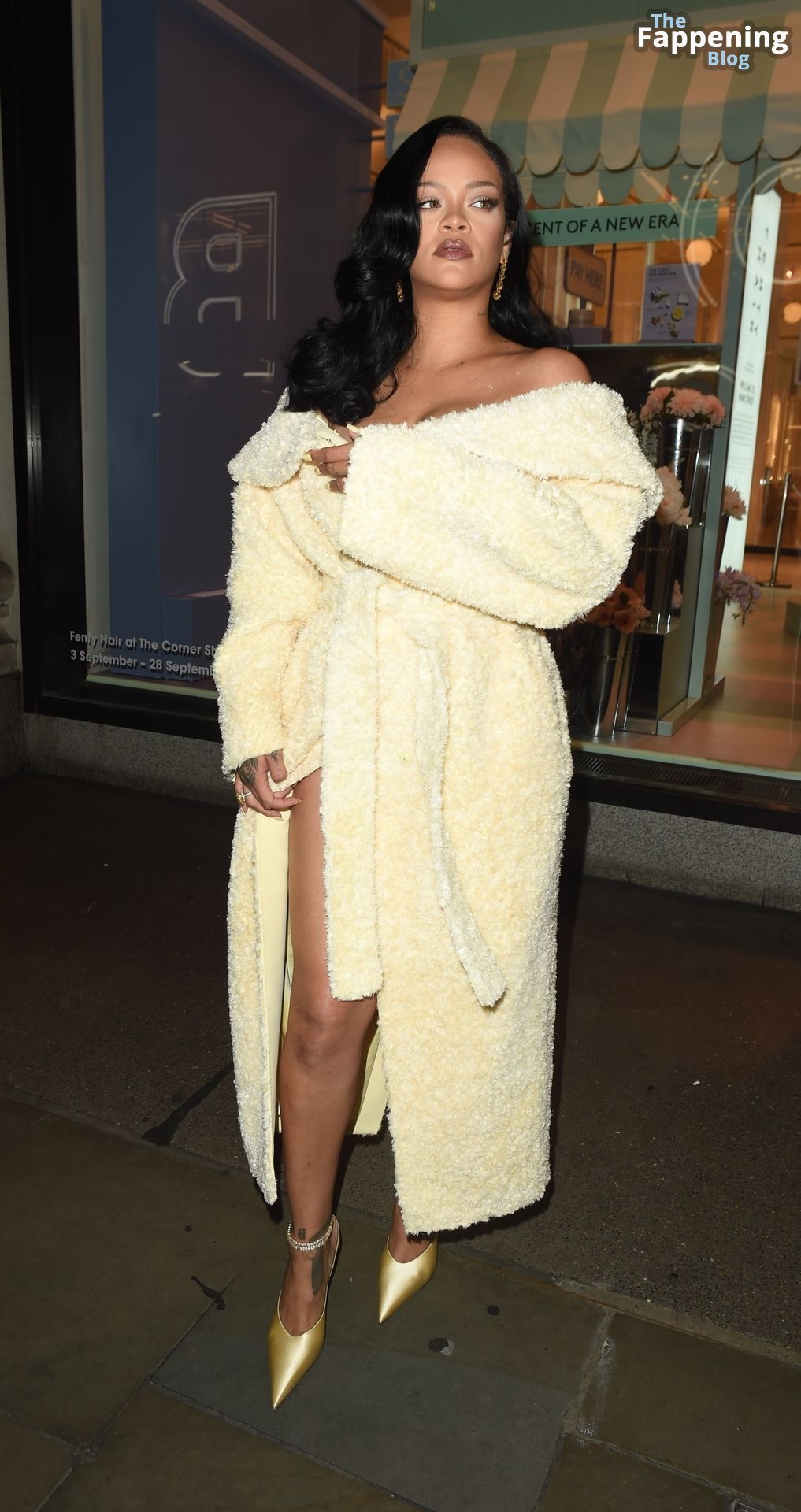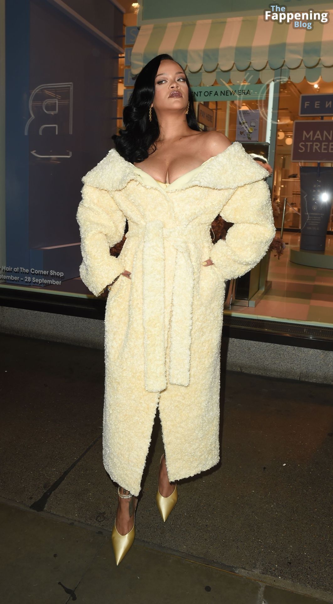 Rihanna llegó al lanzamiento en el Reino Unido de su nueva marca de cuidado capilar, Fenty Hair, en Selfridges en Londres. Hizo que toda la ciudad se emocionara con un atrevido conjunto que resaltaba su impresionante escote y sus sensuales piernas.