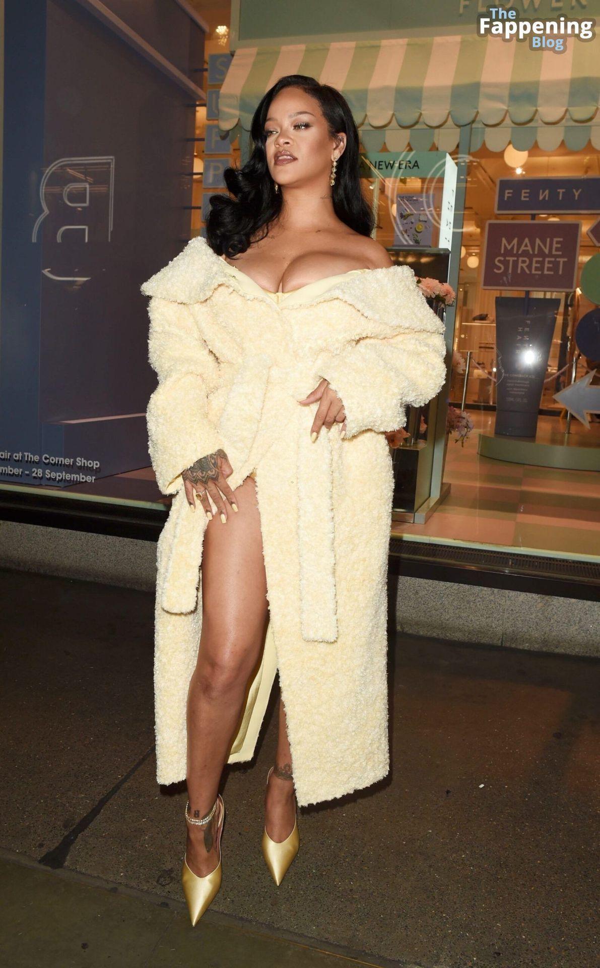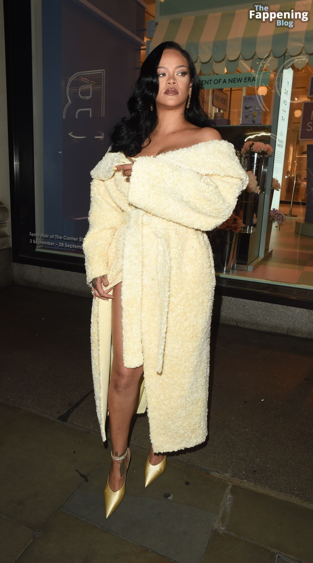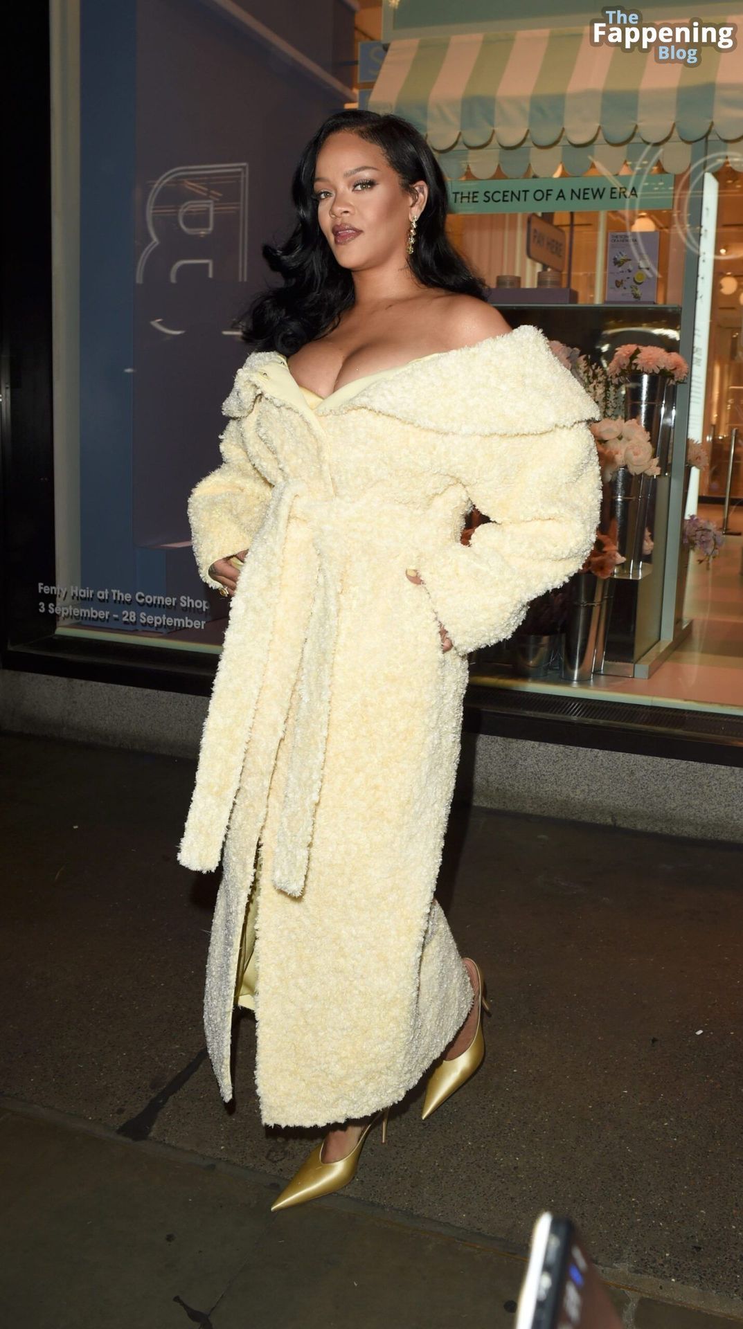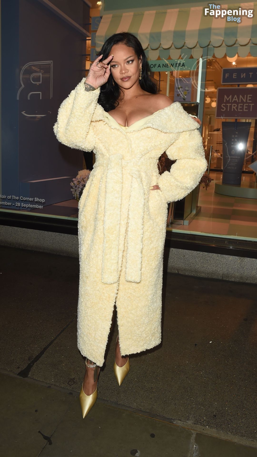Rihanna llegó al lanzamiento en el Reino Unido de su nueva marca de cuidado capilar, Fenty Hair, en Selfridges en Londres. Hizo que toda la ciudad se emocionara con un atrevido conjunto que resaltaba su impresionante escote y sus sensuales piernas.