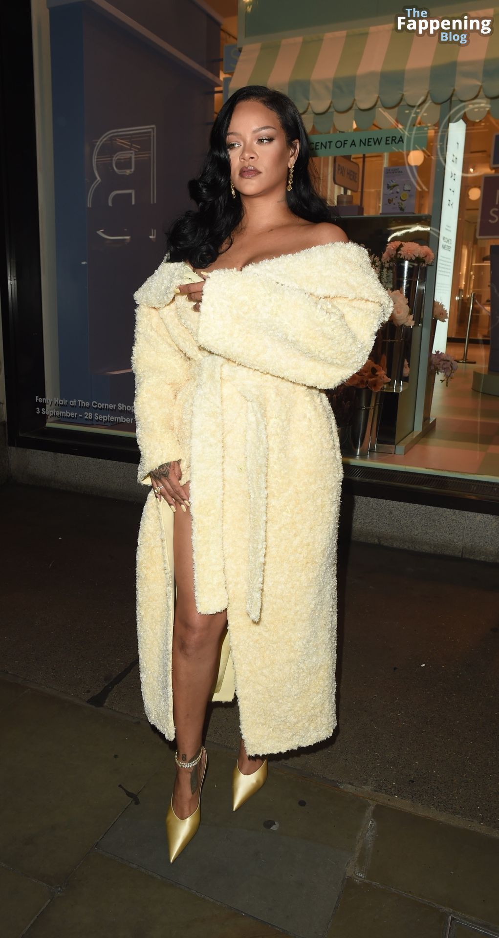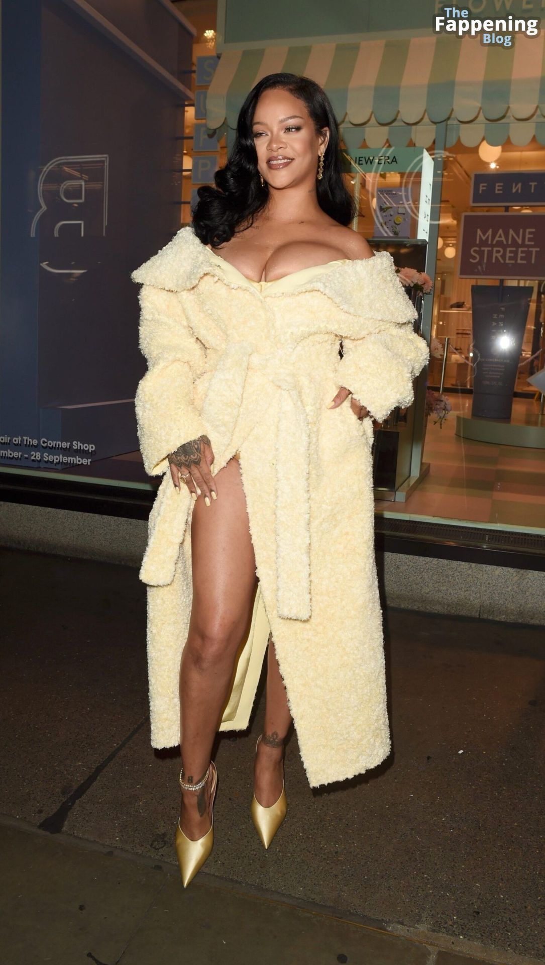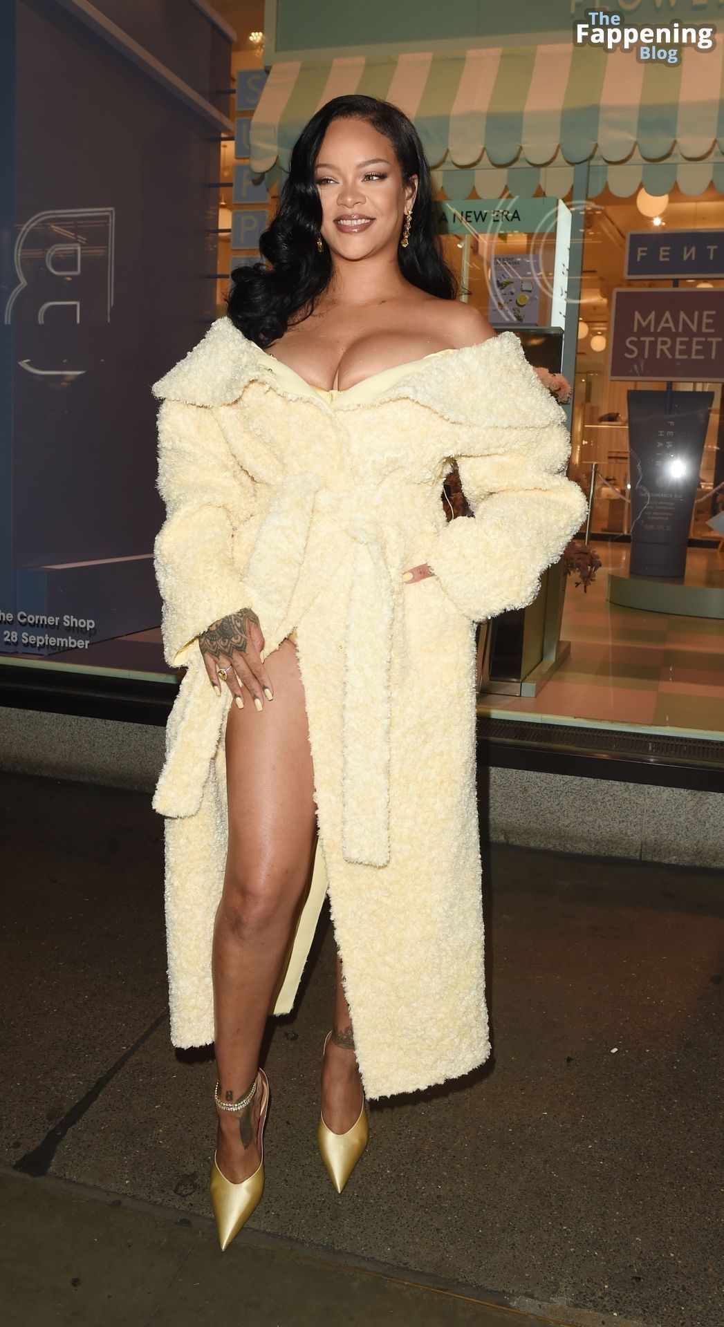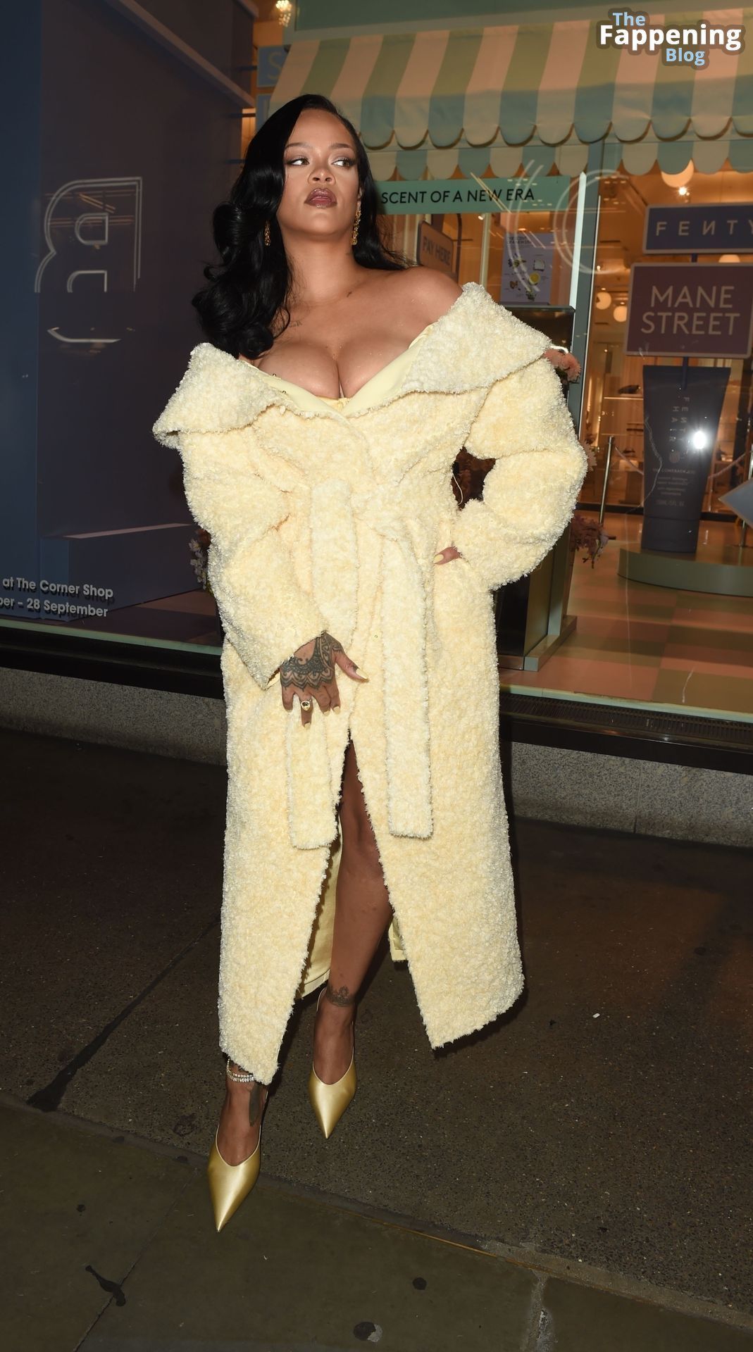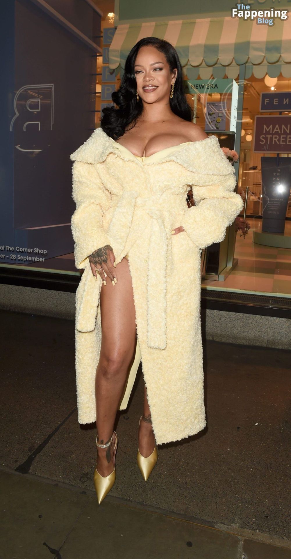Rihanna llegó al lanzamiento en el Reino Unido de su nueva marca de cuidado capilar, Fenty Hair, en Selfridges en Londres. Hizo que toda la ciudad se emocionara con un atrevido conjunto que resaltaba su impresionante escote y sus sensuales piernas.