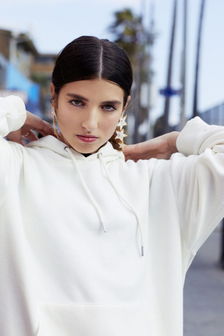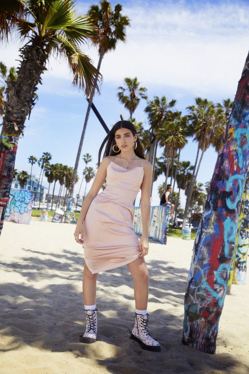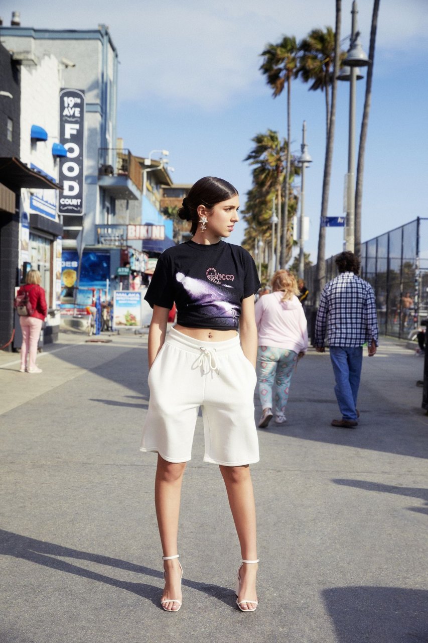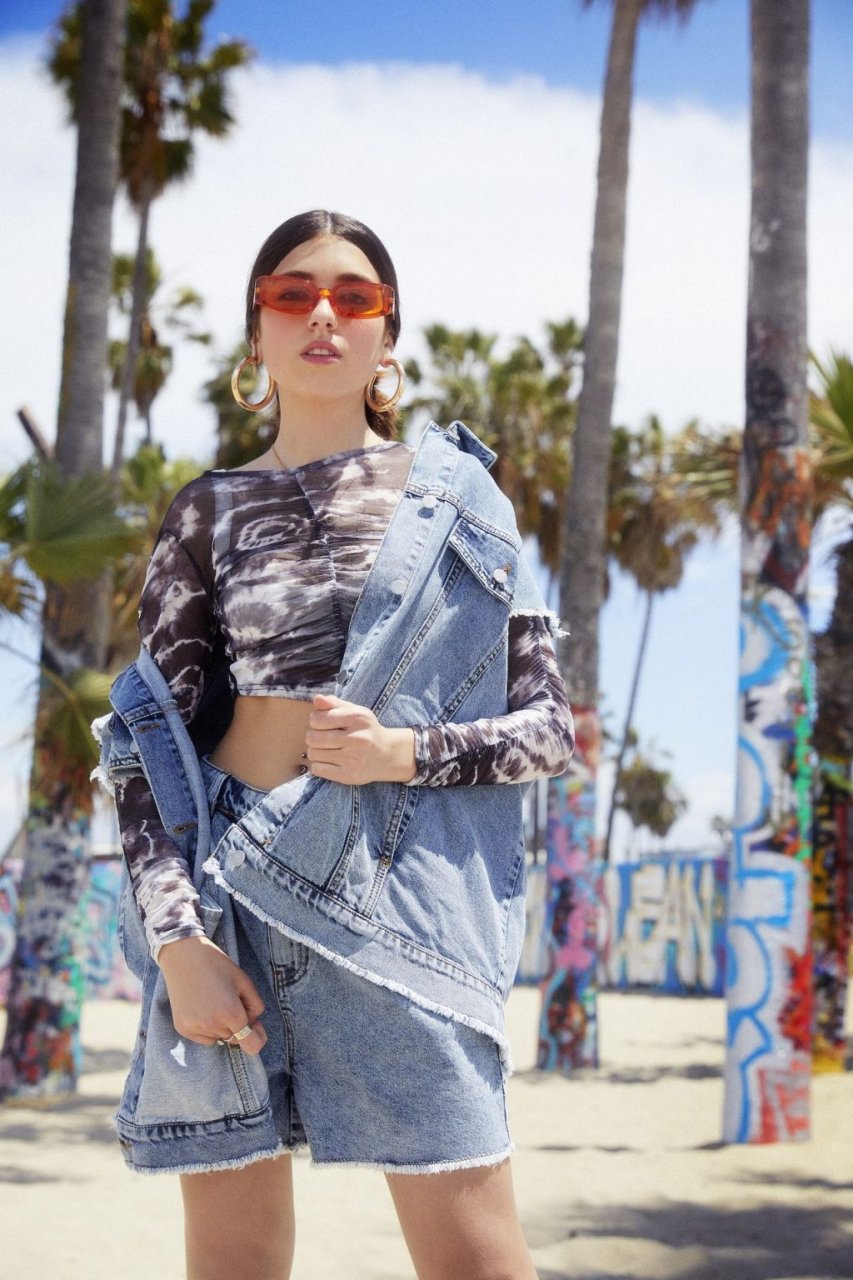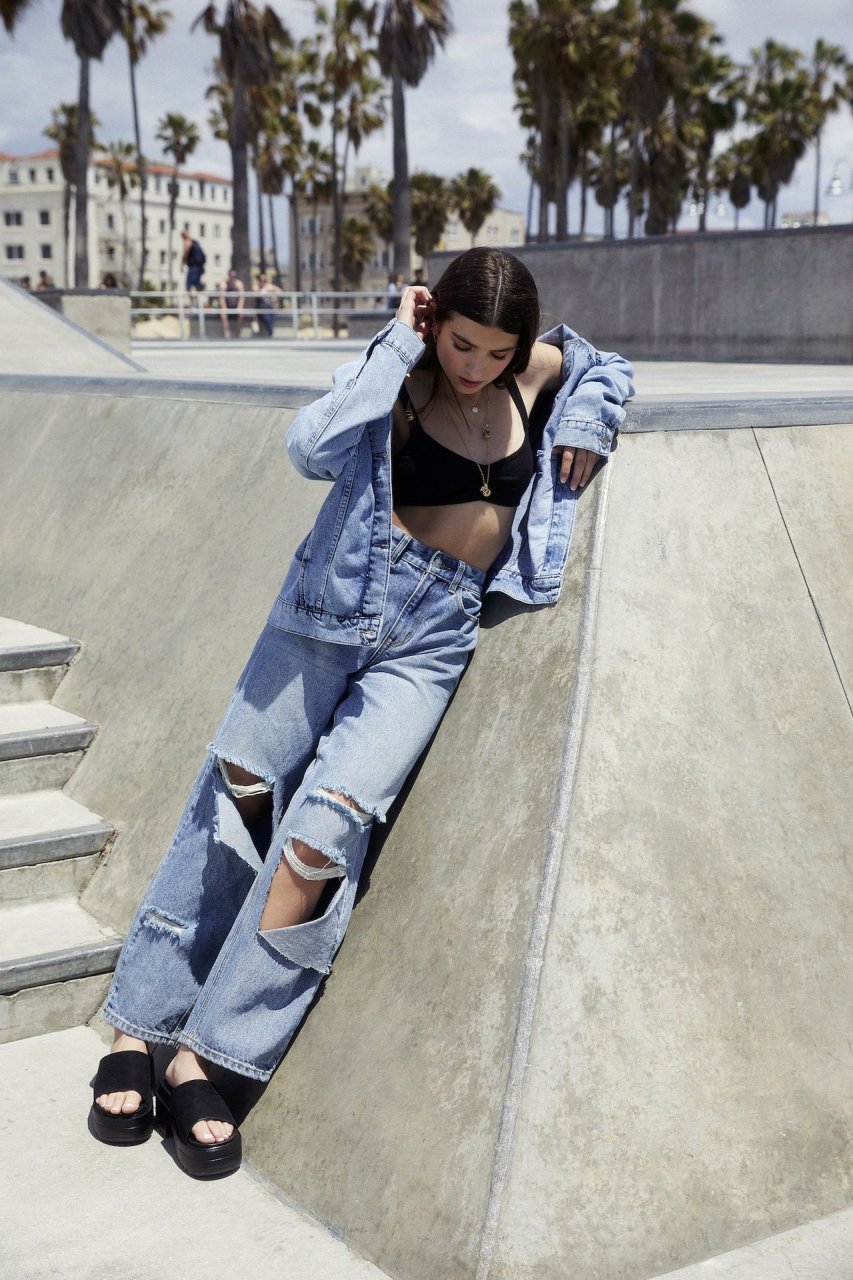 Rina Lipa deslumbra en una sesión de fotos en Venice Beach para Nasty Gal para mostrar su nueva colección de verano con el minorista de ropa en línea (2019). La aspirante a actriz y modelo de 18 años, y hermana de la cantante ganadora del Grammy Dua Lipa, luce el papel en una serie de looks que incluyen mezclilla rasgada y sujetadores expuestos contra el telón de fondo del emblemático lugar junto a la playa.