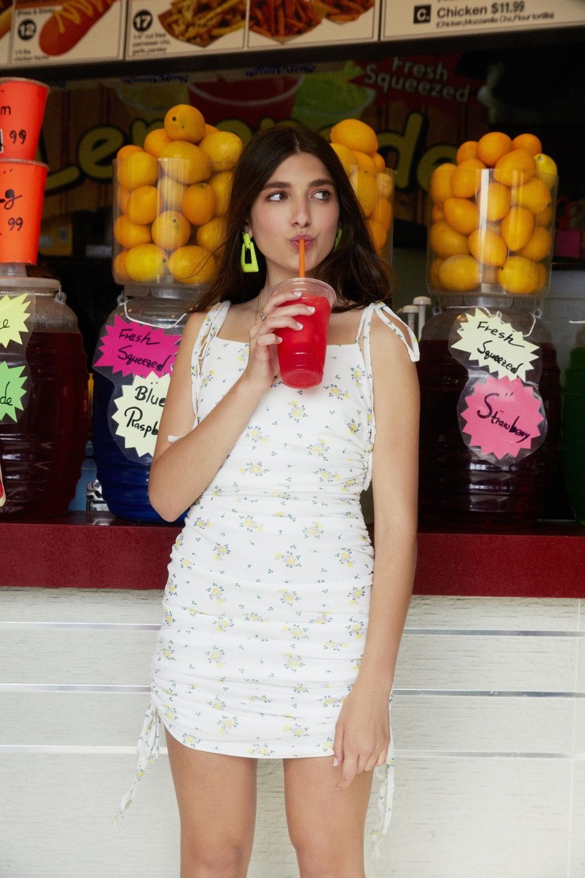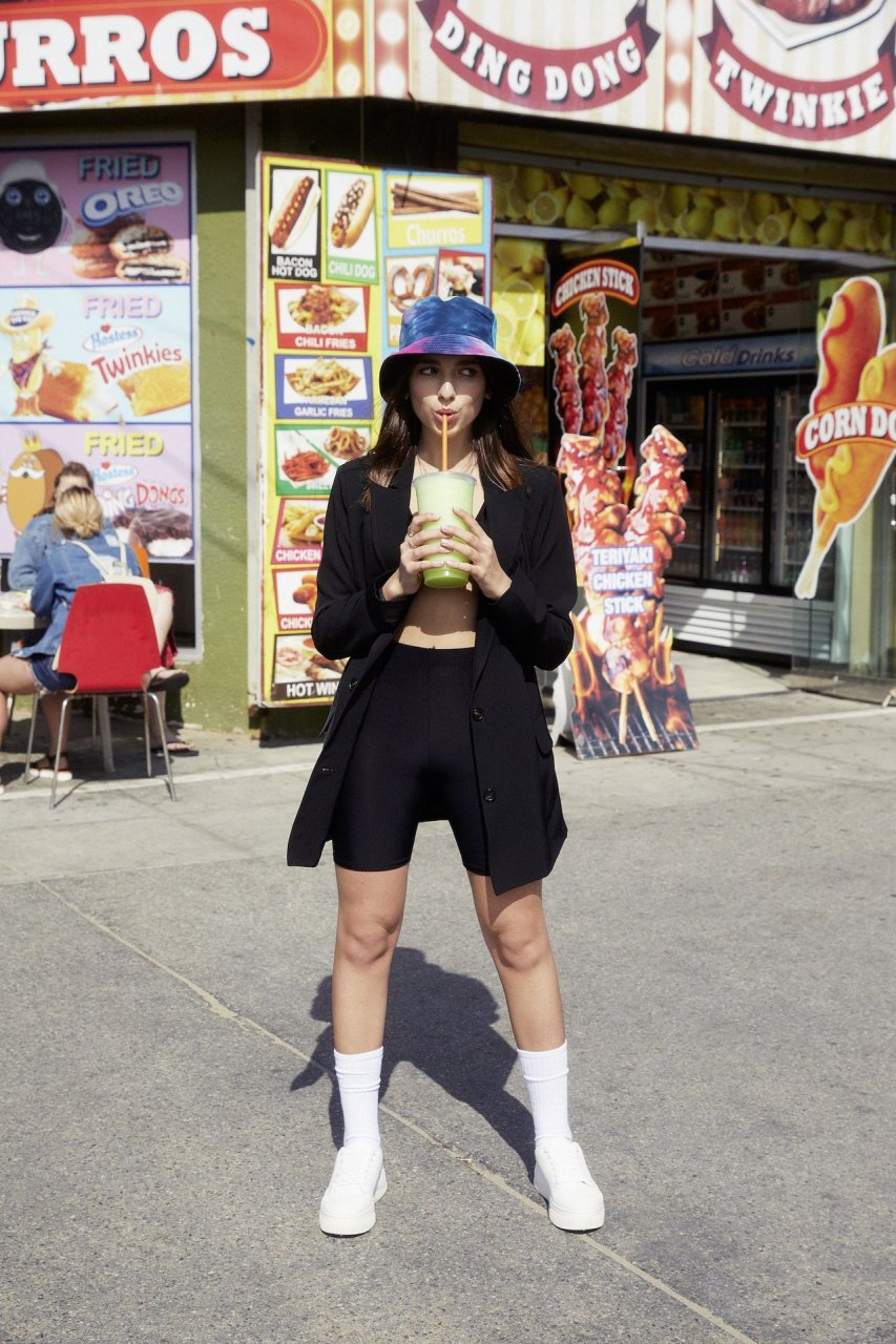 La colección de verano 2019 está inspirada en el estilo relajado de Rina e incluye ropa andrógina de gran tamaño, junto con pantalones cortos de ciclista casuales, camisetas, tops de malla cortos y minivestidos bordados con flores.