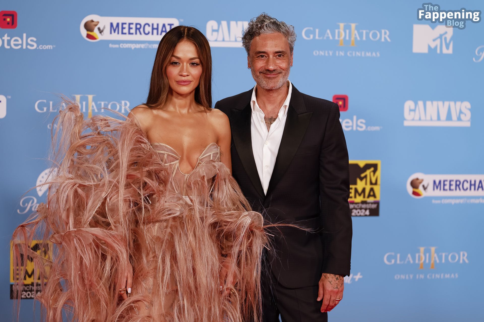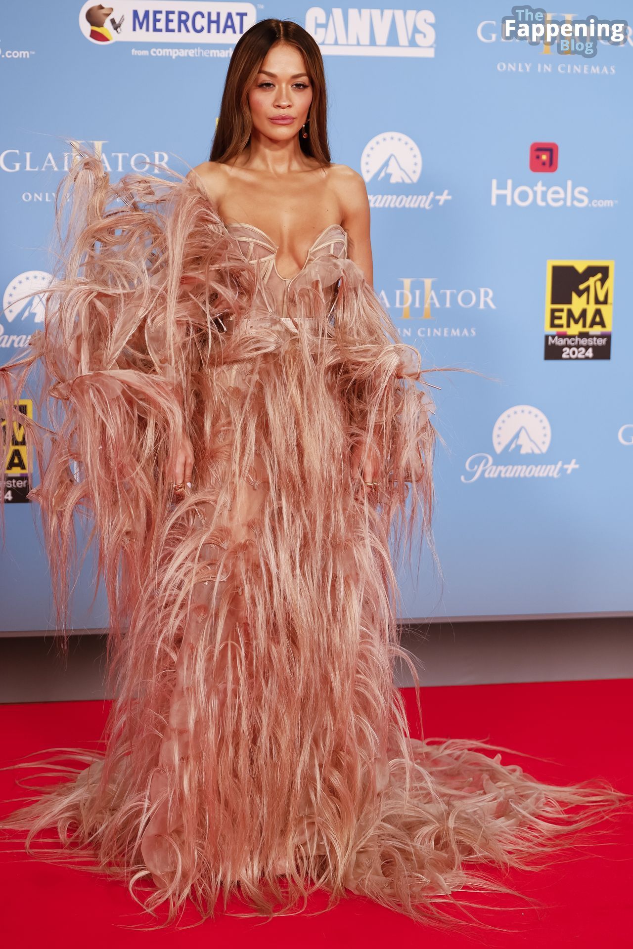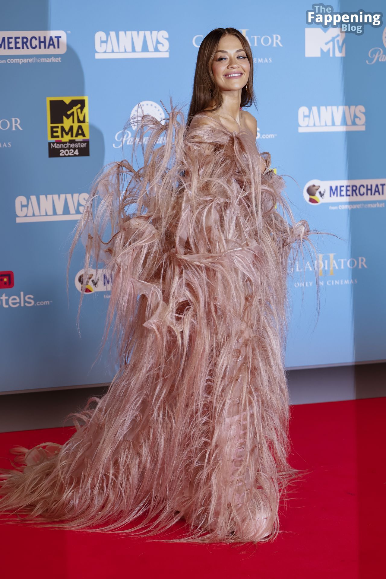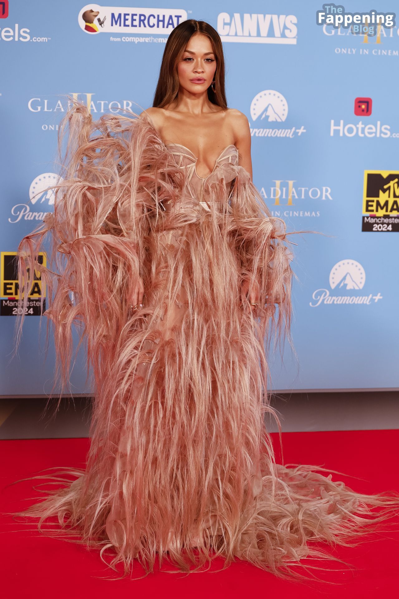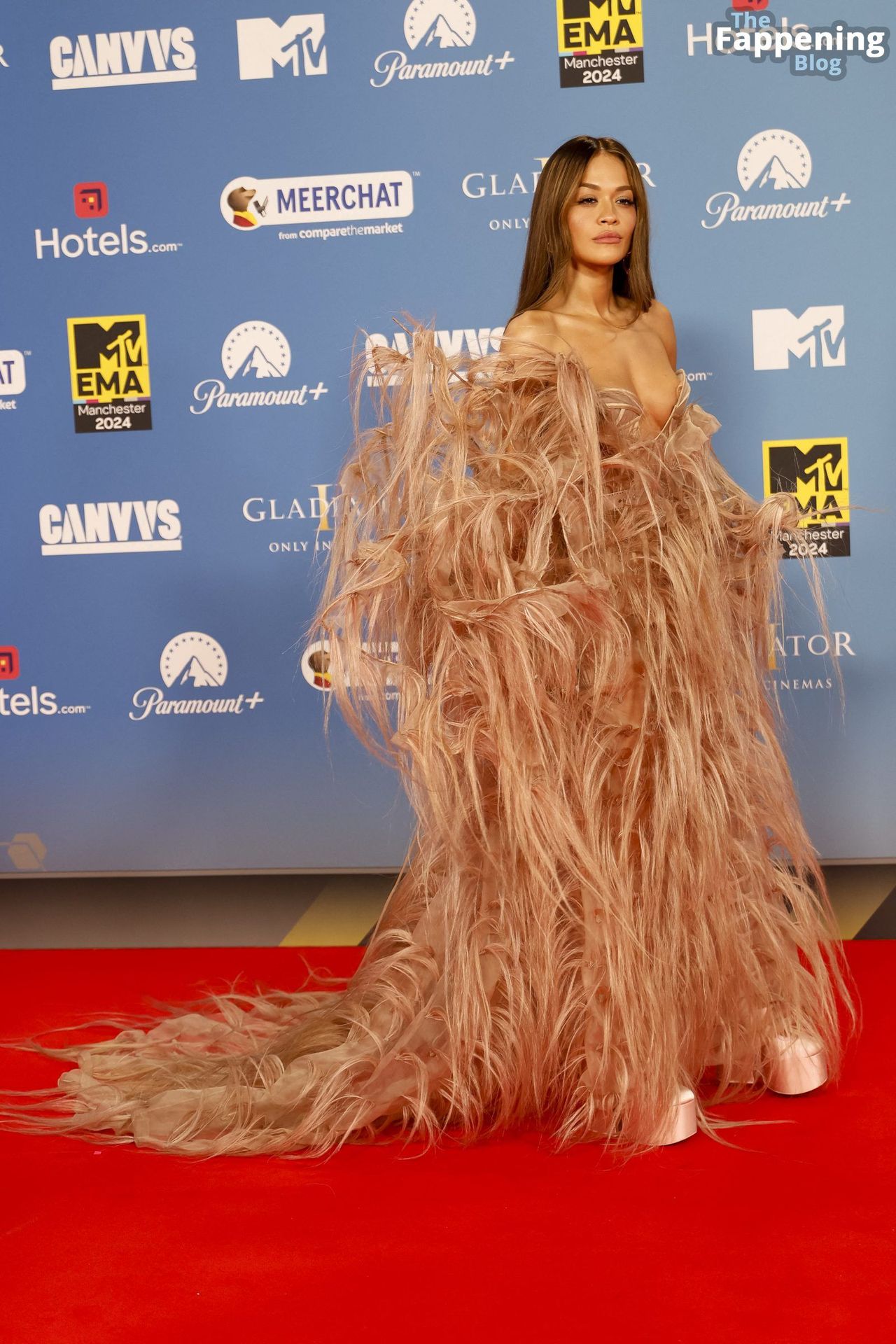 Rita Ora deslumbra con su profundo escote y vestido de plumas en los MTV EMAs 2024 en el Co-op Live Arena de Manchester, aportando una mezcla de glamour y sensualidad con un atrevido look en la alfombra roja.