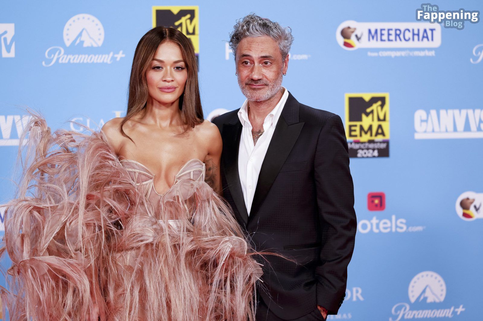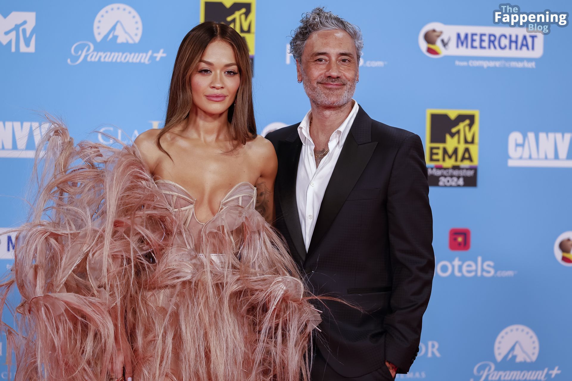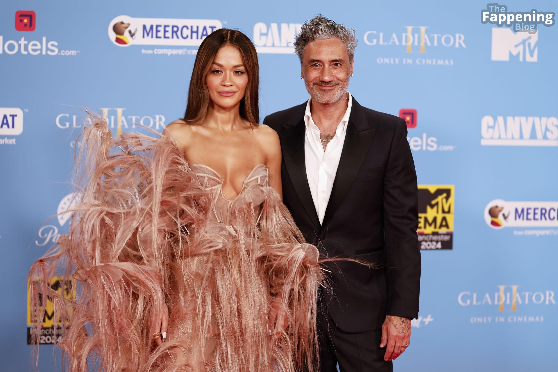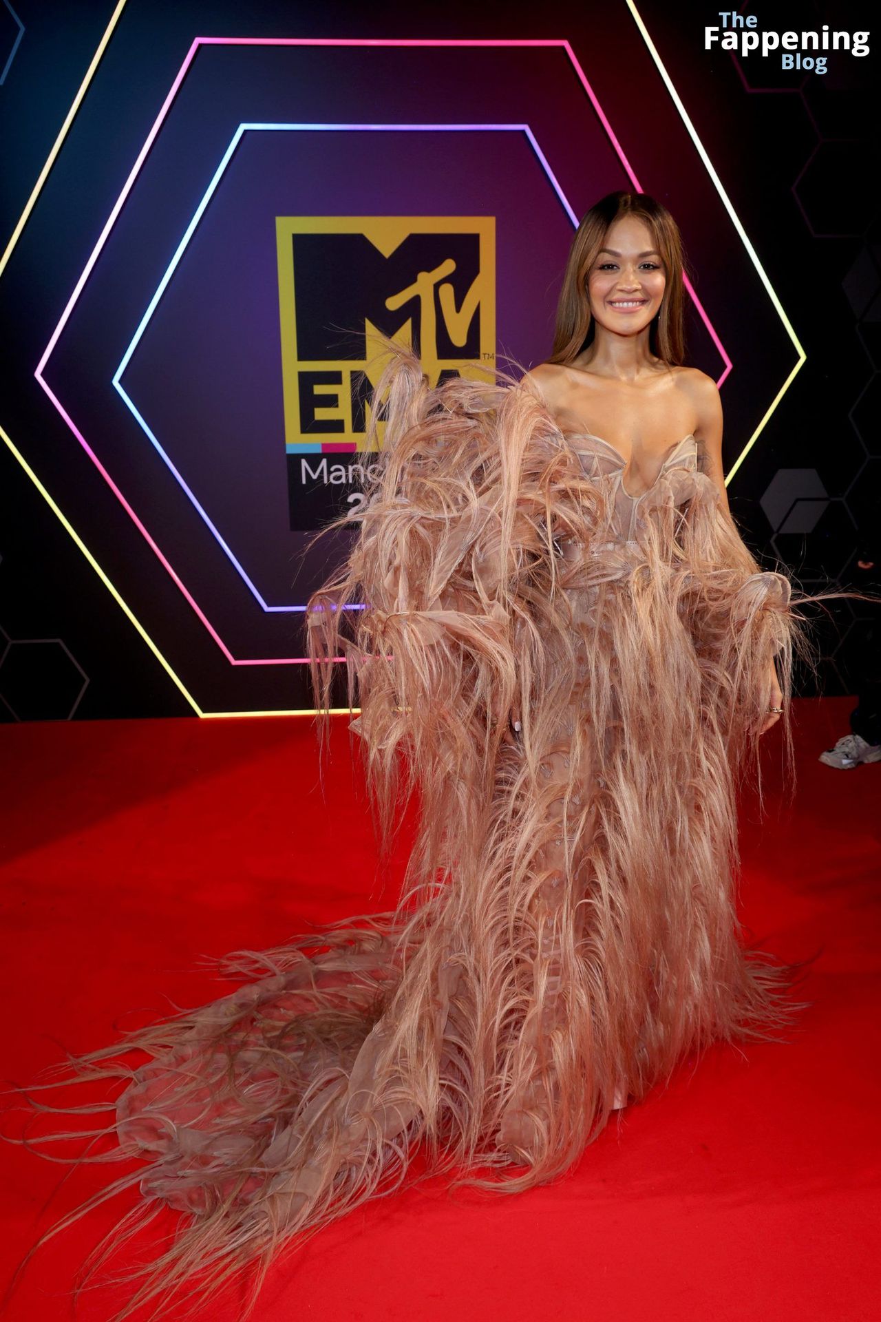 Rita Ora deslumbra con su profundo escote y vestido de plumas en los MTV EMAs 2024 en el Co-op Live Arena de Manchester, aportando una mezcla de glamour y sensualidad con un atrevido look en la alfombra roja.