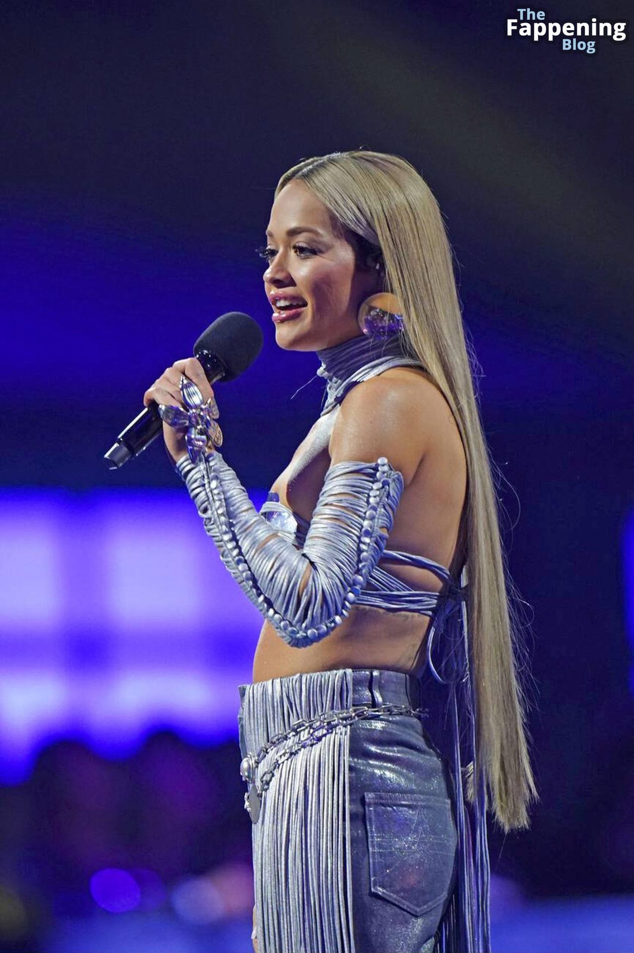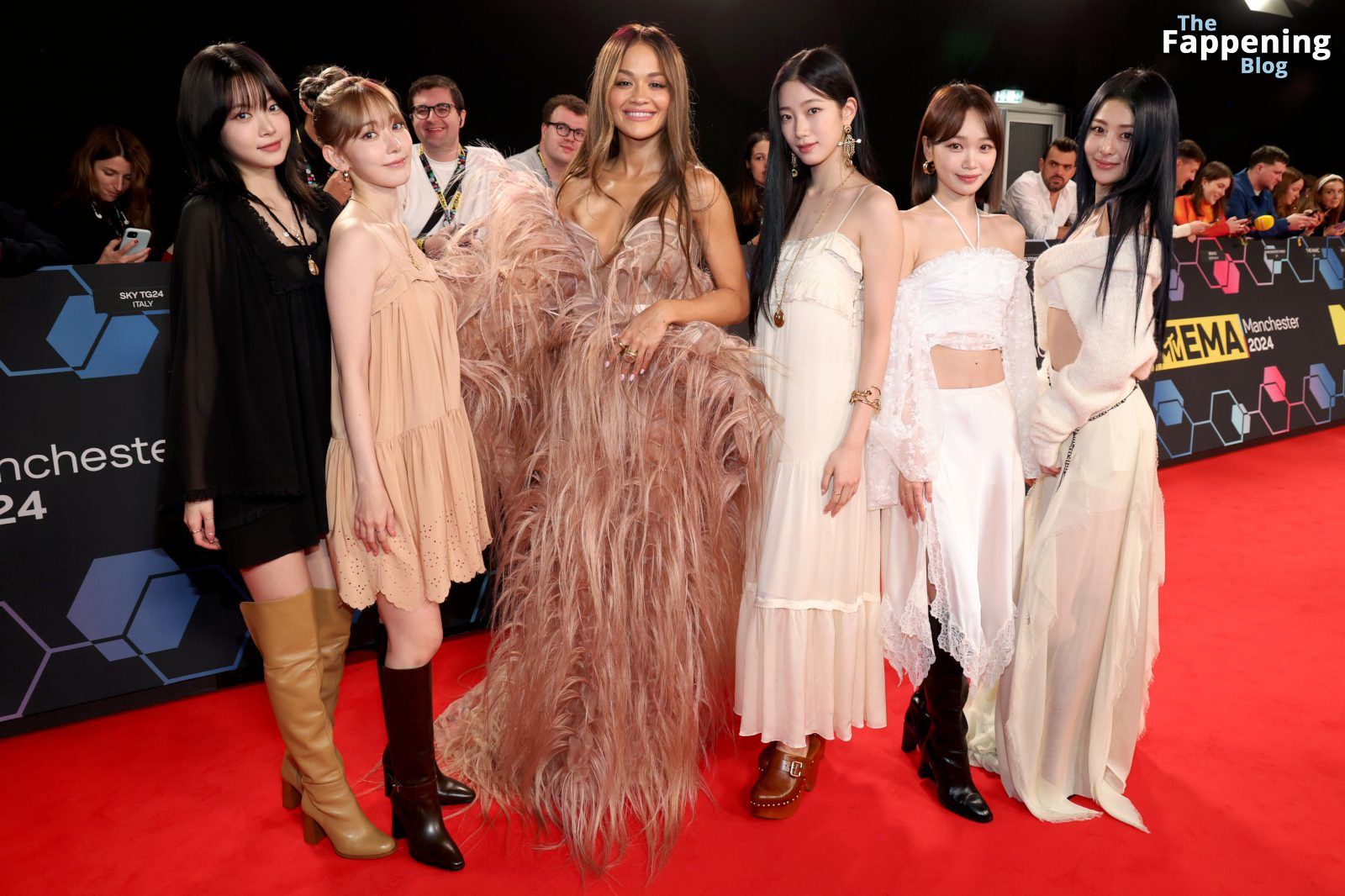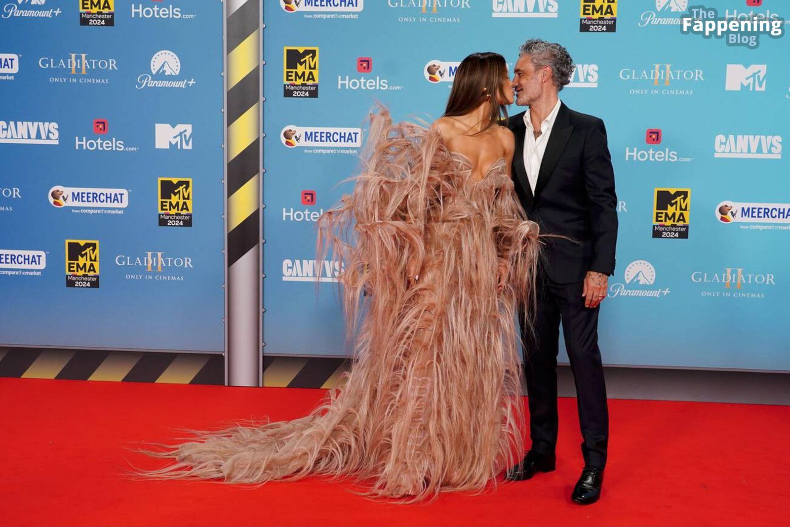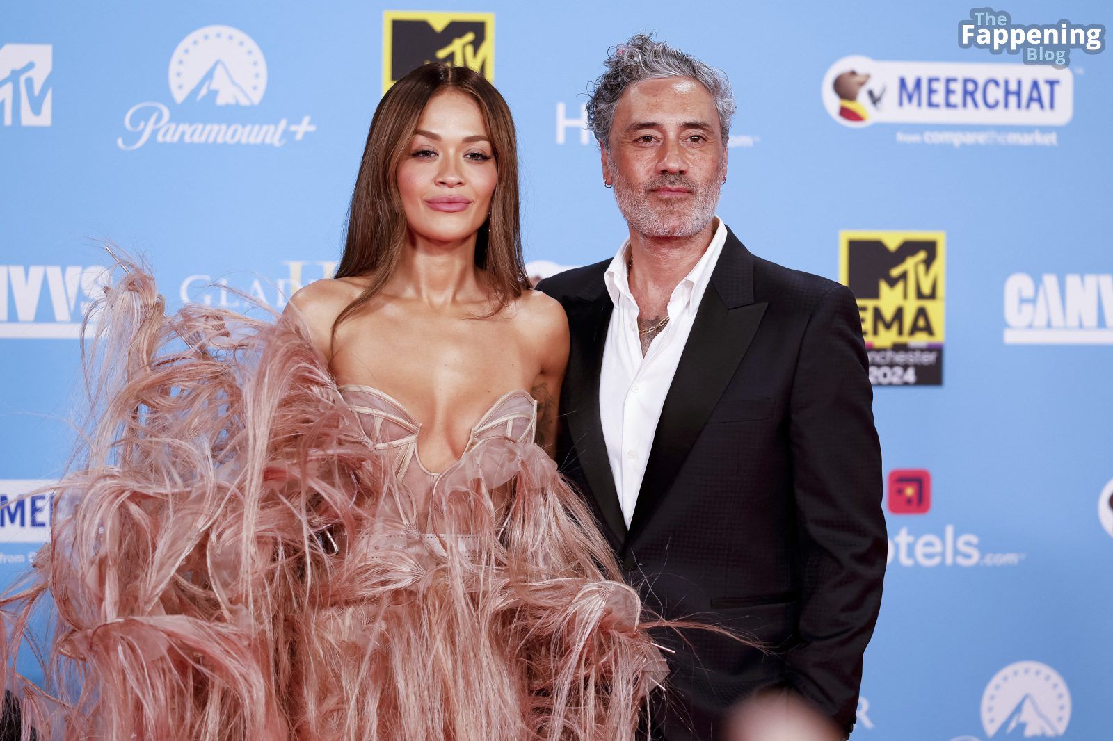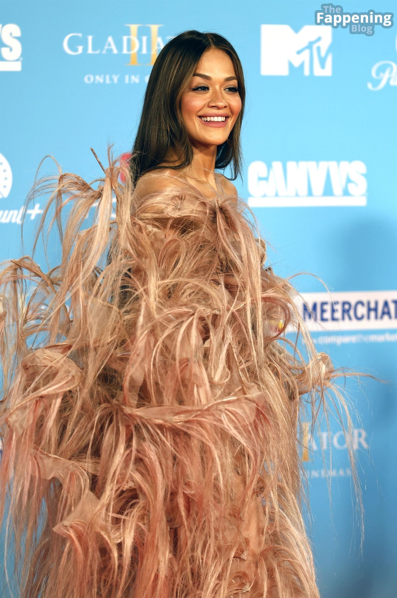 Rita Ora deslumbra con su profundo escote y vestido de plumas en los MTV EMAs 2024 en el Co-op Live Arena de Manchester, aportando una mezcla de glamour y sensualidad con un atrevido look en la alfombra roja.