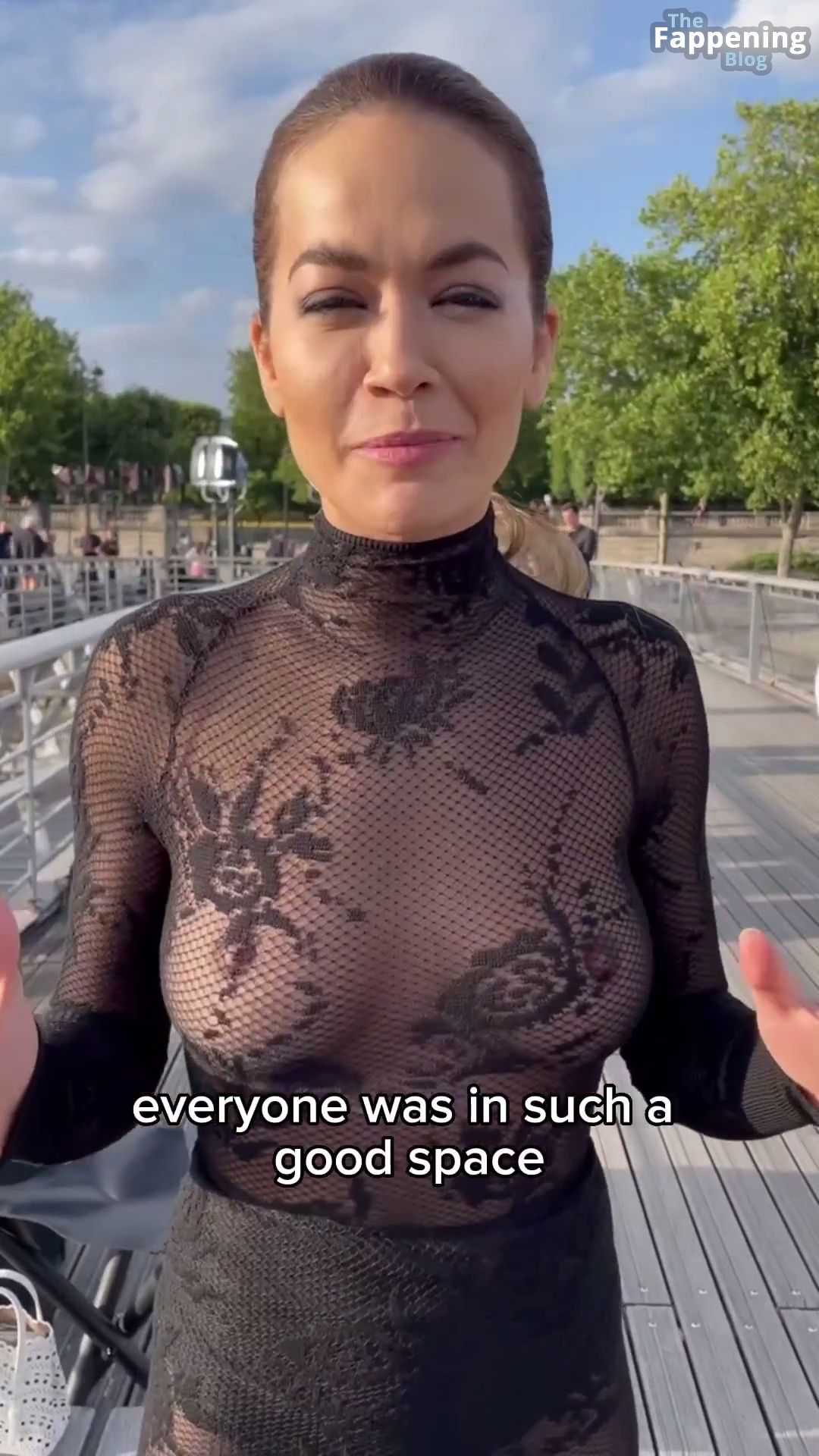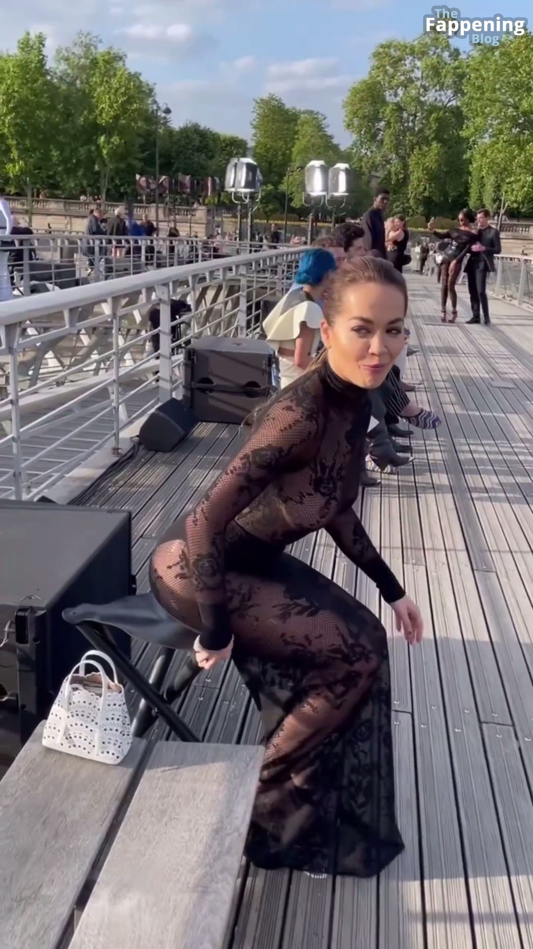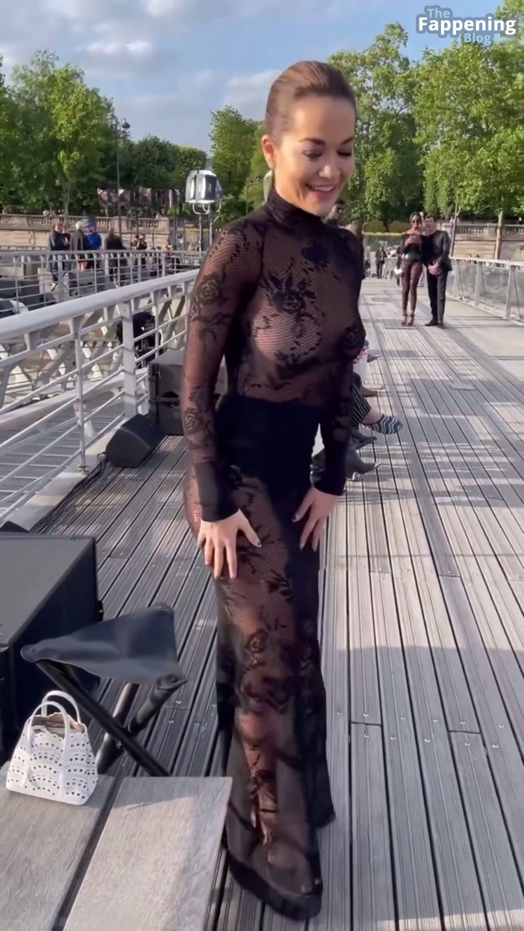 Durante el desfile, Rita se sentó en primera fila junto a la legendaria Anna Wintour de Vogue. Su atuendo impresionante aseguró que todas las miradas estuvieran sobre ella. Ah, y por cierto, la nueva canción de Rita, “Don’t Think Twice”, trata sobre tomar riesgos románticos y vivir el momento sin preocuparse por las consecuencias. Parece que Rita estaba en esa onda cuando se puso ese vestido transparente y mostró su cuerpo desnudo.