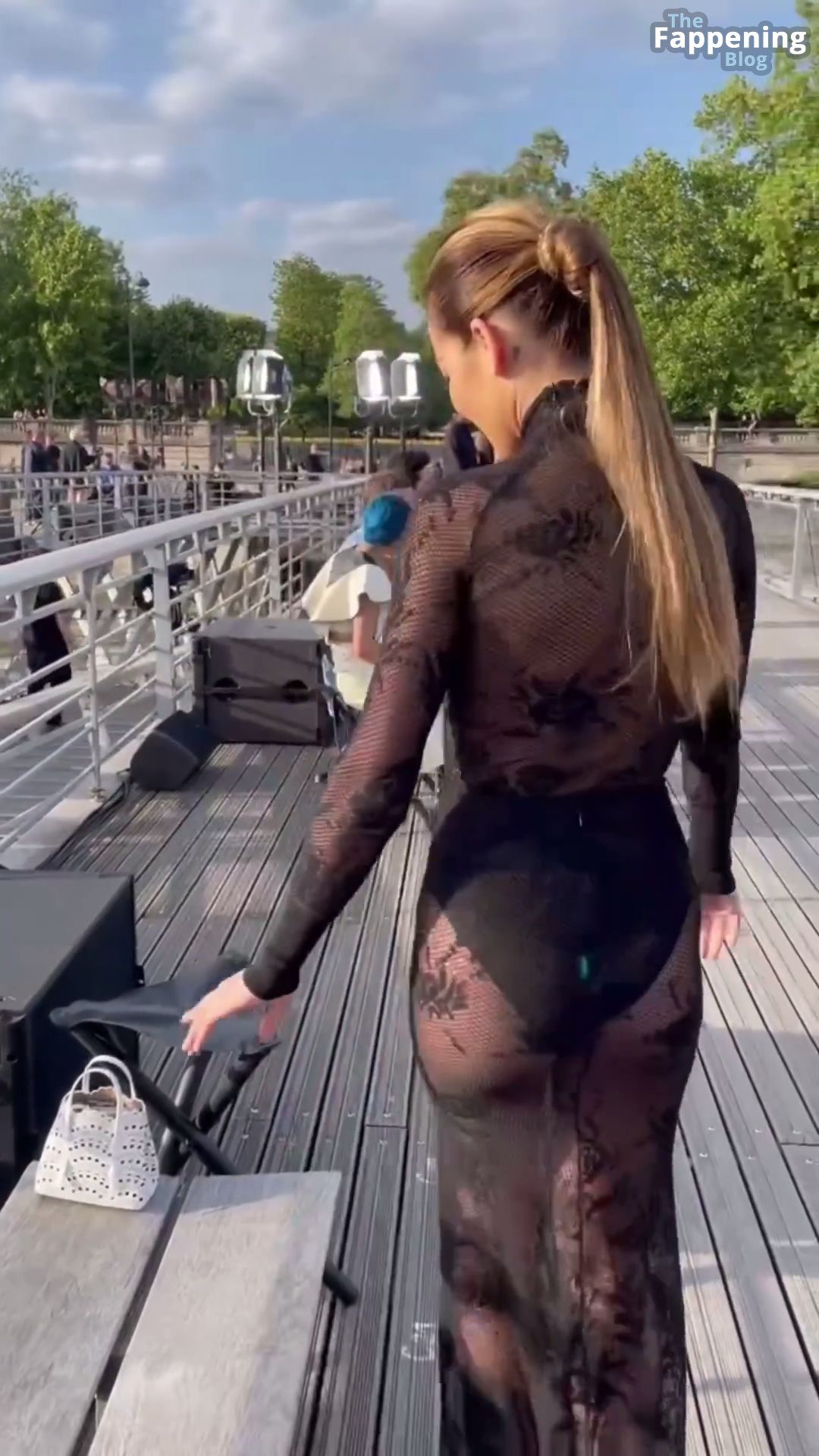 Mira a Rita Ora, la reina del estilo impecable, luciendo un conjunto realmente audaz en el desfile de Azzedine Alaïa durante la Semana de la Alta Costura de París. Esta cantante de 32 años llegó al evento con un vestido ajustado de encaje transparente, sin sostén y lista para deslumbrar. Su elegante vestido negro mostraba sus pechos desnudos, porque prescindió del sujetador y solo llevaba unas pequeñas bragas negras. Para rematar, llevó unos impresionantes tacones altos negros, que aumentaban su confianza mientras caminaba con su novio.