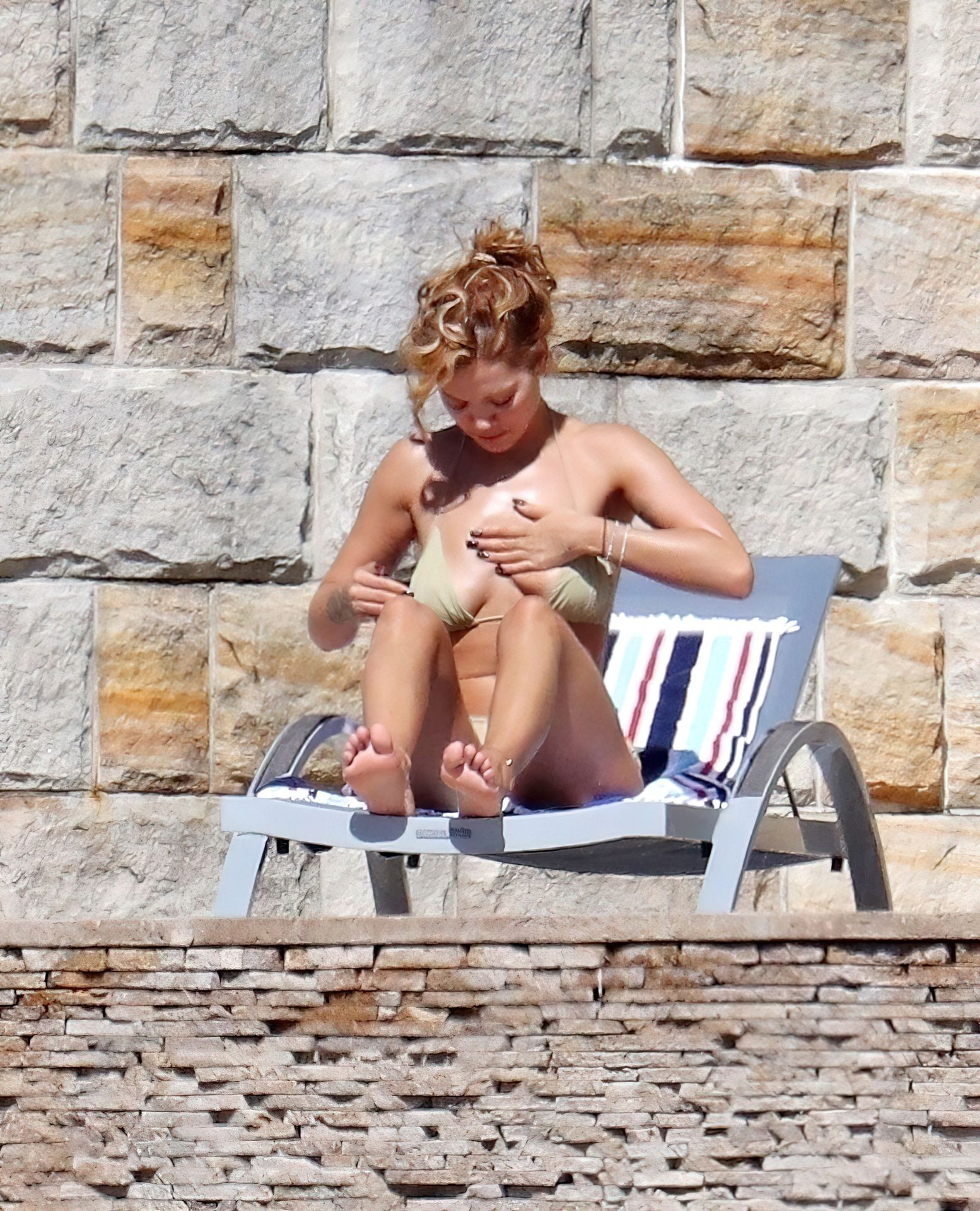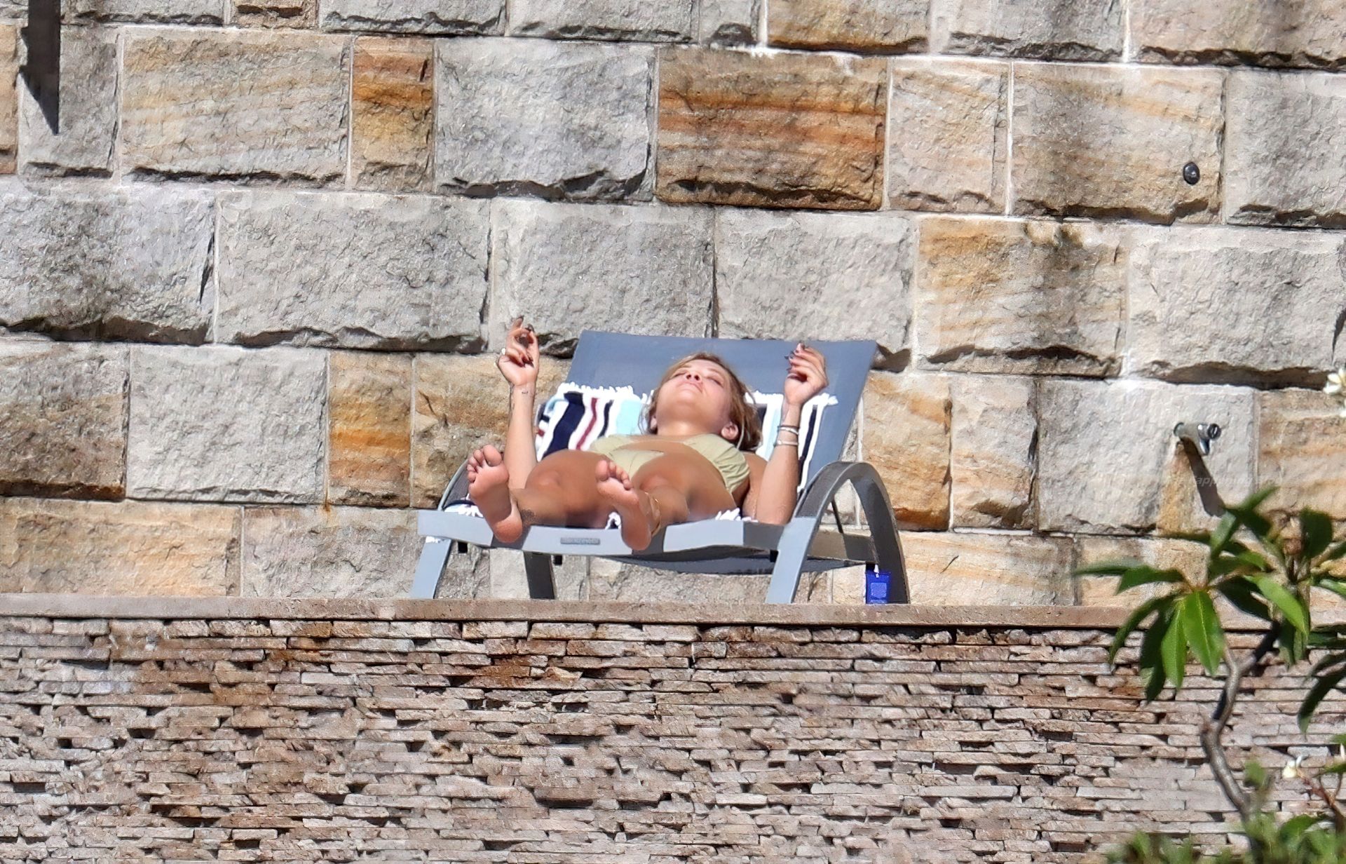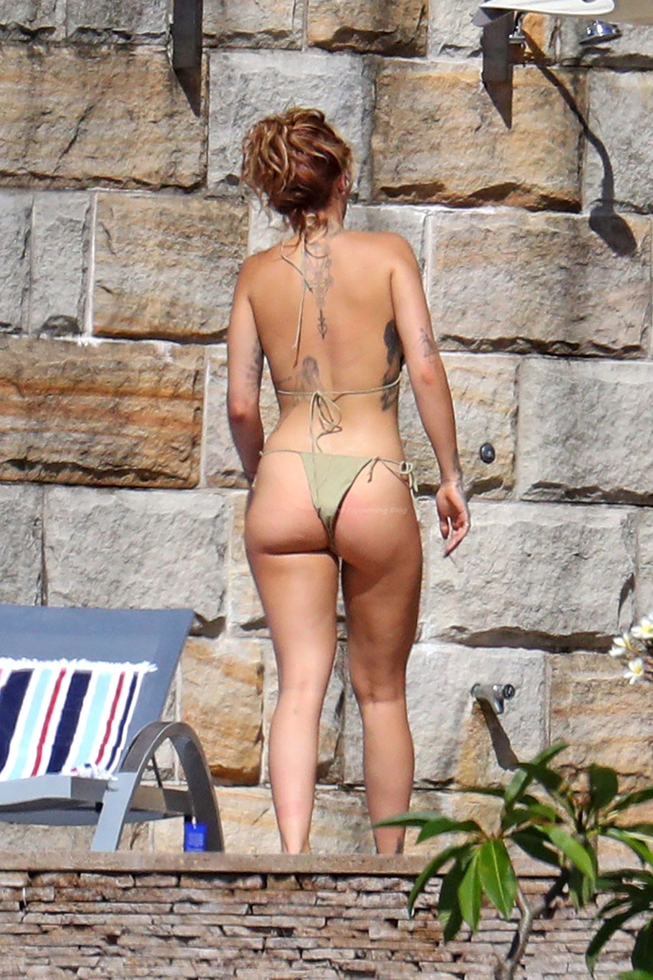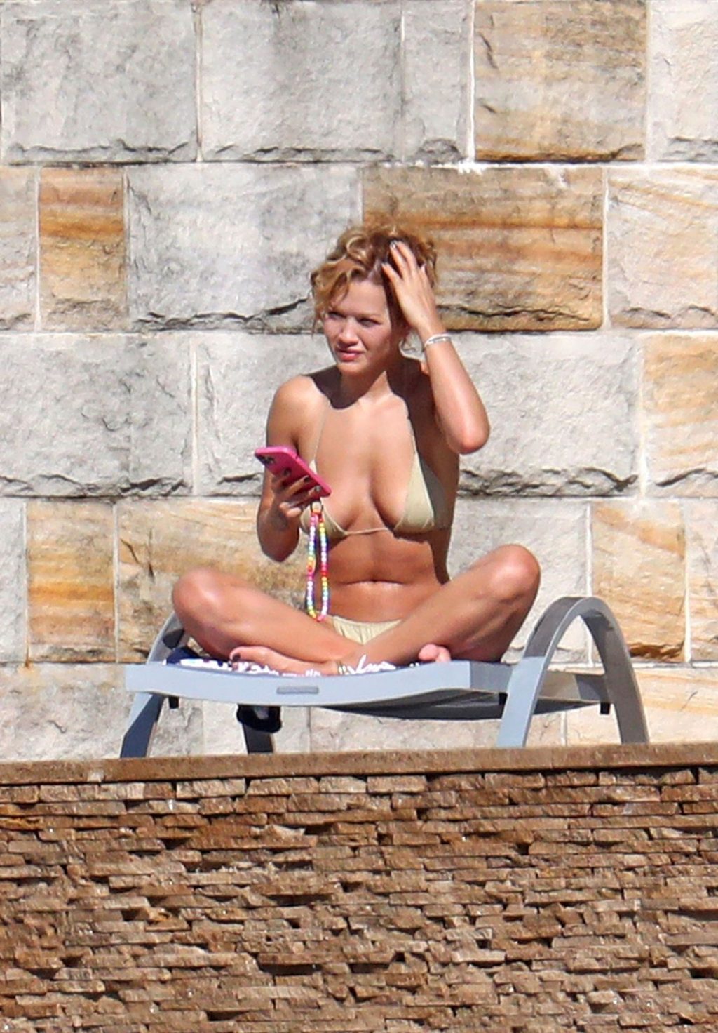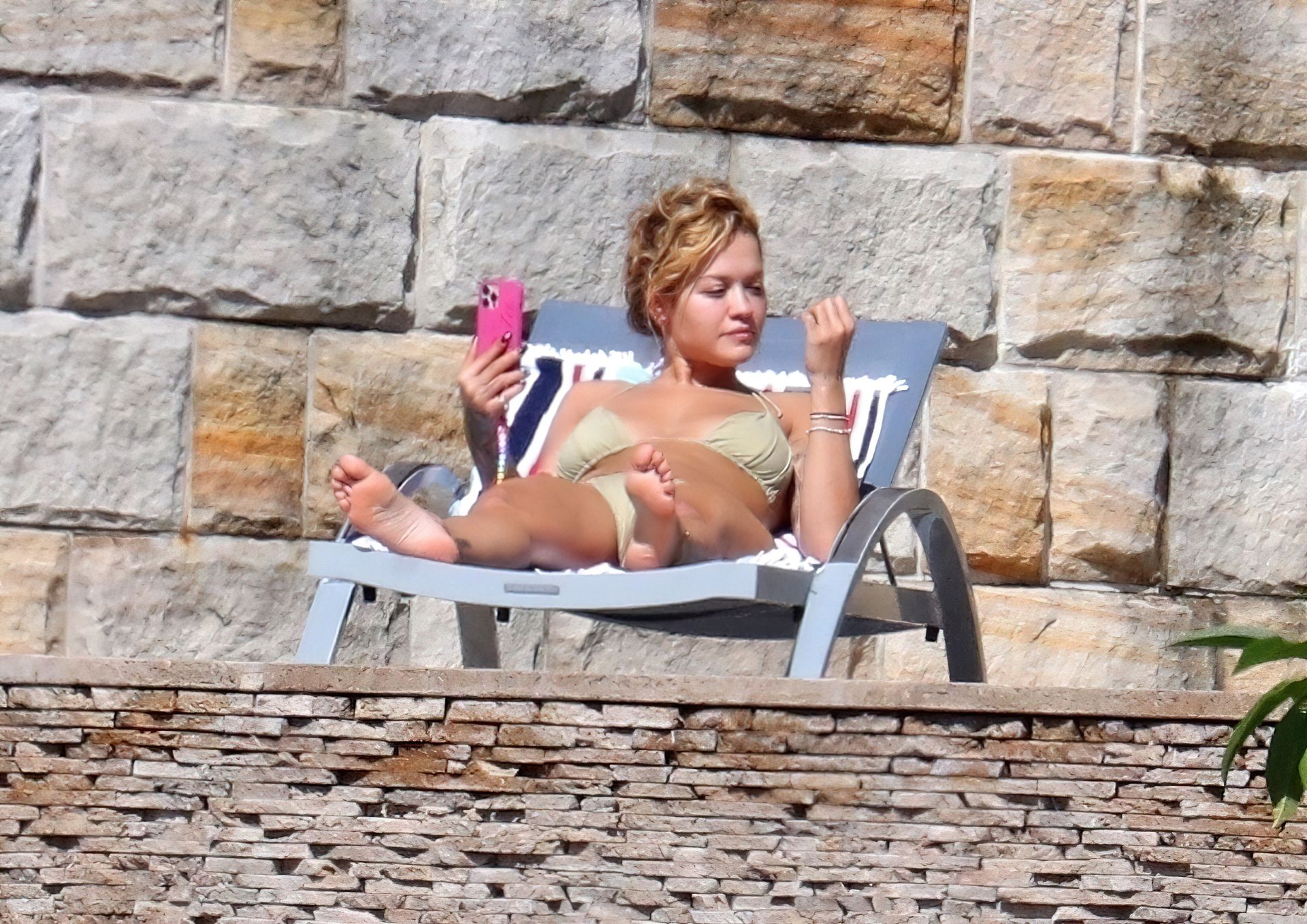 La cantante Rita Ora se ve ‘Caliente Ahora Mismo’ mientras se relaja junto a la piscina con un bikini verde y mostrando sus pechos desnudos para nosotros – Sídney, 31/03/2021.