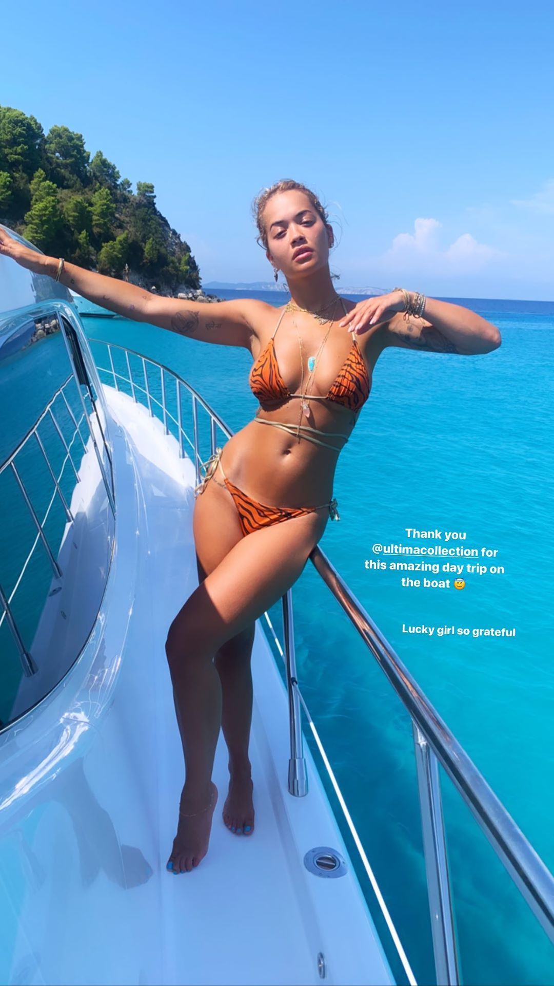 Cantante Rita Ora presume de sus grandes tetas, trasero y vagina mientras está de vacaciones en Corfú, 17/08/2020.