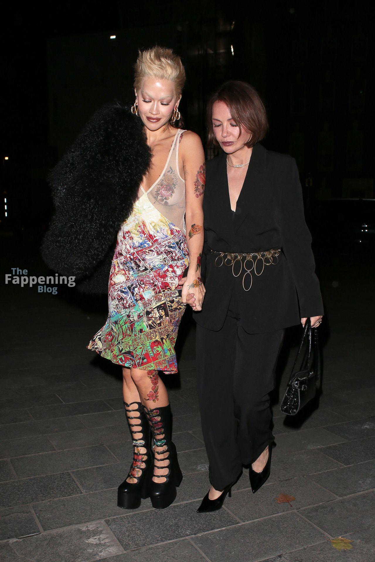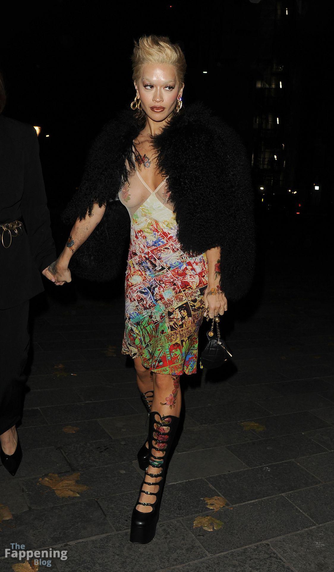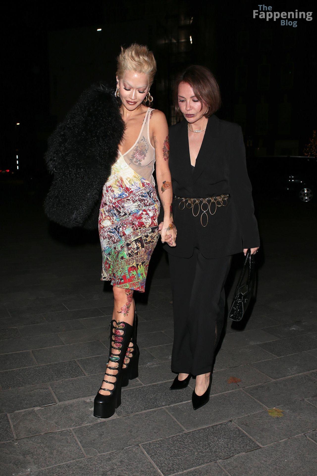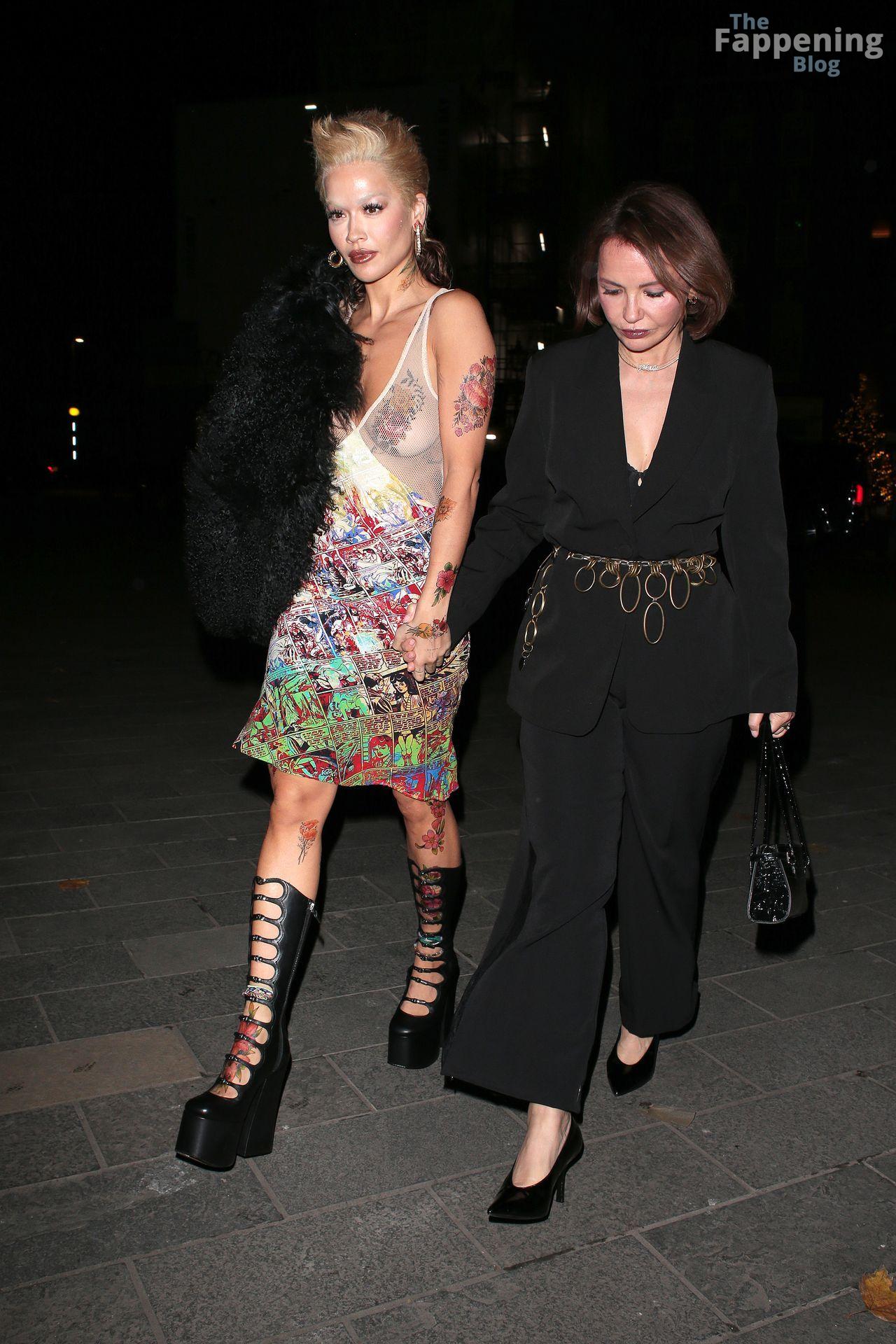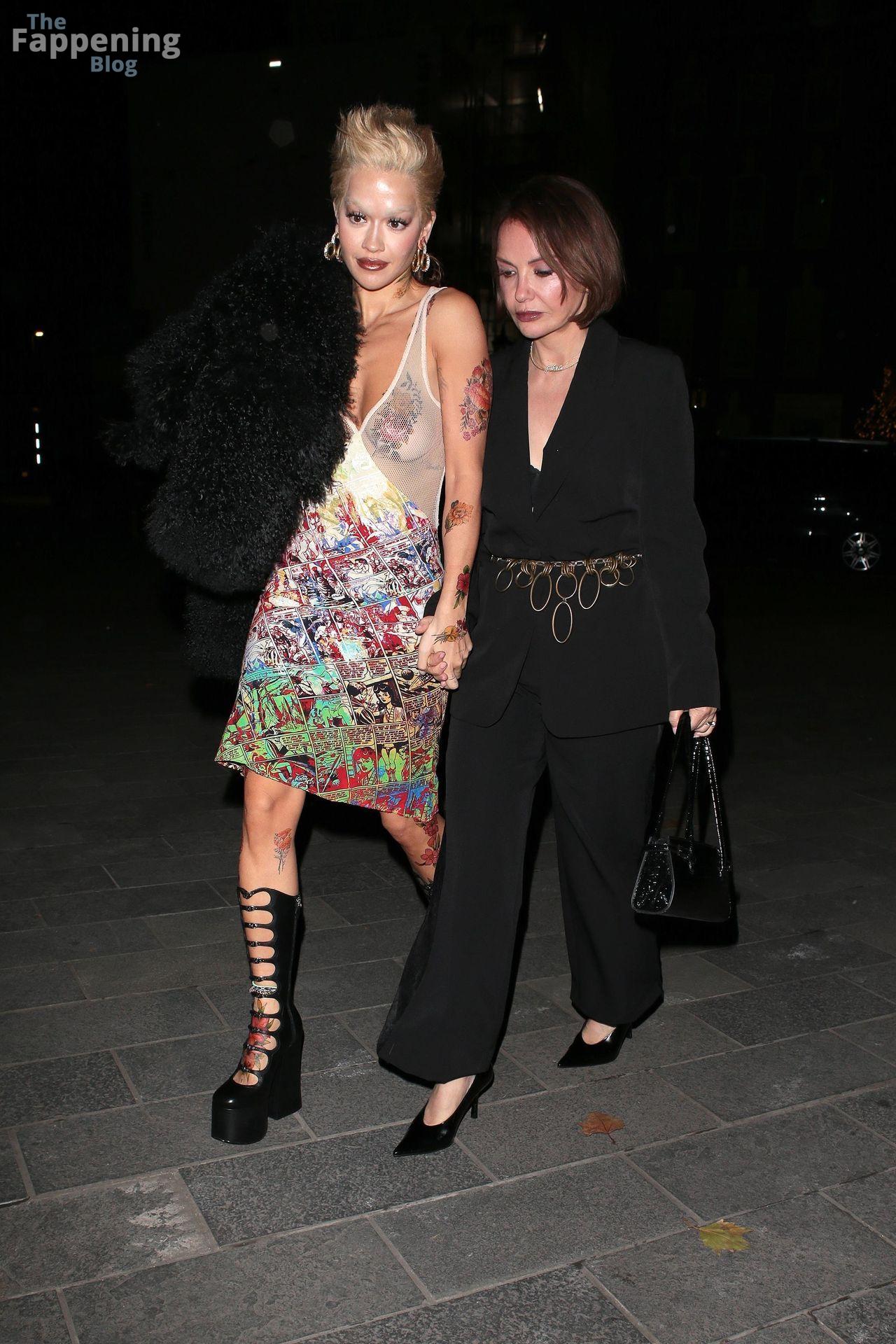 Rita Ora llama la atención con un vestido completamente transparente que deja ver su pecho desnudo en la afterparty de los British Fashion Awards en The MAINE Mayfair Restaurant & Bar.